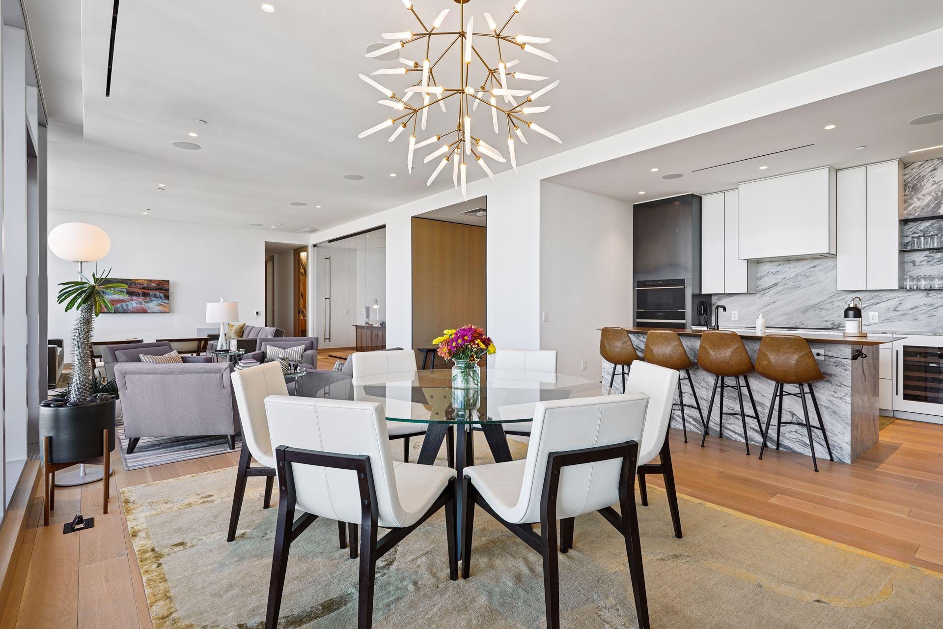 Welcome to a new standard of luxury at Four Seasons Private Residences. This elegant two bedroom + den floor plan maximizes the incredible northern city & river views. Designed by award winning MSR Design in the exclusive Nordic Palette, the sleek kitchen stars chic marble countertops & backsplash, Sub-Zero & Wolf appliances, & wide plank white oak flooring & wall treatments throughout the home. The owners suite features exceptional river views from the floor to ceiling windows, with a glass enclosed shower & stand alone soaking tub. The glass-enclosed den allows for incredible natural light inside. A Wolf gas grill & overhead heater included on terrace, ideal for al fresco entertaining. Four Seasons Private Residences has crafted a new standard of living with 24-hr dedicated front desk concierge team & full access to all Four Seasons Hotel amenities (spa, fitness, indoor/outdoor pools/hot tubs, 3 restaurants/bars/café) & white glove services (housekeeping, valet, in-room dining etc).