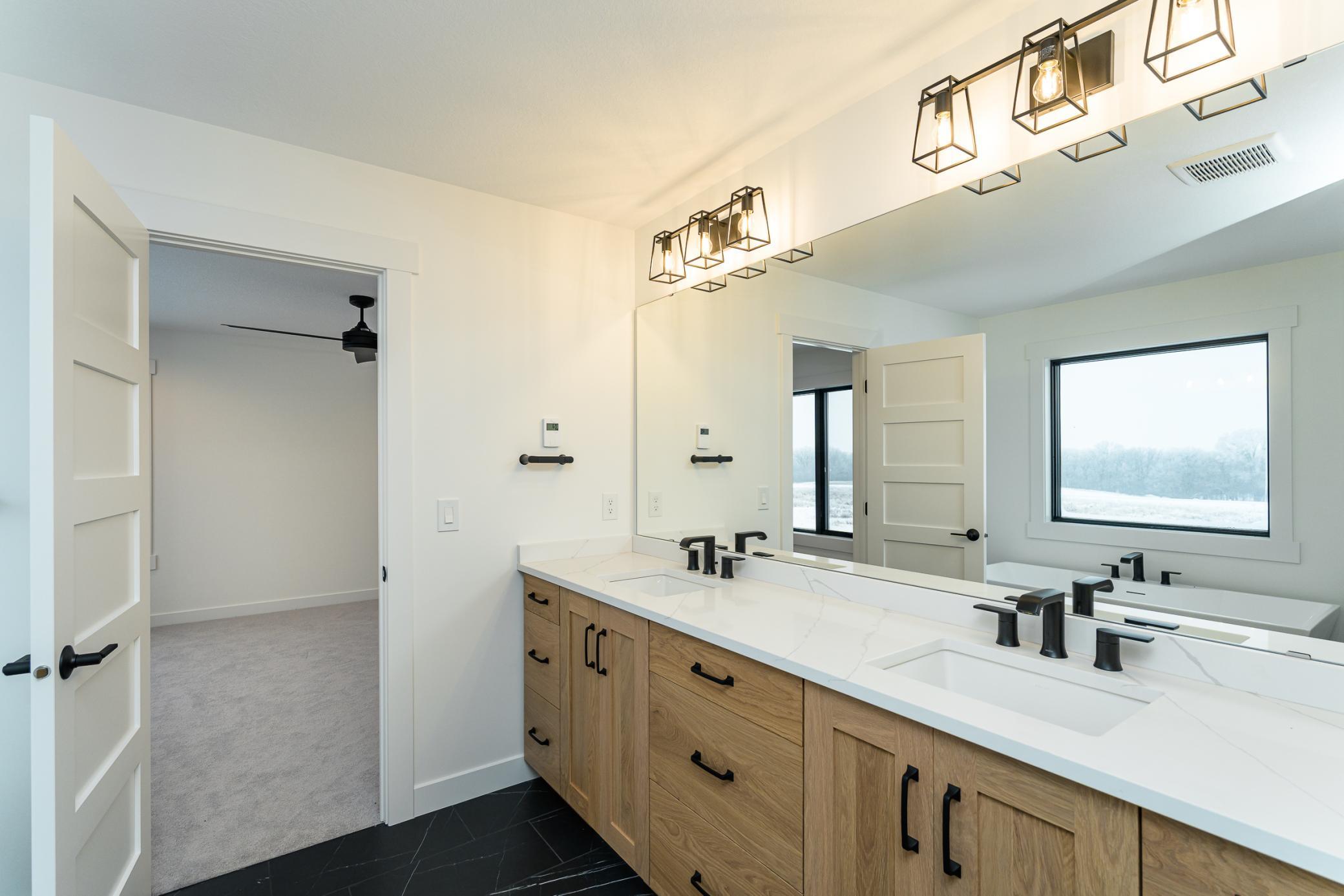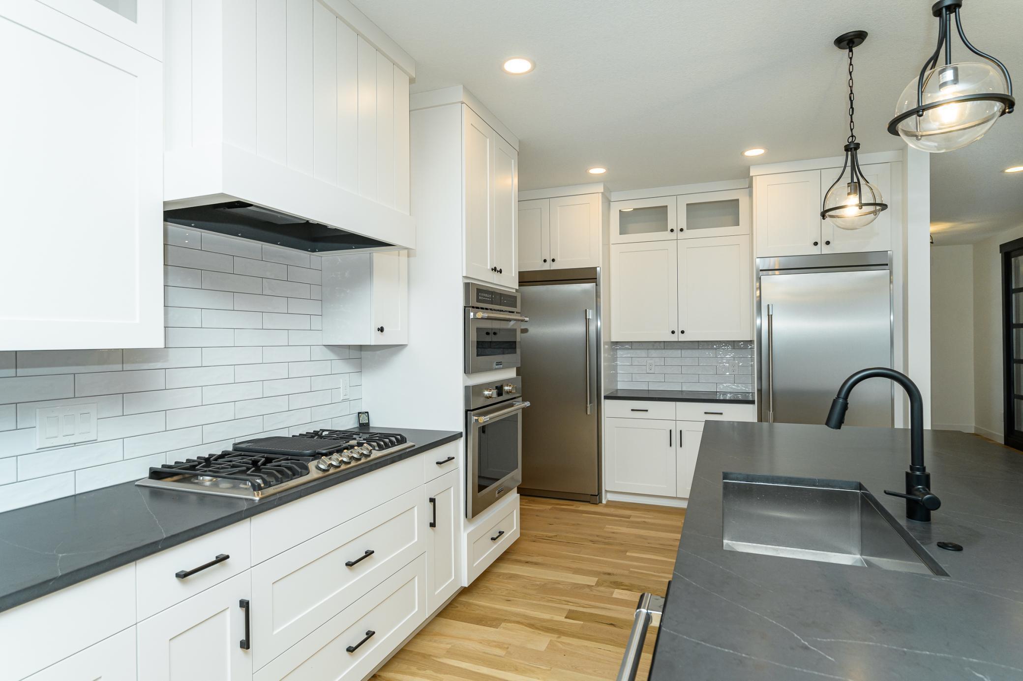 Beautiful fully finished brand new home. Situated on a 2.24 acre lot with fantastic views of the countryside. Wonderful new sought after subdivision, lot and floor plan with very good quality finishes throughout! Neutral decor, light-filled rooms, move in condition, wood floors, 2 fireplaces, built-in cabinetry, large windows with fabulous views! Main Floor features: foyer, large office/bonus room. Open floor plan, living room with gas fireplace and built-in cabinetry, beautiful kitchen with walk-in pantry, all kitchen appliances and large center island, large dining room, half bath, large mudroom with built-in cabinetry. Patio doors open to the large covered deck with stairs to the backyard. Finished and heated attached 3 car garage with an epoxy floor. Upper Level features: Open stairway to 2nd floor, 4 bedrooms, two full baths and laundry room. Primary bedroom suite with a large bedroom, large private bath with free standing tub, separate shower, double sinks and large walk-in closet. 3 additional bedrooms, full Jack and Jill 3/4 bath and laundry room with washer, dryer and laundry sink. Lower Level features: Large family room with gas fireplace, lots of built-in cabinetry, wet bar, drinks fridge & microwave. Large bonus room/exercise room, bedroom, 3/4 bathroom with shower, utility room and storage.
