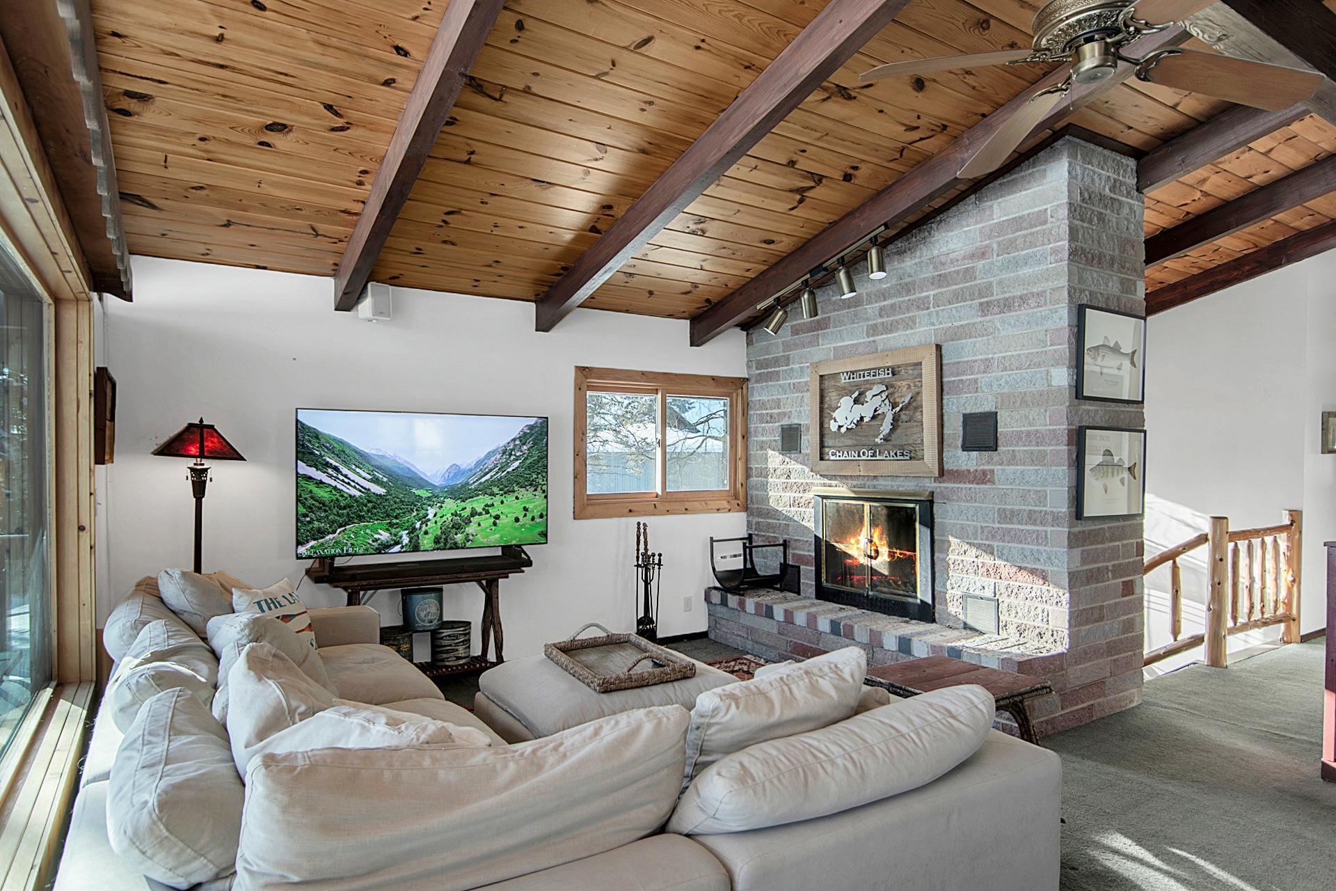 Welcome to 33992 Sunrise Island—an exceptional lakefront retreat on the highly sought-after Whitefish Chain in Crosslake. This rare Up North gem is set on a gently sloping lot with 139 feet of pristine shoreline, offering breathtaking panoramic lake views and excellent swimming right from your property. The open-concept main level showcases vaulted ceilings with exposed wood beams, a cozy wood-burning fireplace, and expansive windows that flood the home with natural light and frame the stunning waterfront scenery. Patio doors open to a spacious lakeside deck, perfect for entertaining or relaxing while taking in the views. The walkout lower level provides additional living space featuring a gas fireplace, second kitchen, laundry area, and a beautiful four-season room—all designed to maximize lake views and year-round enjoyment. A second building enhances the property with a fully finished bunkhouse, a two-car garage, and a convenient tuck-under third stall ideal for storing boats and lake toys. Additional highlights include cedar siding, central air conditioning, gutters, an in-ground sprinkler system, and a dock ready for summer fun. Sunrise Island is renowned for its privacy, natural beauty, and proximity to Sunken Island—one of the Whitefish Chain’s premier boating and vacation destinations. Whether you’re seeking a multi-generational getaway or an investment opportunity with strong short-term rental potential, this property offers it all. Enjoy four seasons of recreation on the Whitefish Chain of 14 lakes—from boating, fishing, and jet skiing to snowmobiling and winter adventures. This is your opportunity to own a true Crosslake paradise.
