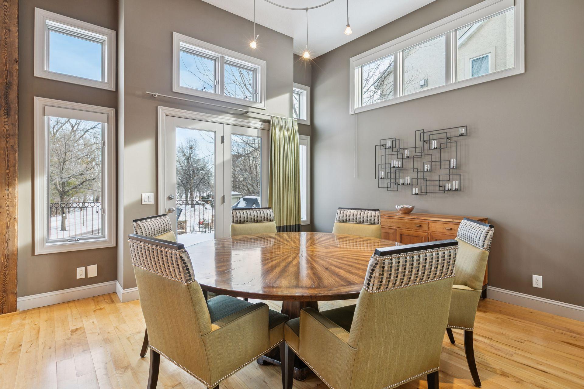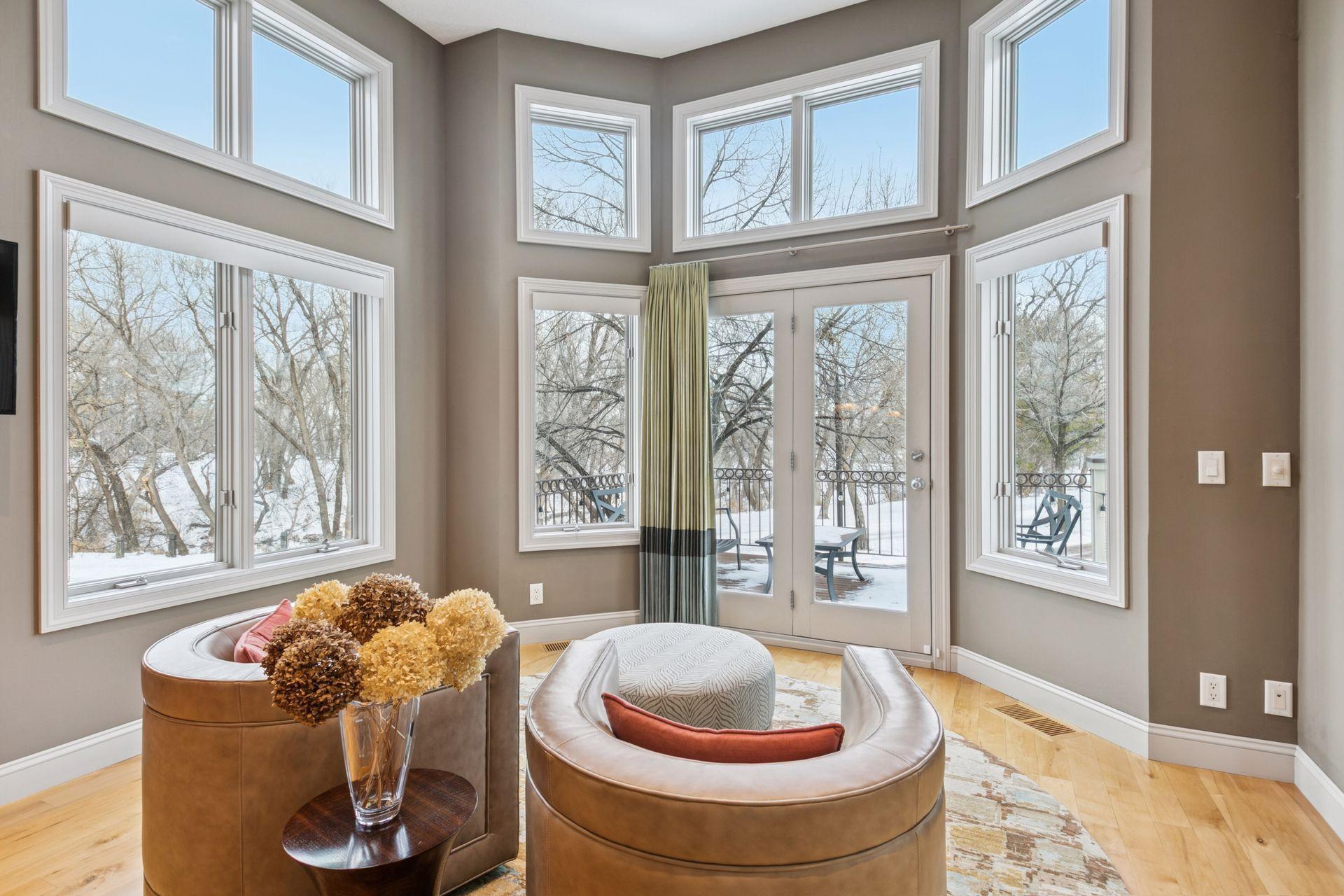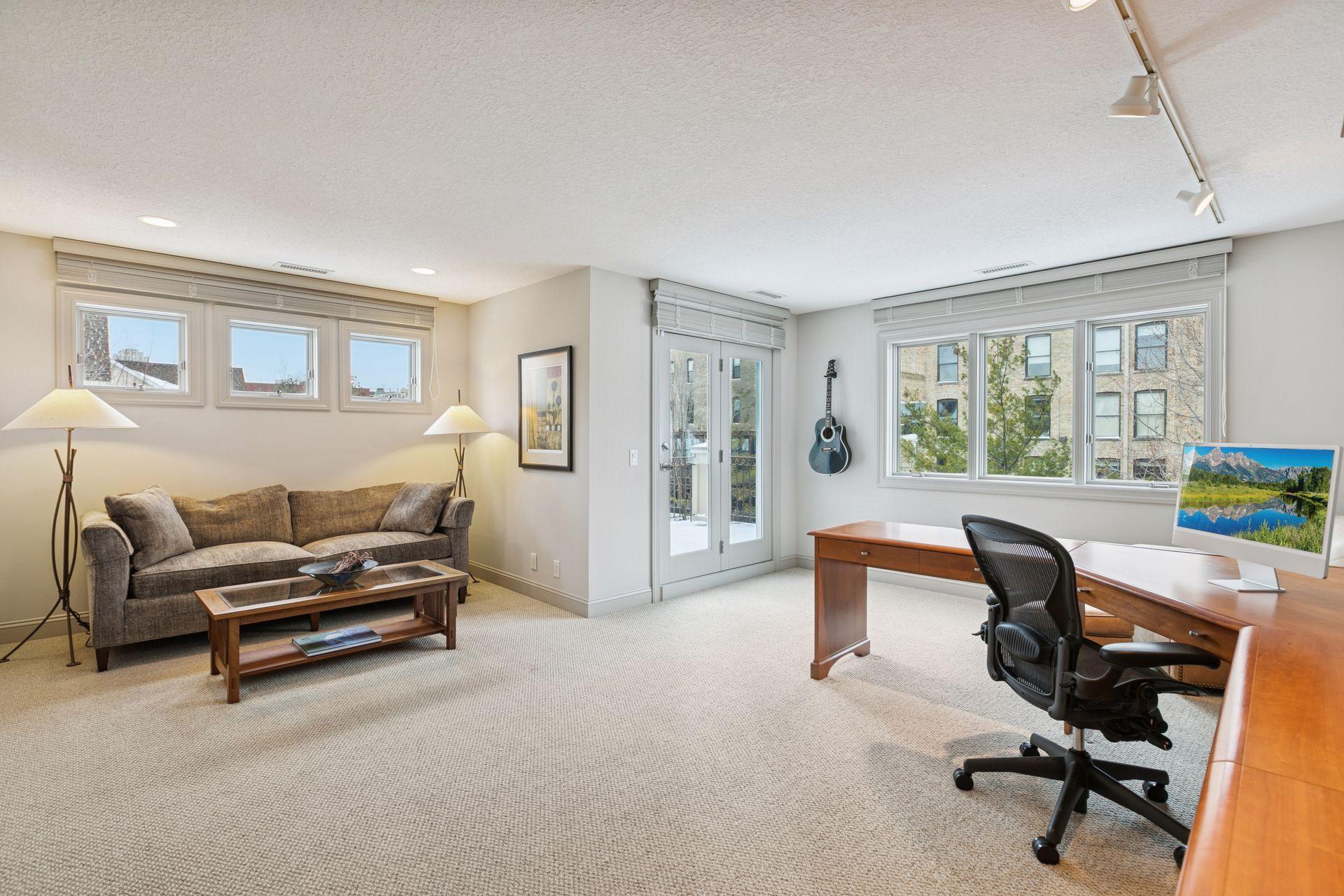 Welcome to The Landings, a rare riverfront townhome community along the banks of the Mississippi River in downtown Minneapolis. Lovingly cared for and thoughtfully updated, this architecturally distinctive residence offers over 4,000 square feet of beautifully maintained living space with panoramic views of the West River Parkway and Mississippi River. The spacious open, light-filled main floor is both welcoming and thoughtfully designed. Reclaimed timber beams from the historic Warehouse District anchor the living and dining spaces, complemented by hardwood floors, contemporary lighting, and a stone- trimmed gas fireplace. A large deck with gas grill hookup opens to sweeping riverfront views and ever-changing scenery, creating seamless indoor-outdoor living. The gourmet kitchen features custom Douglas fir cabinetry with extensive storage and display spaces complemented by granite countertops, large center island, double sinks, and GE Monogram six-burner range with double oven. Perched above is a cozy family room with attached cedar paneled three season porch featuring views of the historic North Loop. Upstairs the sprawling owners suite is thoughtfully positioned to capture uninterrupted views of the parkway from both the bedroom and spa-like en suite bathroom with soaking tub. A spacious sitting area and well-organized walk-in closet complete this restful retreat. The upper level is completed by a light-filled home office featuring its own private deck. The lower level includes plenty of amenities including a guest bedroom, exercise room, laundry with folding counter, and abundant storage. Nestled away on the quiet curves of West River Parkway in the vibrant North Loop, this home is easy walking distance to some of the most exciting restaurants, shopping, and entertainment in the city, and is equally accessible to the Mississippi Riverfront, biking and running trails, and city parks. This home is perfect for the discerning purchaser who knows they need not compromise between space and location, comfort or quality. Please see supplements for extensive updates and maintenance records.