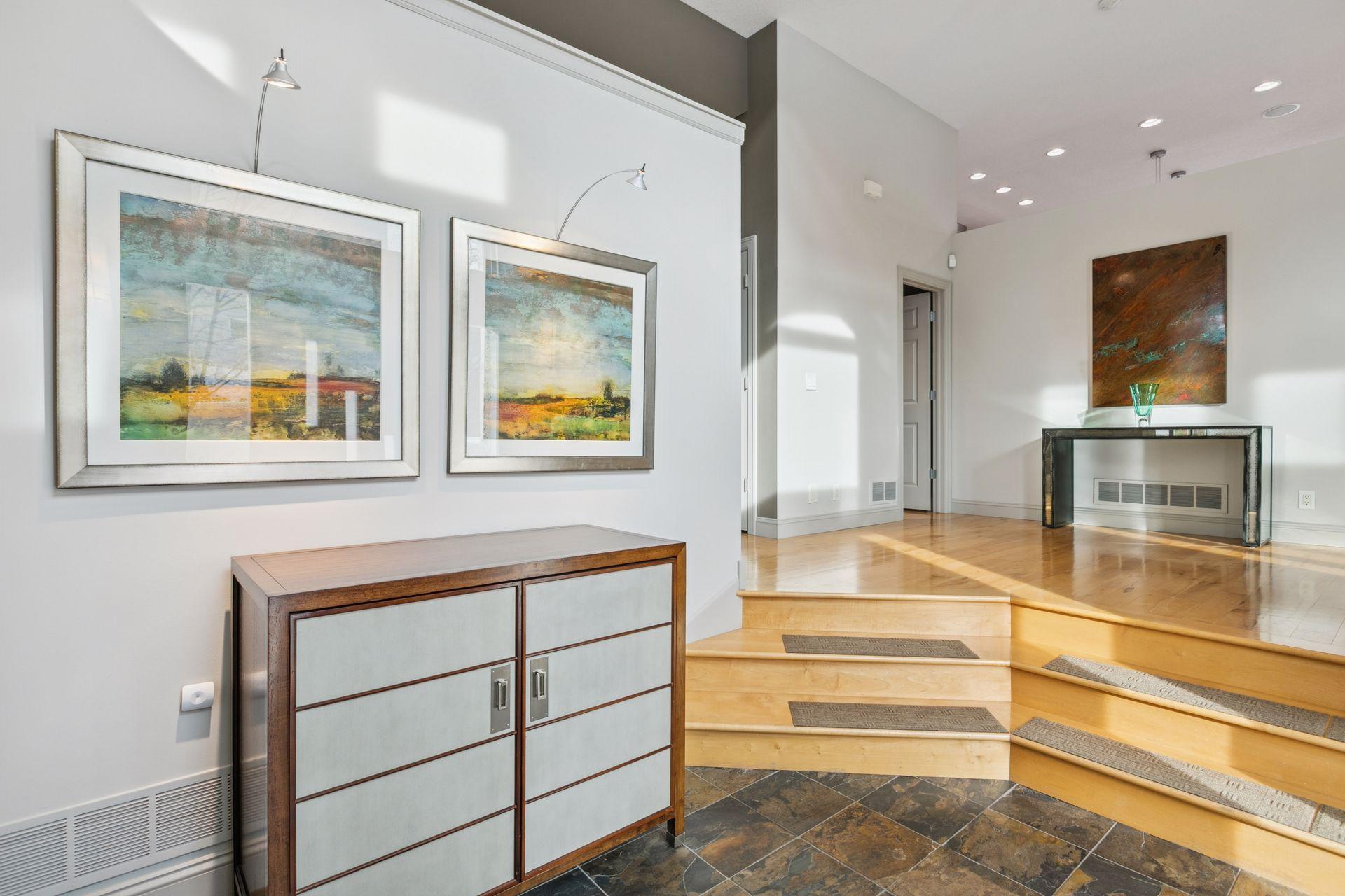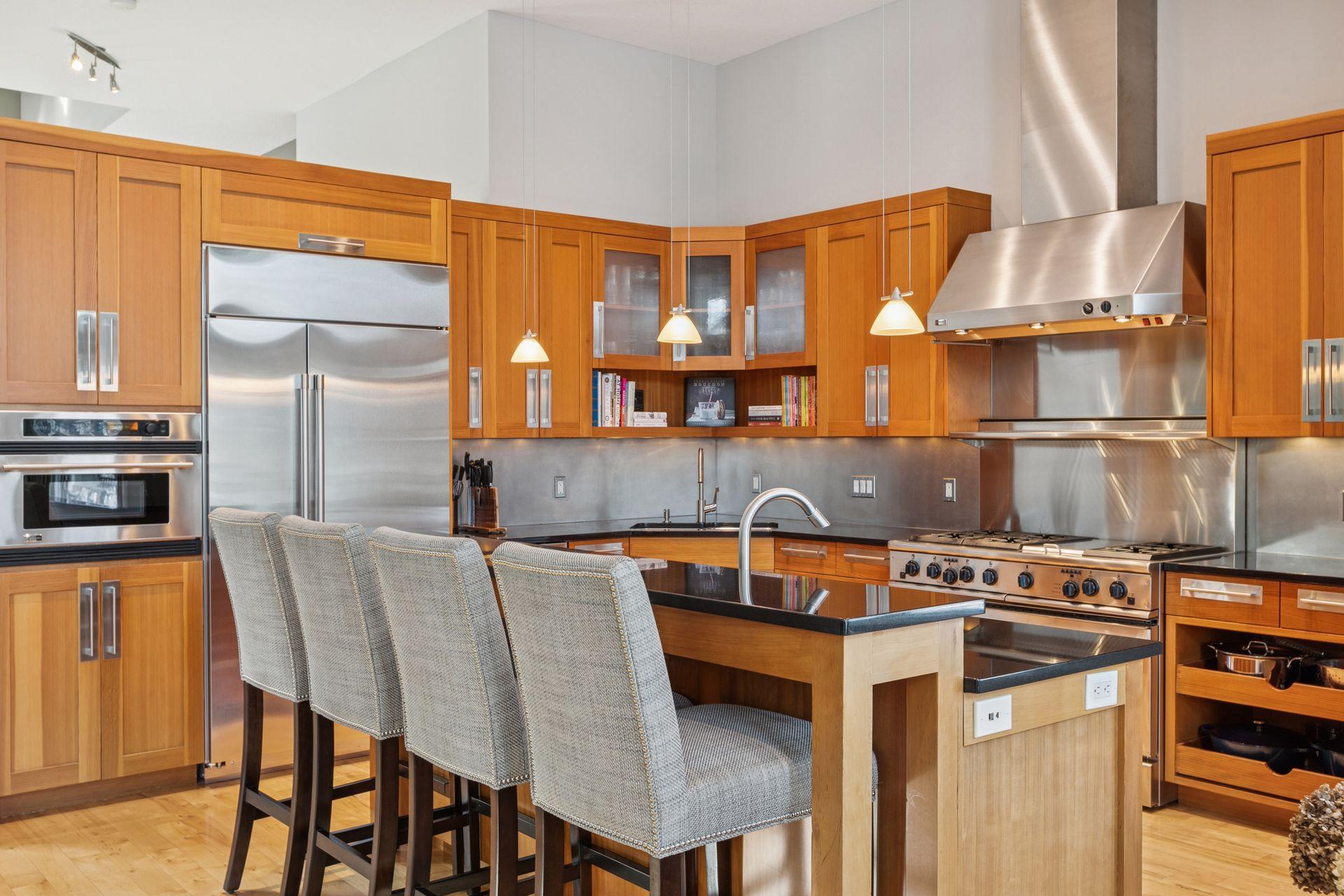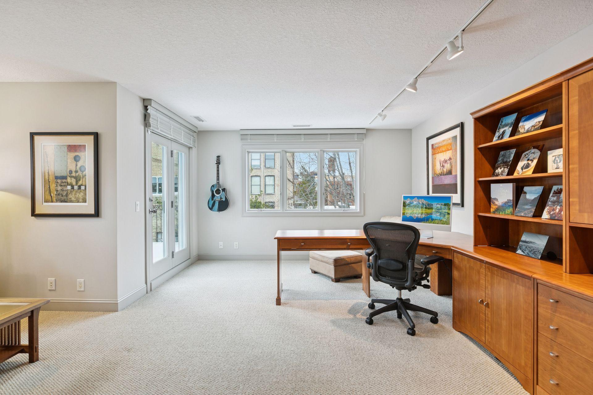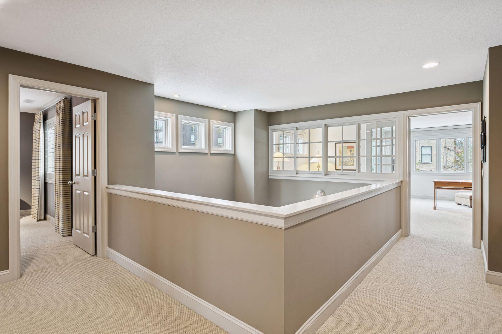 Welcome to The Landings, a rare riverfront townhome community along the banks of the Mississippi River in downtown Minneapolis. Lovingly cared for and thoughtfully updated, this architecturally distinctive residence offers over 4,000 square feet of beautifully maintained living space with panoramic views of the West River Parkway and Mississippi River. The spacious open, light-filled main floor is both welcoming and thoughtfully designed. Reclaimed timber beams from the historic Warehouse District anchor the living and dining spaces, complemented by hardwood floors, contemporary lighting, and a stone- trimmed gas fireplace. A large deck with gas grill hookup opens to sweeping riverfront views and ever-changing scenery, creating seamless indoor-outdoor living. The gourmet kitchen features custom Douglas fir cabinetry with extensive storage and display spaces complemented by granite countertops, large center island, double sinks, and GE Monogram six-burner range with double oven. Perched above is a cozy family room with attached cedar paneled three season porch featuring views of the historic North Loop. Upstairs the sprawling owners suite is thoughtfully positioned to capture uninterrupted views of the parkway from both the bedroom and spa-like en suite bathroom with soaking tub. A spacious sitting area and well-organized walk-in closet complete this restful retreat. The upper level is completed by a light-filled home office featuring its own private deck. The lower level includes plenty of amenities including a guest bedroom, exercise room, laundry with folding counter, and abundant storage. Nestled away on the quiet curves of West River Parkway in the vibrant North Loop, this home is easy walking distance to some of the most exciting restaurants, shopping, and entertainment in the city, and is equally accessible to the Mississippi Riverfront, biking and running trails, and city parks. This home is perfect for the discerning purchaser who knows they need not compromise between space and location, comfort or quality. Please see supplements for extensive updates and maintenance records.