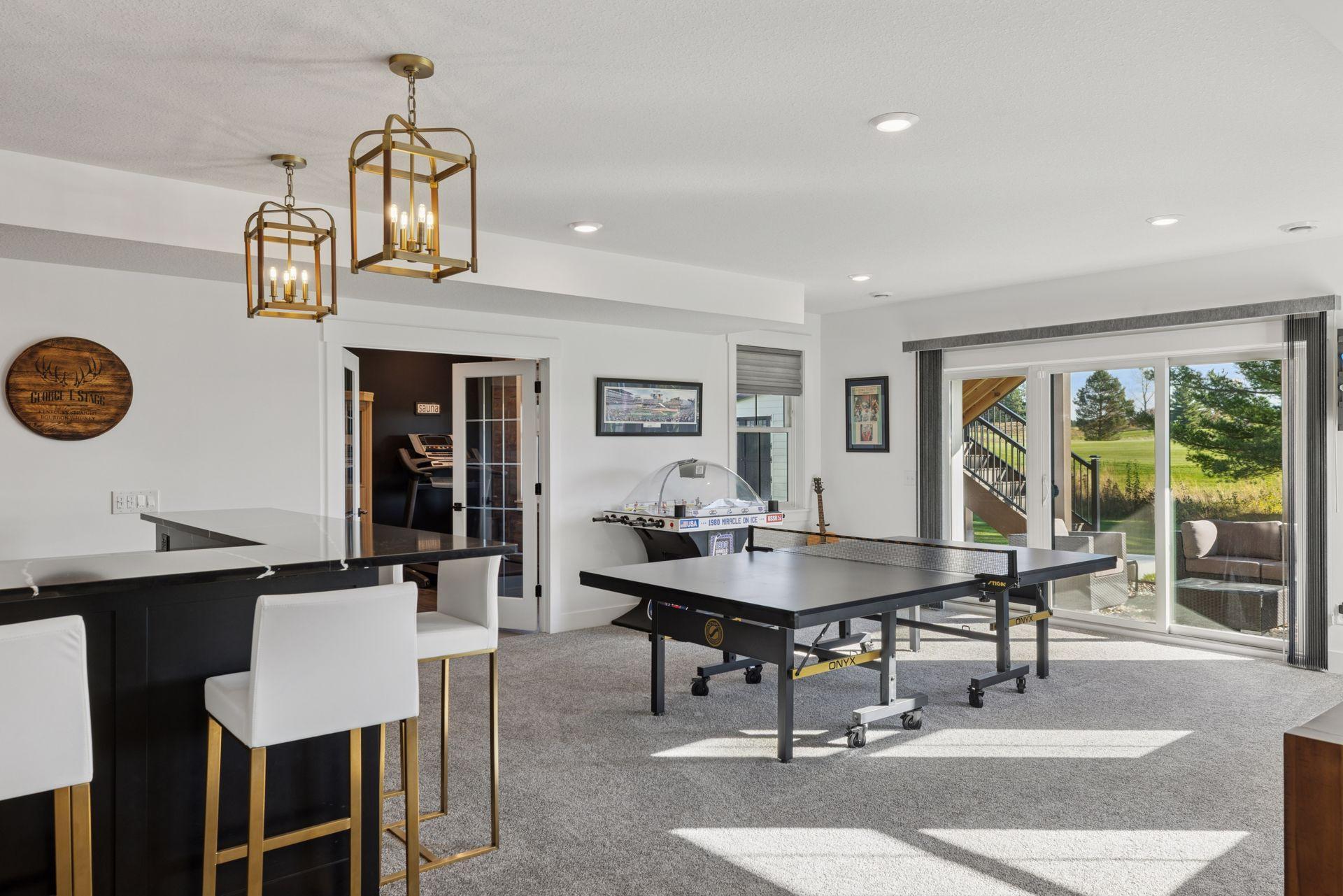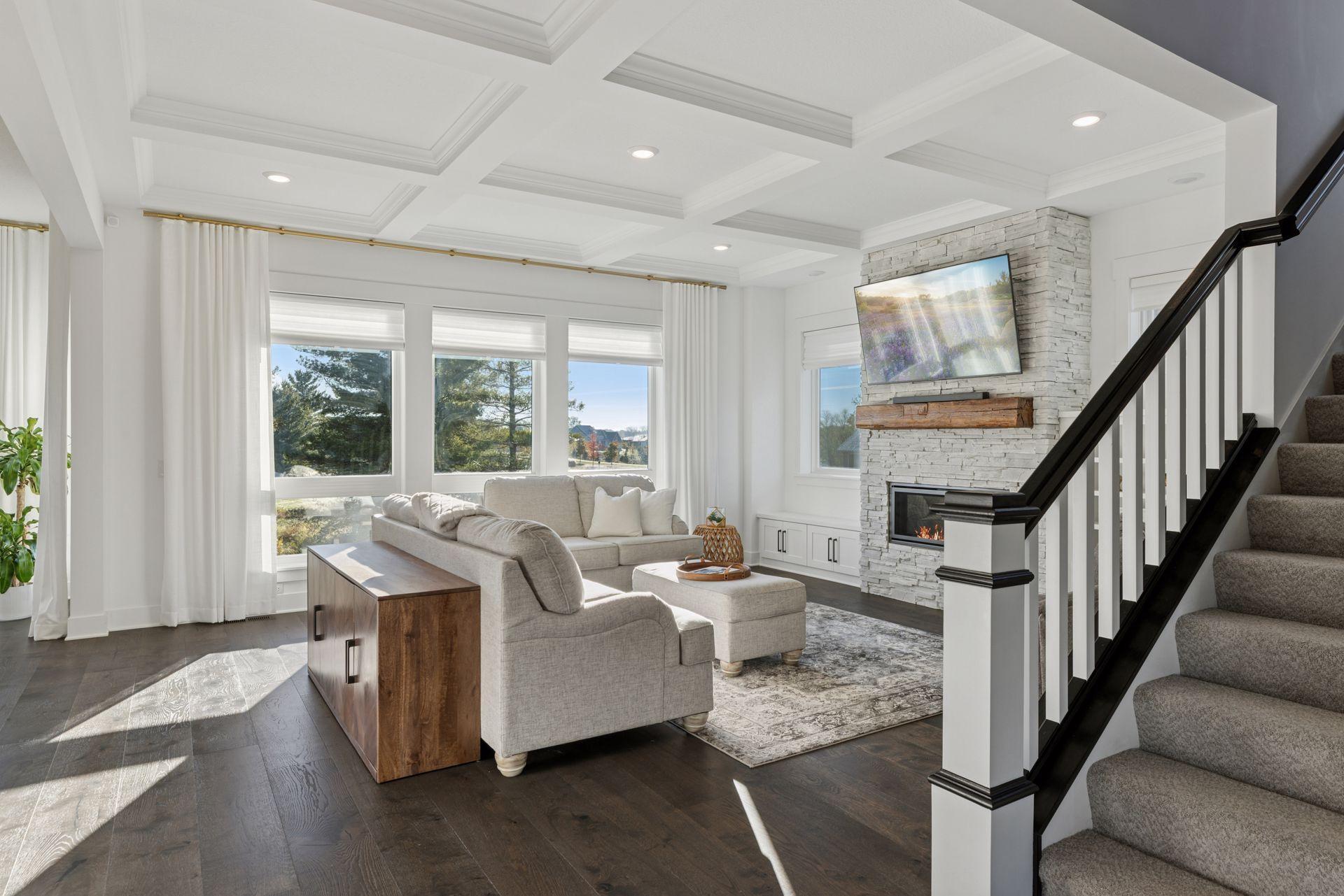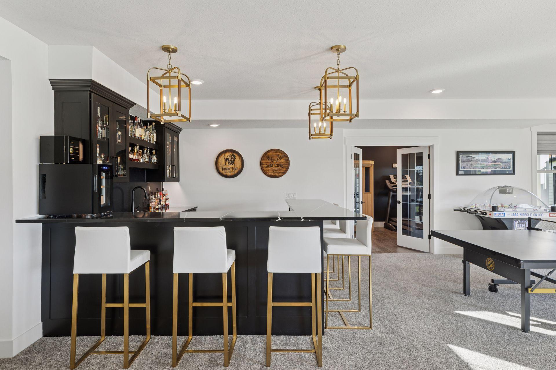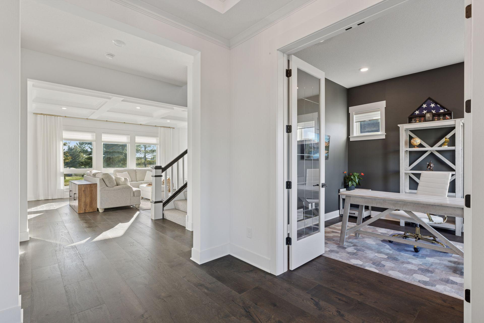 Welcome to 1389 Palmer Drive North, a former luxury model home that exemplifies refined craftsmanship and elevated living. Meticulously maintained, richly appointed, and loaded with upgrades this property truly has it all! Perfectly positioned along the 8th green of The Royal Club Golf Course, this residence offers an unparalleled combination of sophistication, comfort, and modern functionality. From the moment you arrive, the home’s timeless curb appeal and manicured landscaping make a statement. The combination of board-and-batten siding, stone accents, and designer finishes highlight the meticulous attention to detail throughout this property. Inside, natural light pours through expansive windows, illuminating an open-concept design that seamlessly blends modern luxury with classic charm. Every space has been thoughtfully curated, featuring custom millwork, wide-plank hardwood floors, and soaring ceilings. The gourmet kitchen is a showstopper — complete with high-end appliances, an oversized island, Cambria countertops, and elegant brass lighting fixtures. Adjacent, the formal dining room sets the tone for memorable gatherings, while the cozy great room with its stone fireplace offers the perfect retreat. With access to the expansive outdoor deck and kitchen the screened porch with fireplace, Eze-Breeze windows, and wood-paneled ceiling overlooks lush fairways, greens and sunset views. The designer details continue throughout the lower level with an entertainment area that rivals a private club, complete with a custom wet bar, gaming space, and access to the beautifully landscaped backyard. The upper level offers a luxurious primary suite with spa-inspired bath including a freestanding tub, in-floor heat, walk-in shower, and dual vanities, a sanctuary of relaxation after a day on the course. A second bedroom with en suite bathroom provides comfort and privacy for family or guests, while the bonus room offers flexible space that could easily serve as a playroom, homework hub, or private family lounge. Every element of this home reflects thoughtful design and refined functionality. The oversized three-car heated garage is more than a place to park; it's a pristine extension of the home, finished with epoxy flooring, professional storage systems, and a dedicated golf cart bay for effortless access to the course. A private home gym offers the convenience of fitness just steps away, while integrated smart home technology and in-floor heat elevate daily living with seamless control and high-performance comfort. Outside, a charming “19th Hole” backyard retreat provides the perfect finishing touch, a welcoming space for stowing your gear or sharing post-round refreshments as the sun sets over the fairway. Nestled within one of Lake Elmo’s most coveted communities, The Royal Club offers championship golf, scenic walking paths, and a vibrant neighborhood ambiance. Schedule your private tour today and discover why luxury buyers choose The Royal Club living.