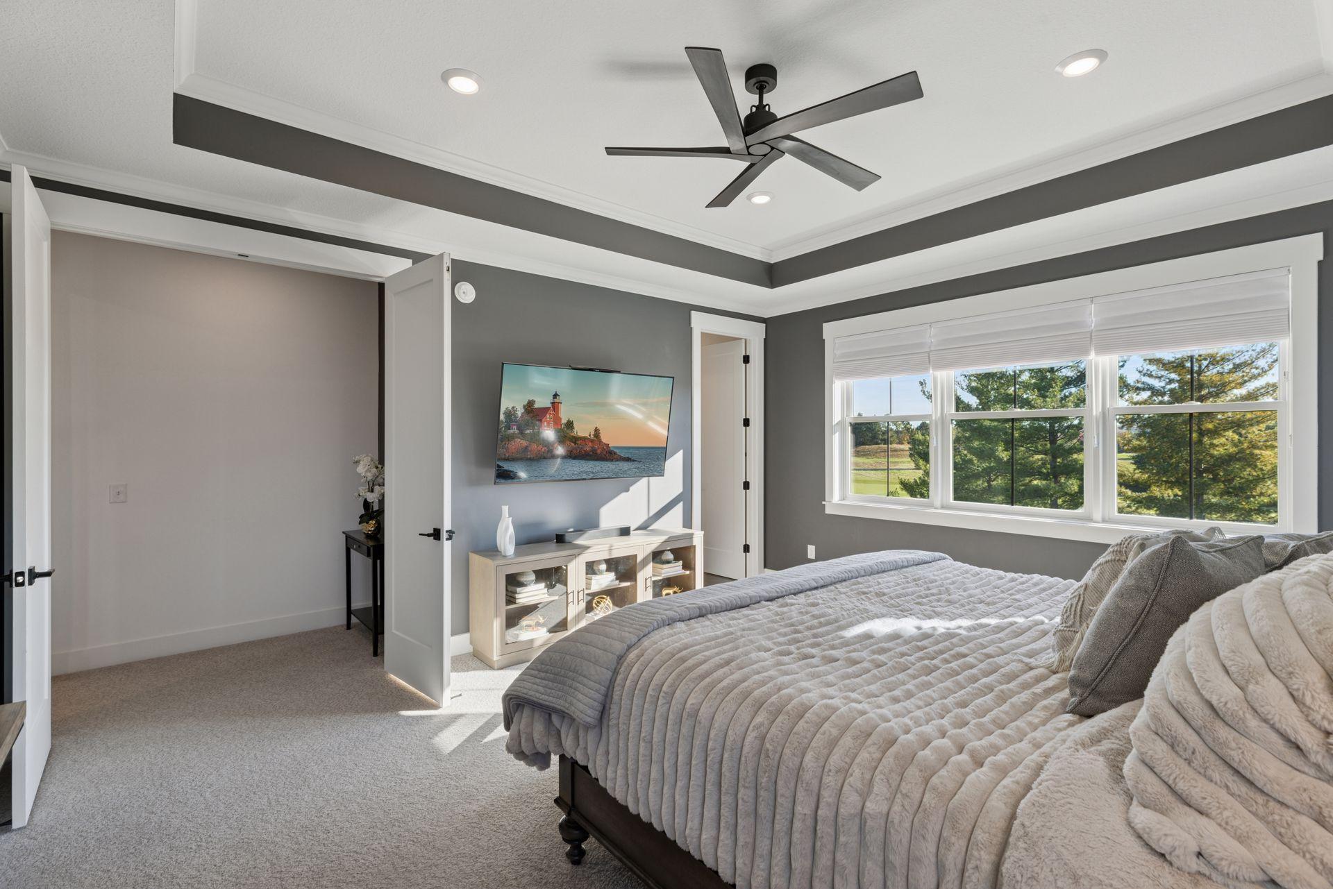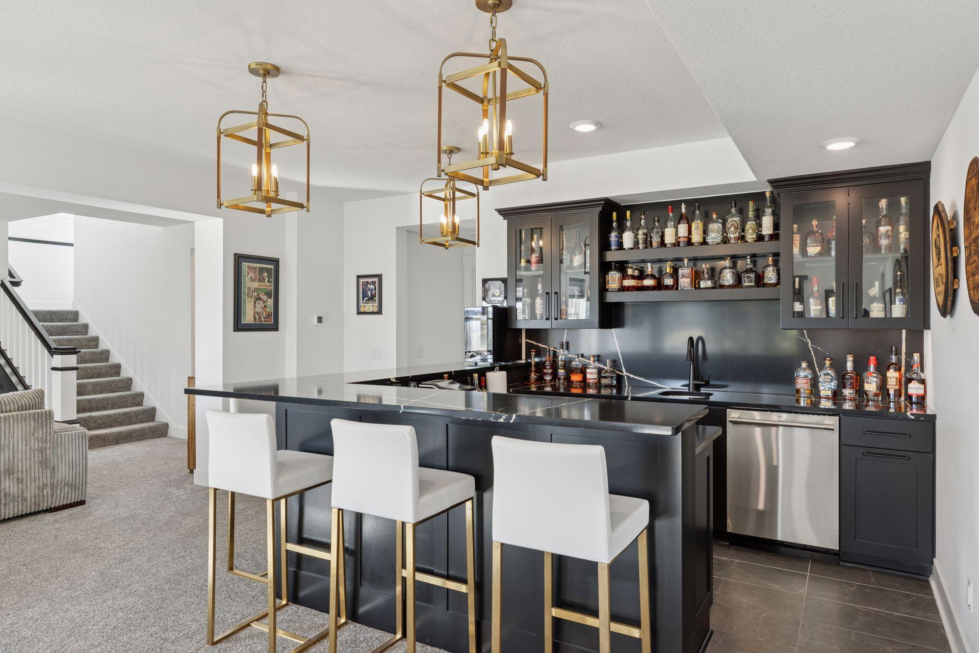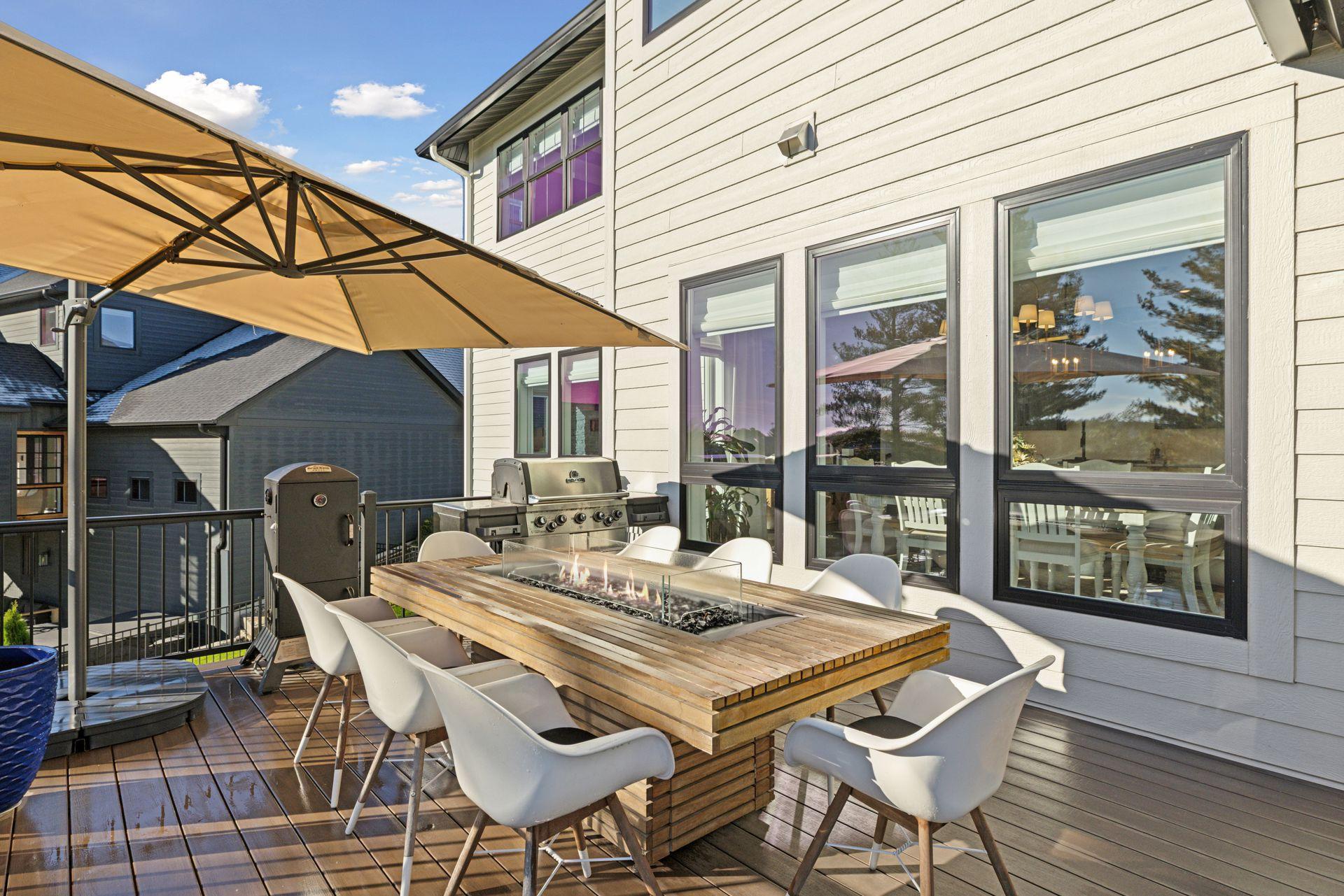 Welcome to 1389 Palmer Drive North, a former luxury model home that exemplifies refined craftsmanship and elevated living. Meticulously maintained, richly appointed, and loaded with upgrades this property truly has it all! Perfectly positioned along the 8th green of The Royal Club Golf Course, this residence offers an unparalleled combination of sophistication, comfort, and modern functionality. From the moment you arrive, the home’s timeless curb appeal and manicured landscaping make a statement. The combination of board-and-batten siding, stone accents, and designer finishes highlight the meticulous attention to detail throughout this property. Inside, natural light pours through expansive windows, illuminating an open-concept design that seamlessly blends modern luxury with classic charm. Every space has been thoughtfully curated, featuring custom millwork, wide-plank hardwood floors, and soaring ceilings. The gourmet kitchen is a showstopper — complete with high-end appliances, an oversized island, Cambria countertops, and elegant brass lighting fixtures. Adjacent, the formal dining room sets the tone for memorable gatherings, while the cozy great room with its stone fireplace offers the perfect retreat. With access to the expansive outdoor deck and kitchen the screened porch with fireplace, Eze-Breeze windows, and wood-paneled ceiling overlooks lush fairways, greens and sunset views. The designer details continue throughout the lower level with an entertainment area that rivals a private club, complete with a custom wet bar, gaming space, and access to the beautifully landscaped backyard. The upper level offers a luxurious primary suite with spa-inspired bath including a freestanding tub, in-floor heat, walk-in shower, and dual vanities, a sanctuary of relaxation after a day on the course. A second bedroom with en suite bathroom provides comfort and privacy for family or guests, while the bonus room offers flexible space that could easily serve as a playroom, homework hub, or private family lounge. Every element of this home reflects thoughtful design and refined functionality. The oversized three-car heated garage is more than a place to park; it's a pristine extension of the home, finished with epoxy flooring, professional storage systems, and a dedicated golf cart bay for effortless access to the course. A private home gym offers the convenience of fitness just steps away, while integrated smart home technology and in-floor heat elevate daily living with seamless control and high-performance comfort. Outside, a charming “19th Hole” backyard retreat provides the perfect finishing touch, a welcoming space for stowing your gear or sharing post-round refreshments as the sun sets over the fairway. Nestled within one of Lake Elmo’s most coveted communities, The Royal Club offers championship golf, scenic walking paths, and a vibrant neighborhood ambiance. Schedule your private tour today and discover why luxury buyers choose The Royal Club living.
