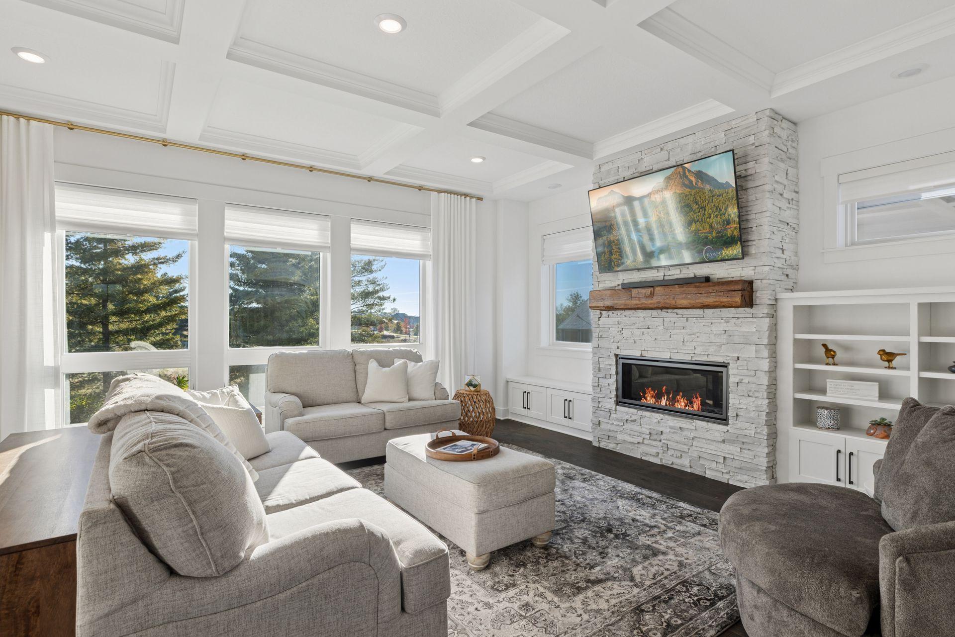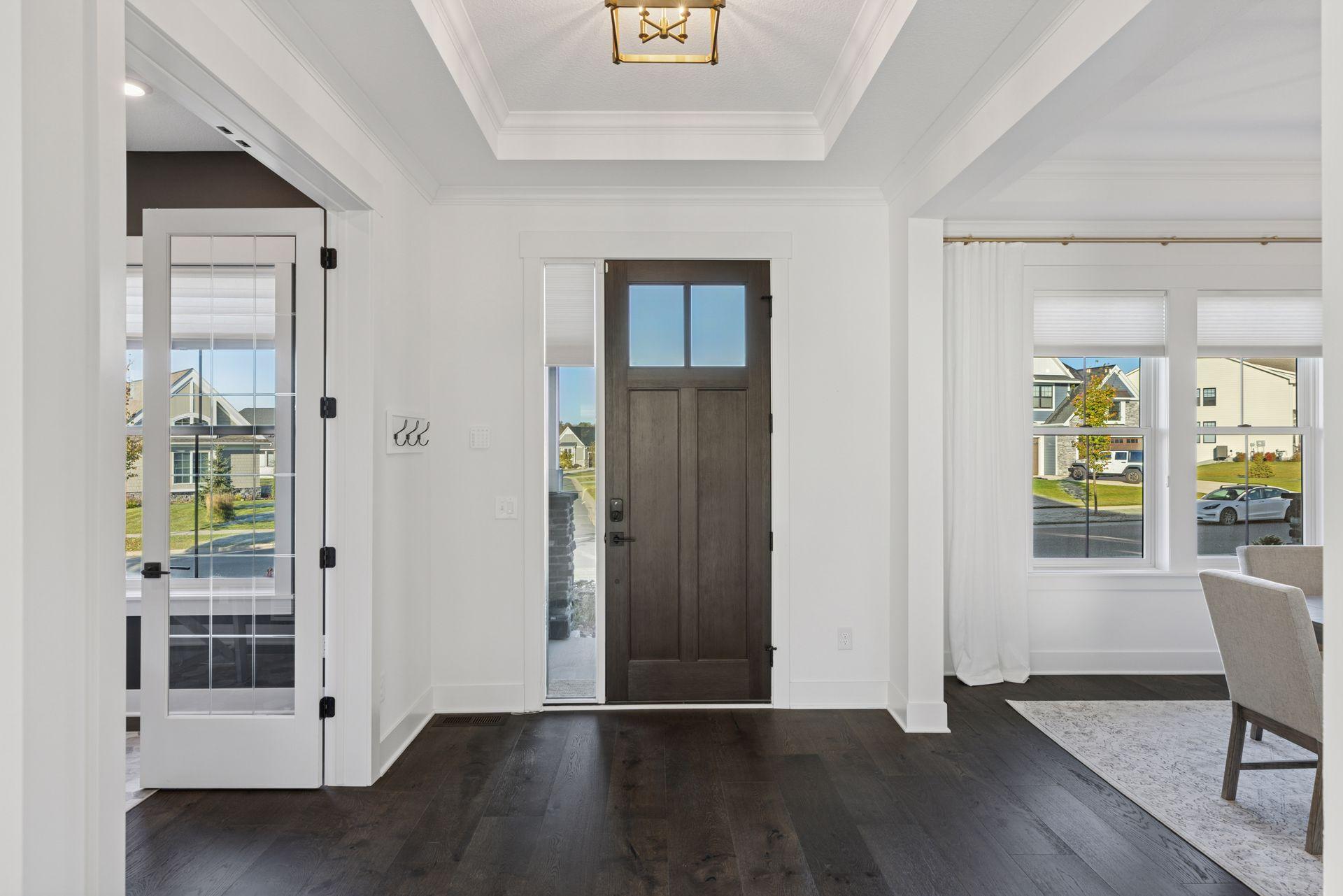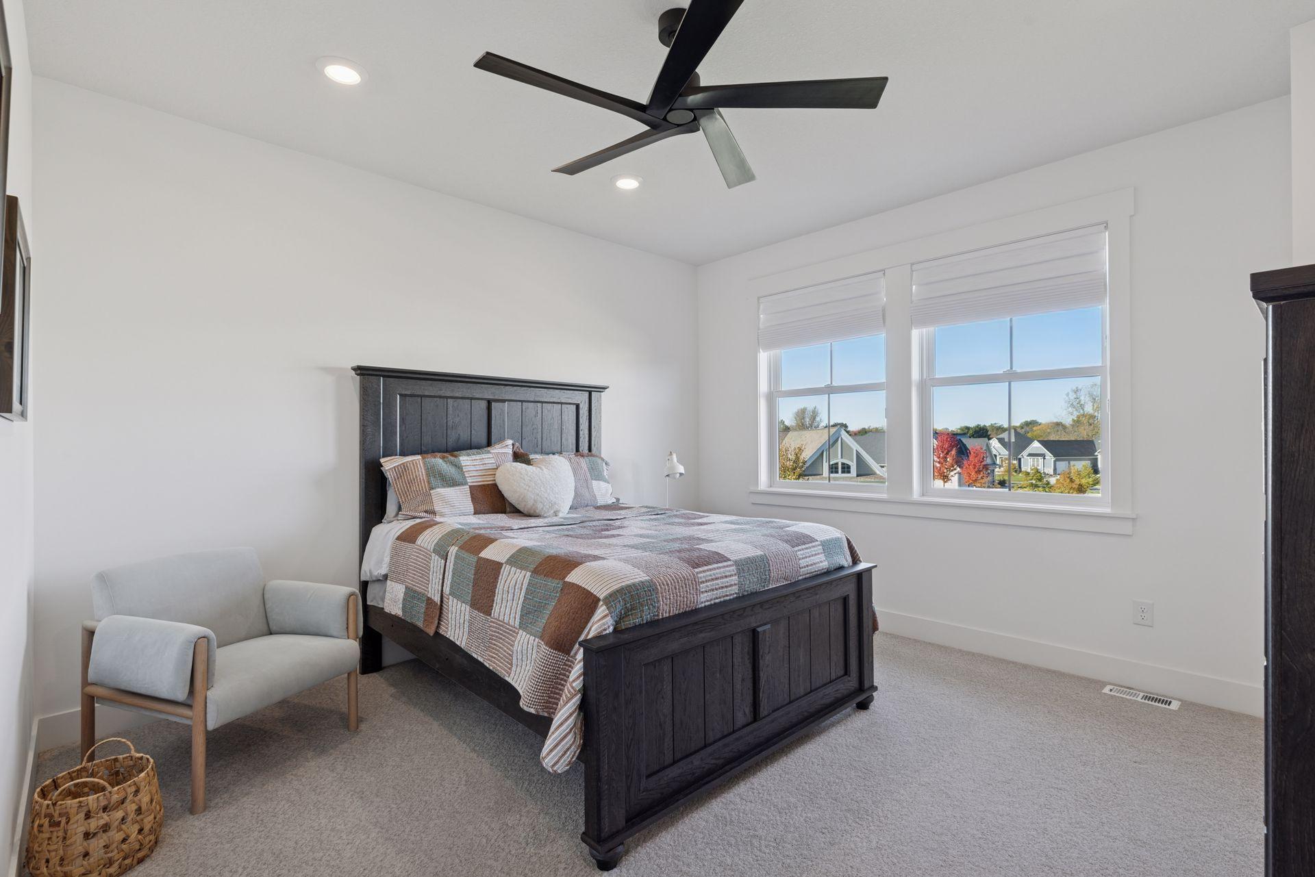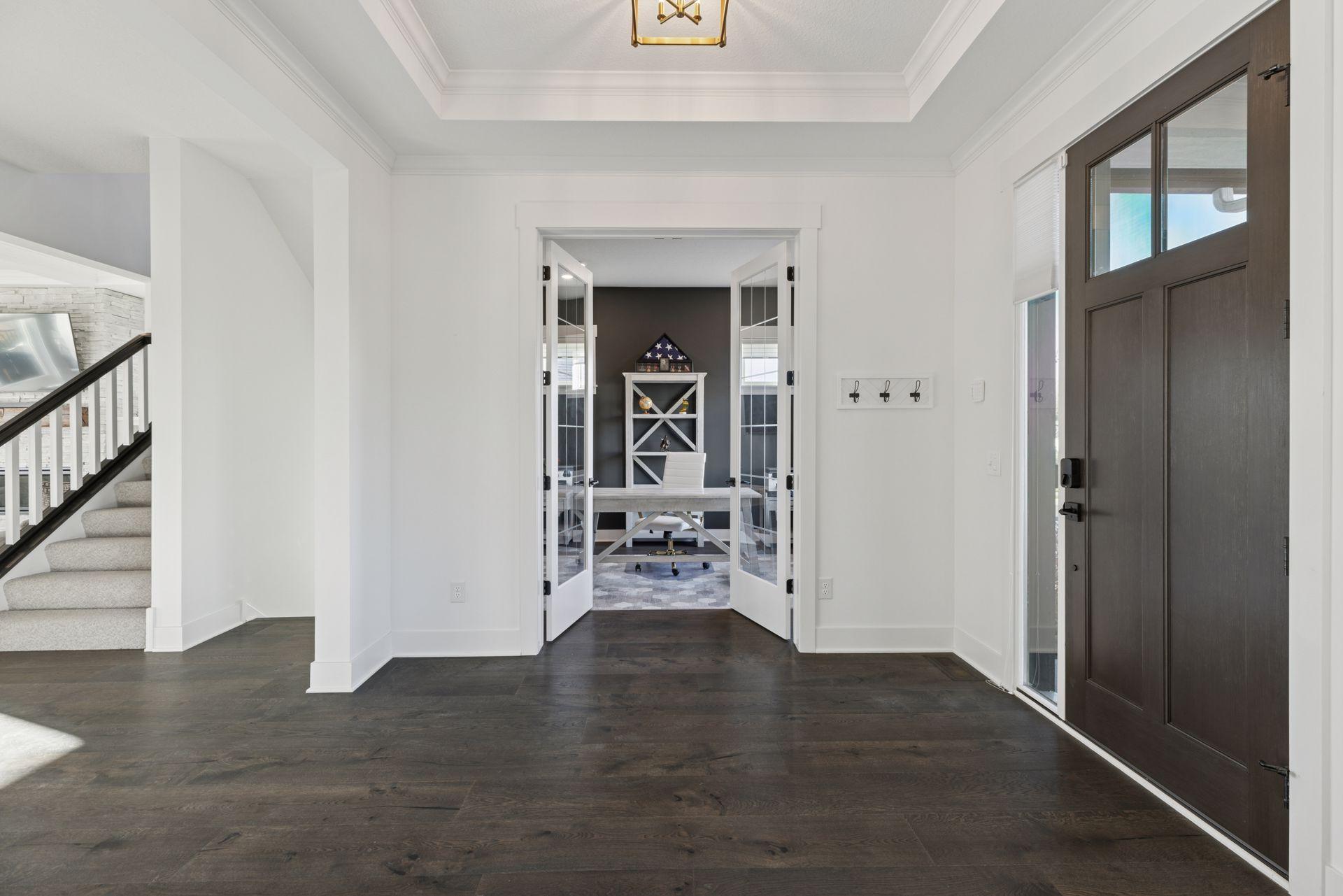 Welcome to 1389 Palmer Drive North, a former luxury model home that exemplifies refined craftsmanship and elevated living. Meticulously maintained, richly appointed, and loaded with upgrades this property truly has it all! Perfectly positioned along the 8th green of The Royal Club Golf Course, this residence offers an unparalleled combination of sophistication, comfort, and modern functionality. From the moment you arrive, the home’s timeless curb appeal and manicured landscaping make a statement. The combination of board-and-batten siding, stone accents, and designer finishes highlight the meticulous attention to detail throughout this property. Inside, natural light pours through expansive windows, illuminating an open-concept design that seamlessly blends modern luxury with classic charm. Every space has been thoughtfully curated, featuring custom millwork, wide-plank hardwood floors, and soaring ceilings. The gourmet kitchen is a showstopper — complete with high-end appliances, an oversized island, Cambria countertops, and elegant brass lighting fixtures. Adjacent, the formal dining room sets the tone for memorable gatherings, while the cozy great room with its stone fireplace offers the perfect retreat. With access to the expansive outdoor deck and kitchen the screened porch with fireplace, Eze-Breeze windows, and wood-paneled ceiling overlooks lush fairways, greens and sunset views. The designer details continue throughout the lower level with an entertainment area that rivals a private club, complete with a custom wet bar, gaming space, and access to the beautifully landscaped backyard. The upper level offers a luxurious primary suite with spa-inspired bath including a freestanding tub, in-floor heat, walk-in shower, and dual vanities, a sanctuary of relaxation after a day on the course. A second bedroom with en suite bathroom provides comfort and privacy for family or guests, while the bonus room offers flexible space that could easily serve as a playroom, homework hub, or private family lounge. Every element of this home reflects thoughtful design and refined functionality. The oversized three-car heated garage is more than a place to park; it's a pristine extension of the home, finished with epoxy flooring, professional storage systems, and a dedicated golf cart bay for effortless access to the course. A private home gym offers the convenience of fitness just steps away, while integrated smart home technology and in-floor heat elevate daily living with seamless control and high-performance comfort. Outside, a charming “19th Hole” backyard retreat provides the perfect finishing touch, a welcoming space for stowing your gear or sharing post-round refreshments as the sun sets over the fairway. Nestled within one of Lake Elmo’s most coveted communities, The Royal Club offers championship golf, scenic walking paths, and a vibrant neighborhood ambiance. Schedule your private tour today and discover why luxury buyers choose The Royal Club living.