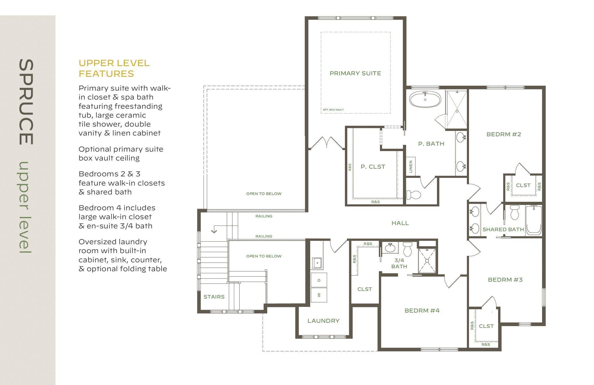 The Spruce, part of our McDonald’s Signature Series, features a 4-stall garage and Indoor Sport Court! Dramatic volume ceiling, and plenty of windows. It also offers custom design options, including an Accessory Dwelling Unit (ADU), a golf simulator.