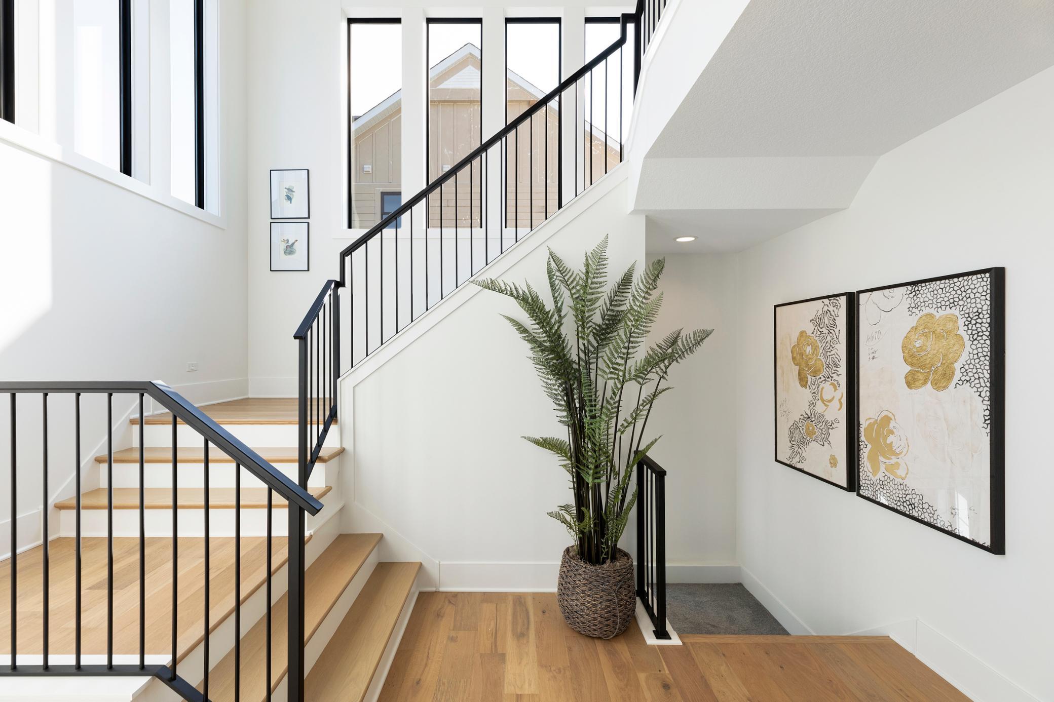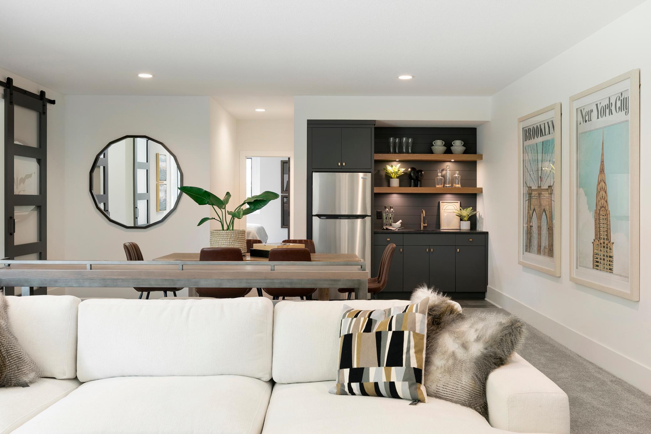 In the finished basement, you'll find 9-foot ceilings, a wet bar, flexible spaces for entertainment, an exercise room, and your fifth bedroom.