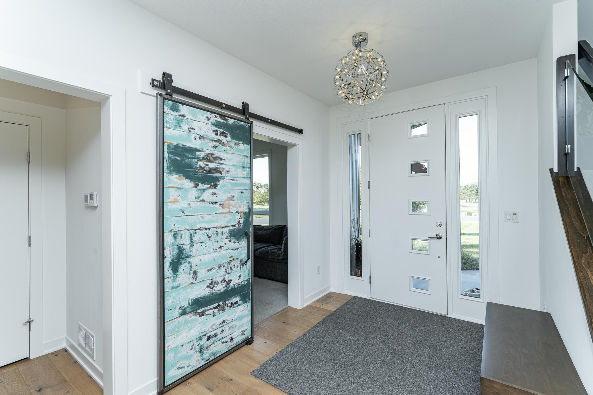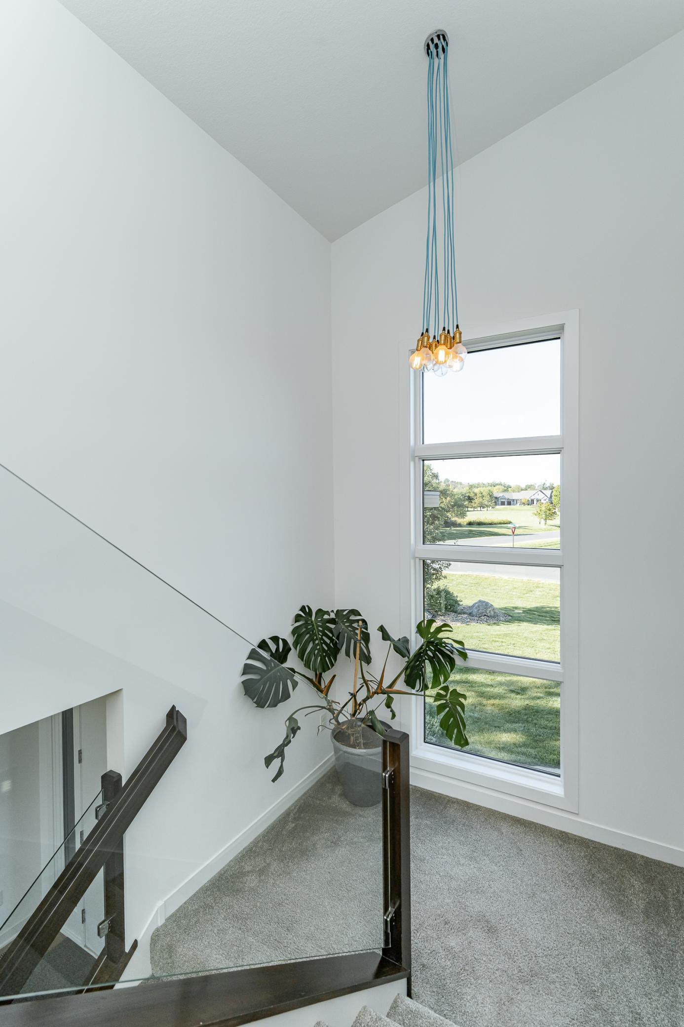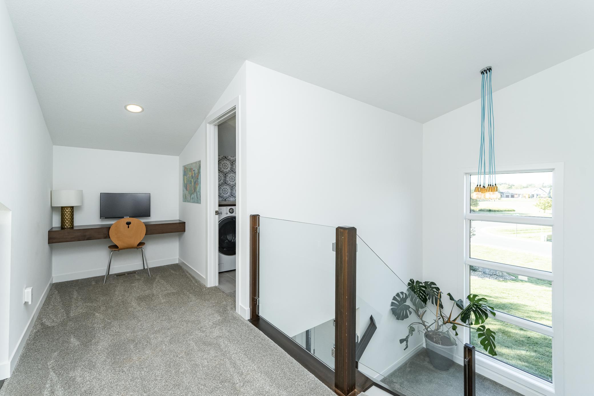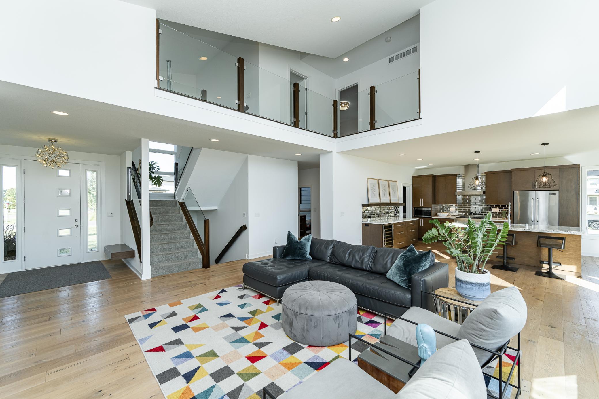 Welcome to this stunning modern home in the highly sought-after Mayo Woodlands neighborhood! Designed with clean lines, abundant natural light, and luxurious finishes, this 5-bedroom, 4-bathroom residence offers the perfect blend of style and functionality. The main floor features a spacious primary suite with his-and-hers closets, spa-inspired bathroom with soaking tub and heated towel rack, and conveniently located laundry. You'll also find a private office with custom built-ins, gourmet kitchen with a stylish and functional pantry, dining area, vaulted living room with expansive windows, and a well-designed mudroom. Upstairs, three generously sized bedrooms share a full bath, along with a second laundry room for added convenience. The recently completed lower level is an entertainer's dream featuring a lovely full kitchen, state-of-the-art exercise room with backlit mirrors, bathroom with faux skylight, large great room perfect for game or movie nights, a unique multi-purpose room accessible through a hidden door, an additional bedroom, and ample storage. Complete with a 3-car garage and positioned on a beautiful lot, this home is loaded with amenities and offers the best of modern living in one of Rochester's most desirable neighborhoods. Close to Mayo Clinic, schools, retail, trails and restaurants.