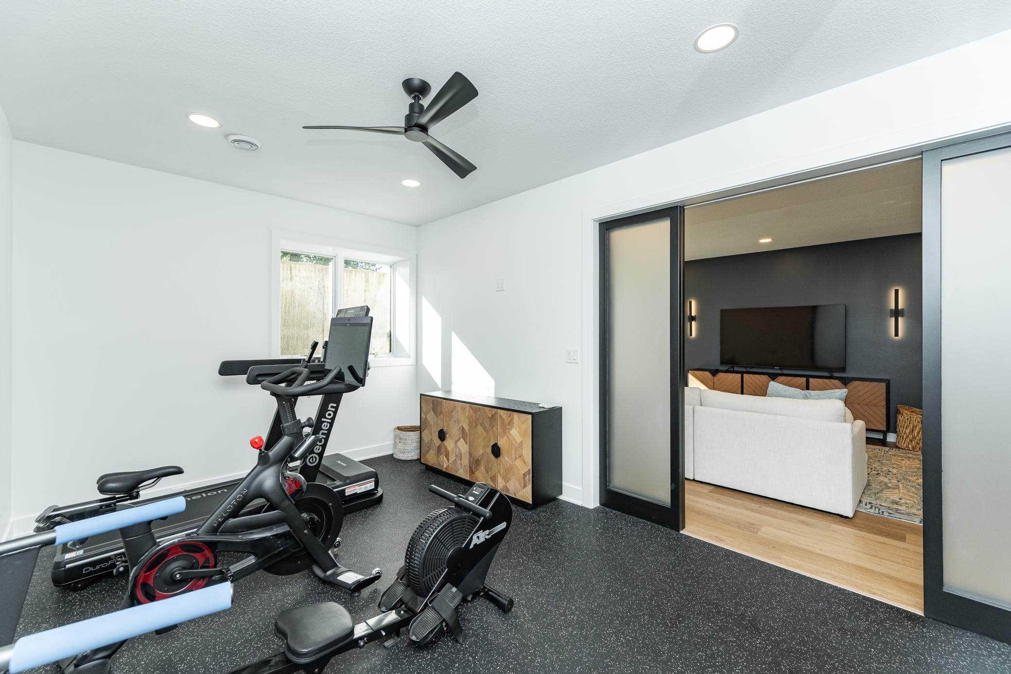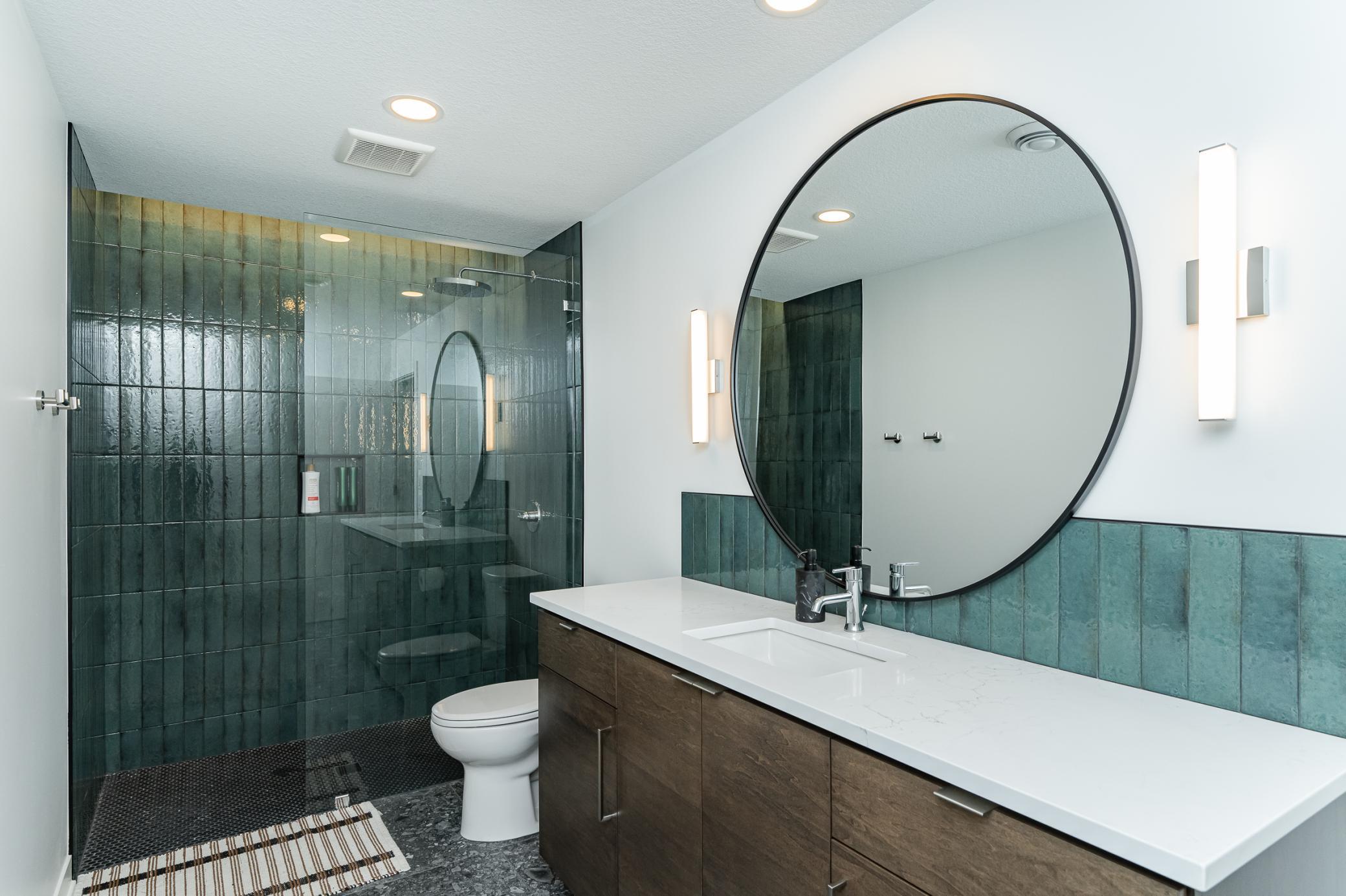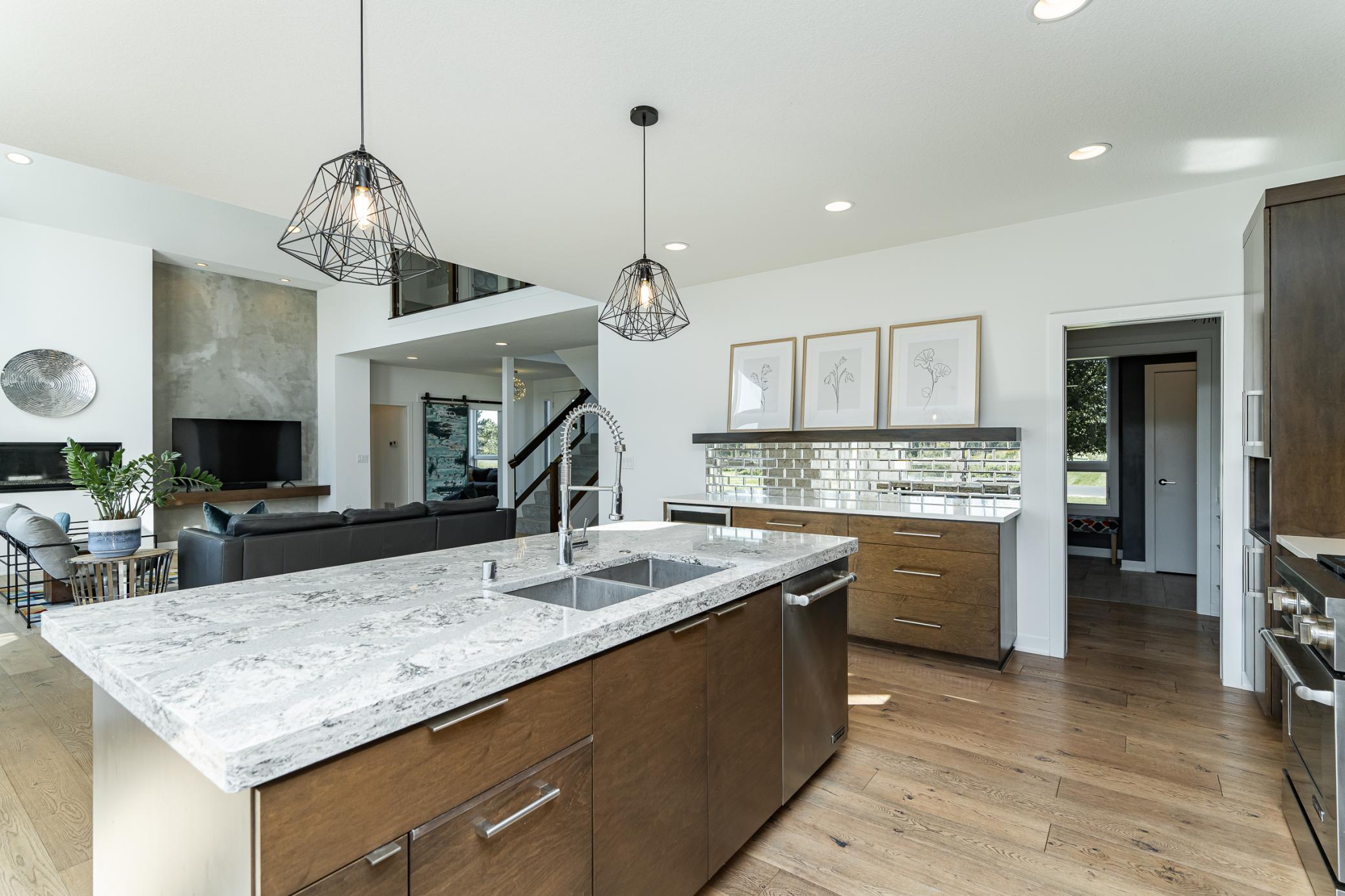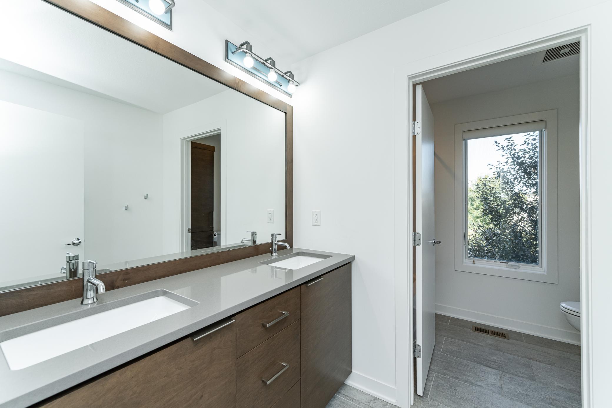Welcome to this stunning modern home in the highly sought-after Mayo Woodlands neighborhood! Designed with clean lines, abundant natural light, and luxurious finishes, this 5-bedroom, 4-bathroom residence offers the perfect blend of style and functionality. The main floor features a spacious primary suite with his-and-hers closets, spa-inspired bathroom with soaking tub and heated towel rack, and conveniently located laundry. You'll also find a private office with custom built-ins, gourmet kitchen with a stylish and functional pantry, dining area, vaulted living room with expansive windows, and a well-designed mudroom. Upstairs, three generously sized bedrooms share a full bath, along with a second laundry room for added convenience. The recently completed lower level is an entertainer's dream featuring a lovely full kitchen, state-of-the-art exercise room with backlit mirrors, bathroom with faux skylight, large great room perfect for game or movie nights, a unique multi-purpose room accessible through a hidden door, an additional bedroom, and ample storage. Complete with a 3-car garage and positioned on a beautiful lot, this home is loaded with amenities and offers the best of modern living in one of Rochester's most desirable neighborhoods. Close to Mayo Clinic, schools, retail, trails and restaurants.