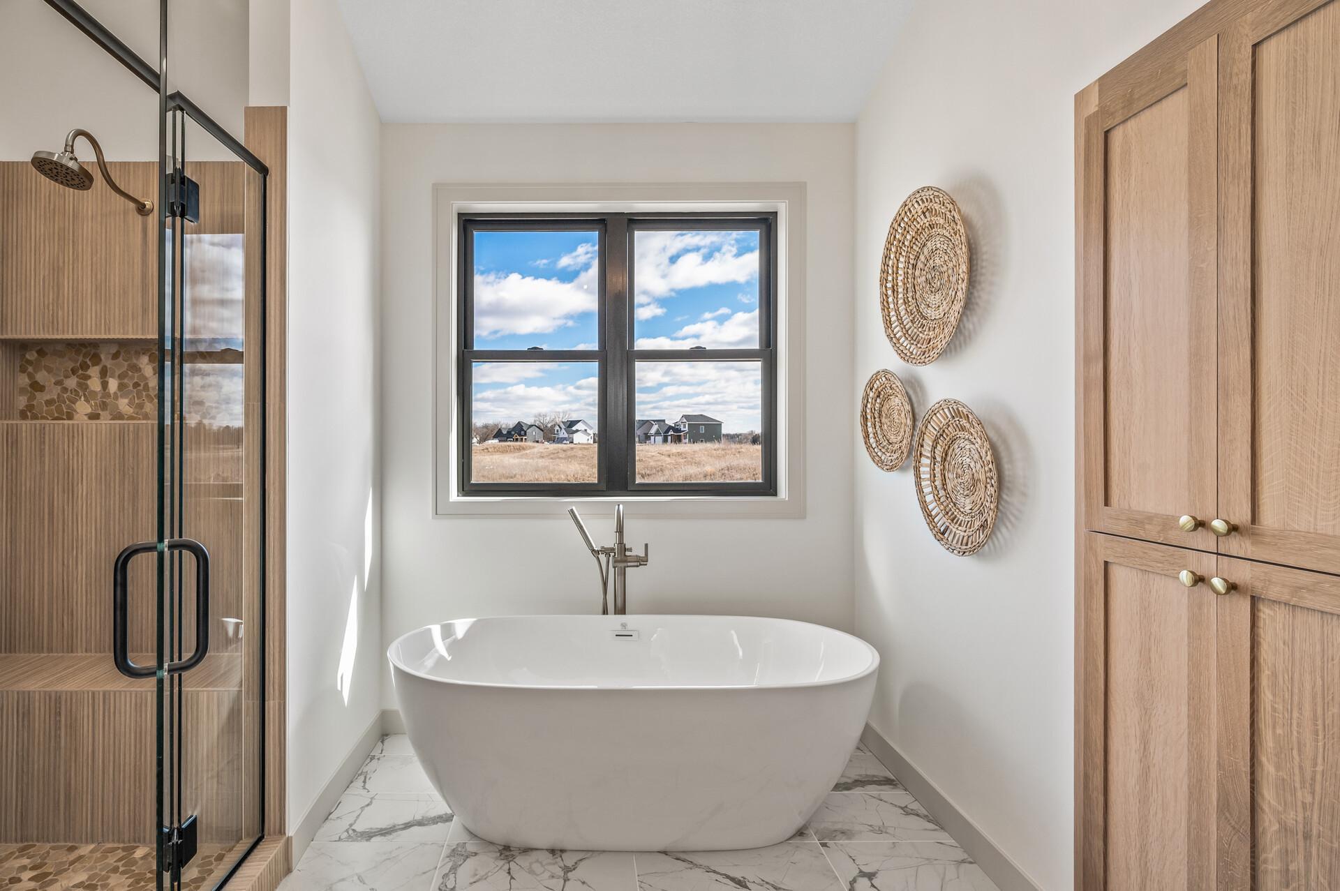 Build with Sharper Homes in Ham Lake's newest and sought after acreage lot development - Kohler Farms! This To-Be Built home does not show you pictures of a beautifully equipped home and advertises a price that includes far less. What you see is what is included in the list price! This thoughtfully designed home features a blend of timeless elegance and modern décor. The main level boasts three bedrooms, three bathrooms, a vaulted four-season porch, and a walk-in pantry with a workstation. The primary suite is a tranquil retreat, complete with a striking white oak slat wall and a vaulted private bathroom featuring a free-standing tub. Downstairs, you’ll find an inviting entertainment area with a beautiful wet bar, game room, large family room, exercise room, and two additional bedrooms with a bathroom. The oversized heated 6-car garage also includes a rough-in for a golf simulator and is ready for your finishing touches. Don’t miss the chance to inquire about adding an in-ground pool to your backyard! Sharper Homes offers an exclusive selection of executive lots set in this stunning new acreage development with ponds and wooded areas. Contact us today for a list of the lots we have available. Make this beautiful home yours or have us custom design the home perfect for you! We have off-MLS acreage lots available or we can build on your lot. Seller financing packages are available.