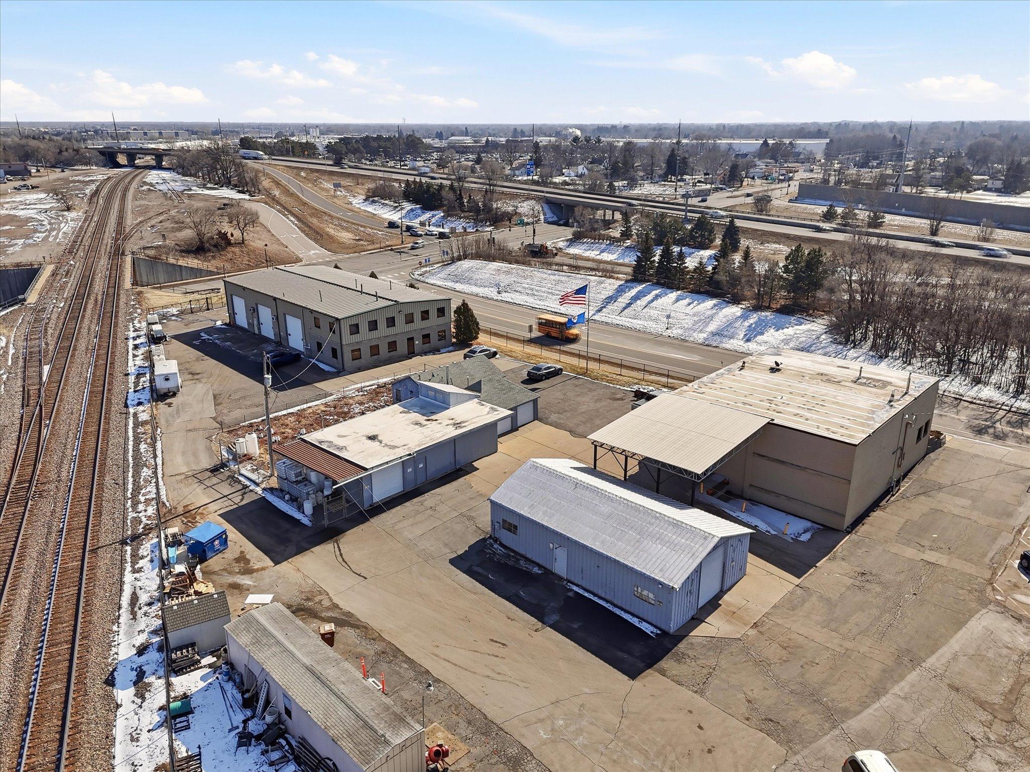 Location is prime, very visible, very convenient - just off Highway 10. Many uses are possible. The property is slightly over one acre and mostly fenced. The buildings: 2 strong mixed use buildings and 4 additional smaller shop or garage-type buildings. Largest building is 50x100 with approximately 3,700 square feet of warehouse with three 14'x14' overhead drive-in doors; 2 floors of office space of approx. 1,250 sq. ft. each. Built in 1999, the warehouse has approx. 17 ft. sidewall height with 20 ft. max. height; grease trap / oil separator drain; radiant heat. The next building has very nice office space remodeled in about 2011/2012, including a beautiful kitchen and lunch room. The warehouse in this building is approximately 1,450 sq. ft.; has a clear height of 12' to 15'; overhead door 14' wide, 12' tall leads to a loading dock that is covered. The smaller buildings are used for lab space, work shop and storage; all have heat, most have air conditioning.