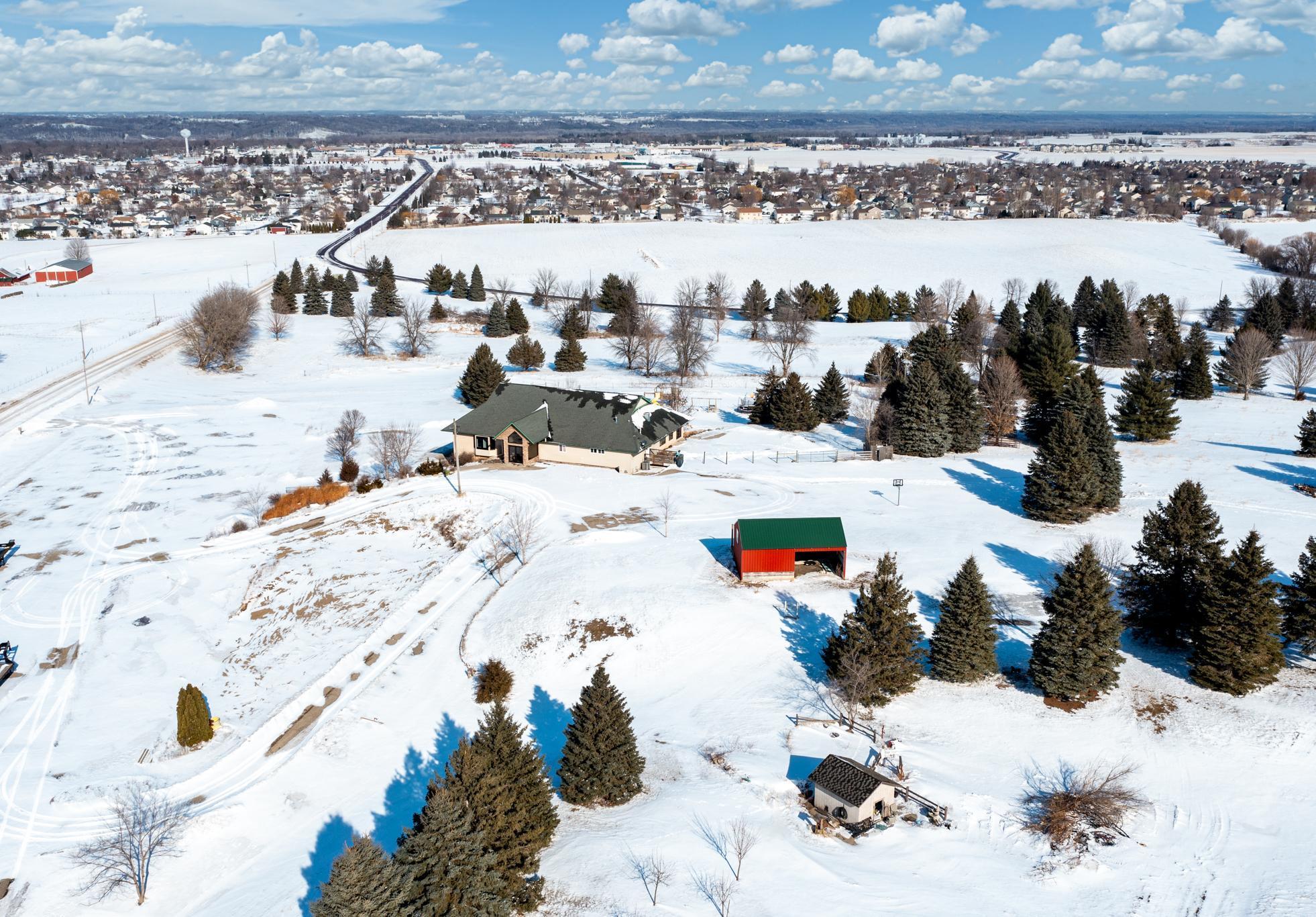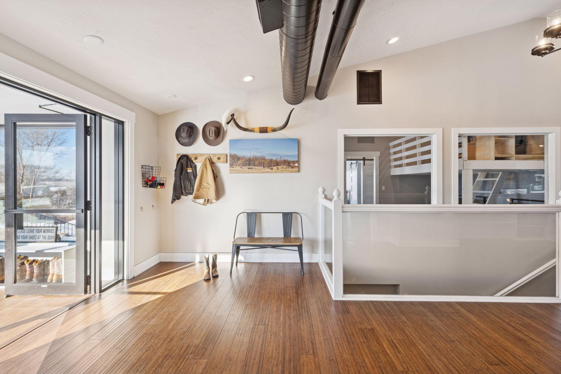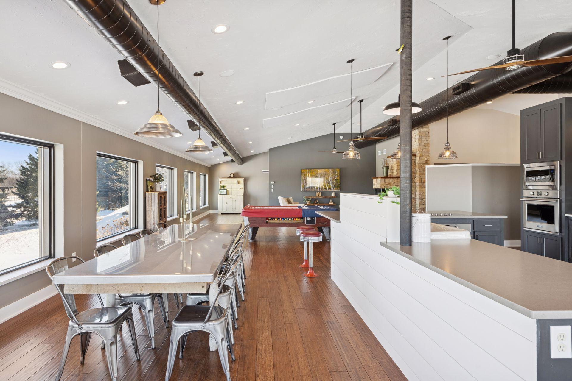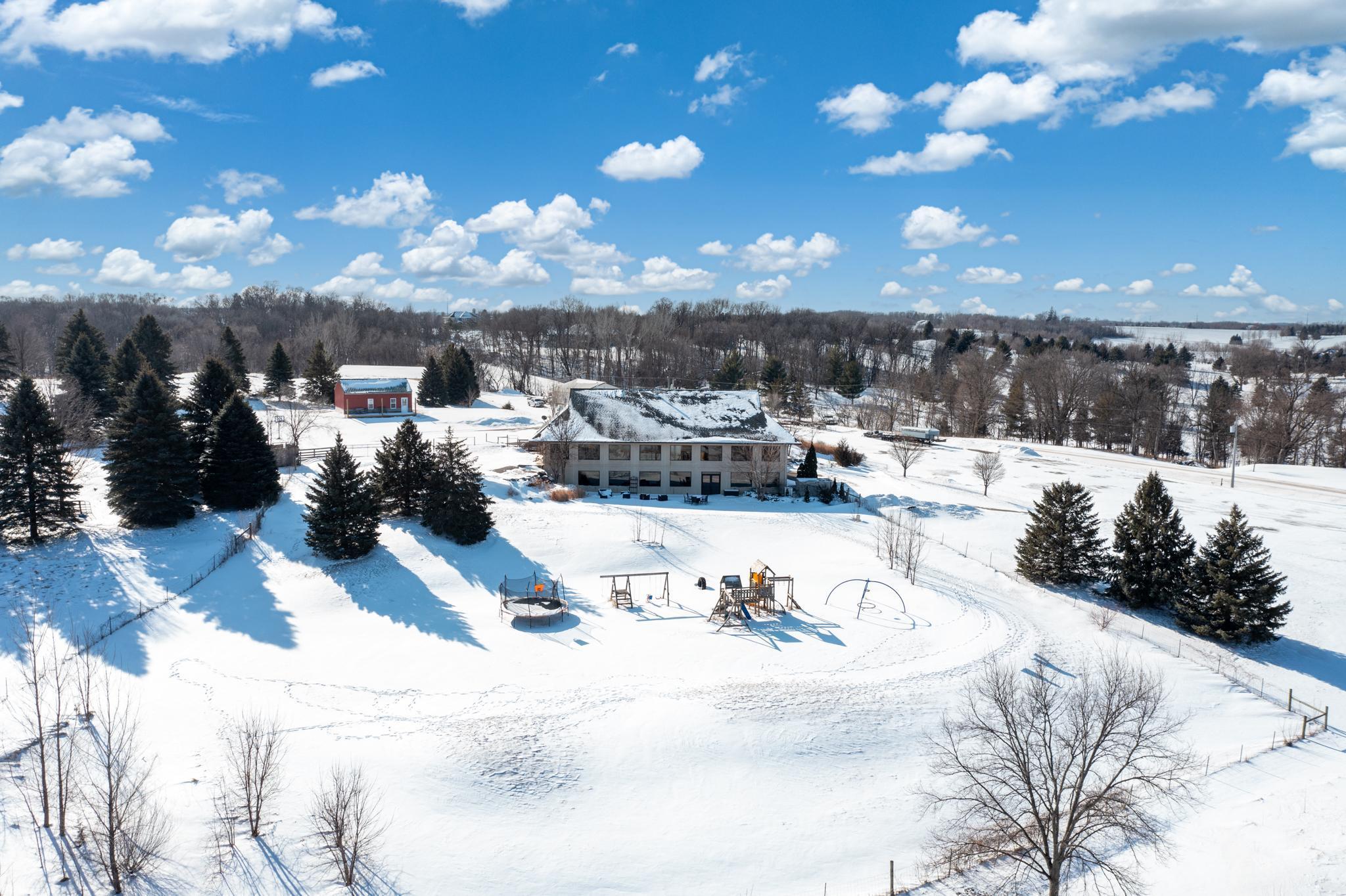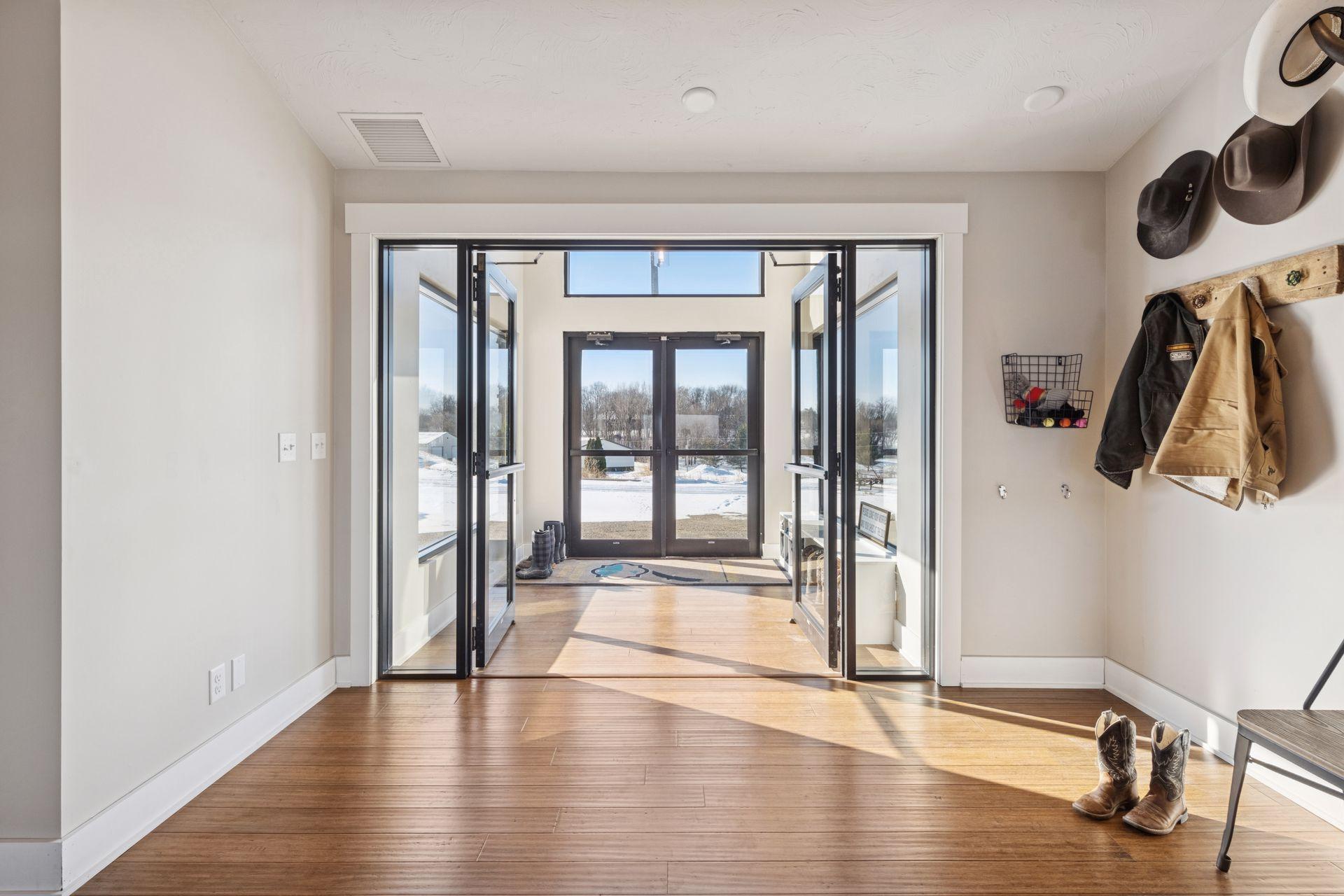 A master-crafted walkout rambler takes center stage on this 32-acre estate, where high-end finishes meet commanding views. Formerly a golf course, this remarkable property has been tastefully reimagined as a private sanctuary, offering one-of-a-kind architecture and sweeping panoramas from every window. The residence welcomes you with soaring vaulted ceilings and rich solid wood flooring that spans the main level, complemented by bespoke cabinetry, and designer lighting and built ins. The heart of the home is a chef’s showpiece kitchen anchored by a massive quartz island and one-of-a-kind counter seating, featuring professional-grade appliances, a farmhouse sink, handcrafted floating shelves, and a porch-style pantry. The owner’s private bath and the "his-and-her" bathrooms are loaded with tile features and premium upgrades including a custom splash tub. The exceptional mudroom balances high utility with distinctive character, boasting leathered granite surfaces, a dedicated dog wash station, a center laundry island, and a custom dumbwaiter for effortless access to the lower-level storage. Wall-to-wall windows frame the natural beauty of the rolling meadow. The lower walkout level provides incredible flexibility with an 80-foot expansive gallery and recreation room, an office with a private exterior entrance, and nearly 1,000 sq ft of storage. A perfect space for work or play, guest accommodation, multi-generation living, or future expansion needs. an ideal canvas for a private gym, guest wing, or multi-generational living. This home offers unmatched structural integrity. Built floor-to-ceiling with insulated core precast concrete and state-of-the-art windows, this home offers outstanding thermal efficiency, strength, and moisture protection. Features a zoned HVAC system and natural gas heating, this home boasts monthly energy costs comparable to a traditional home, half its size. Nearly 25 acres of established trees and pasture awaits making it a premier setting for equestrian and ranching pursuits. This is a legacy property delivering a level of privacy, scale, and scenery rarely found in today’s market.