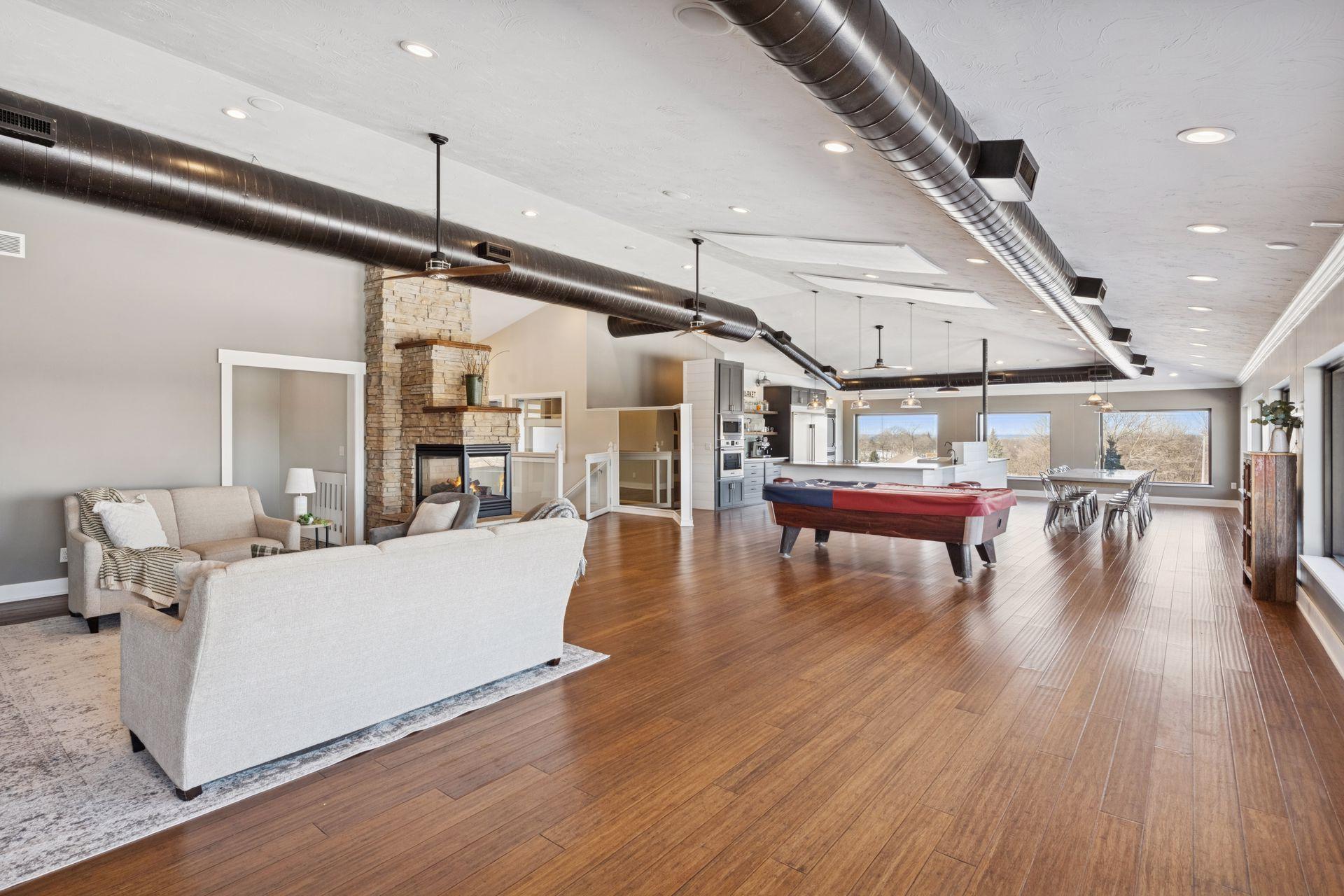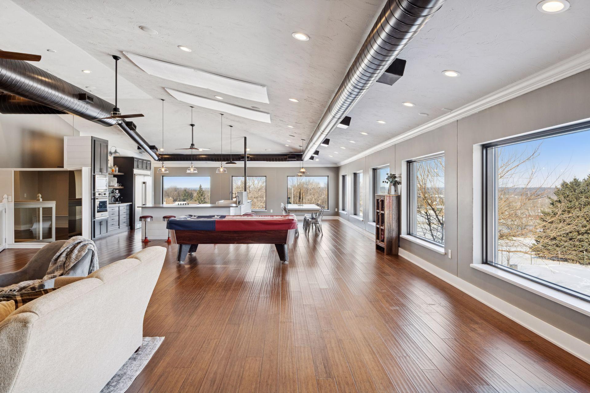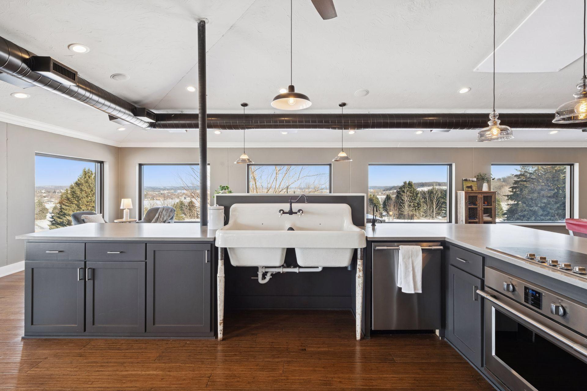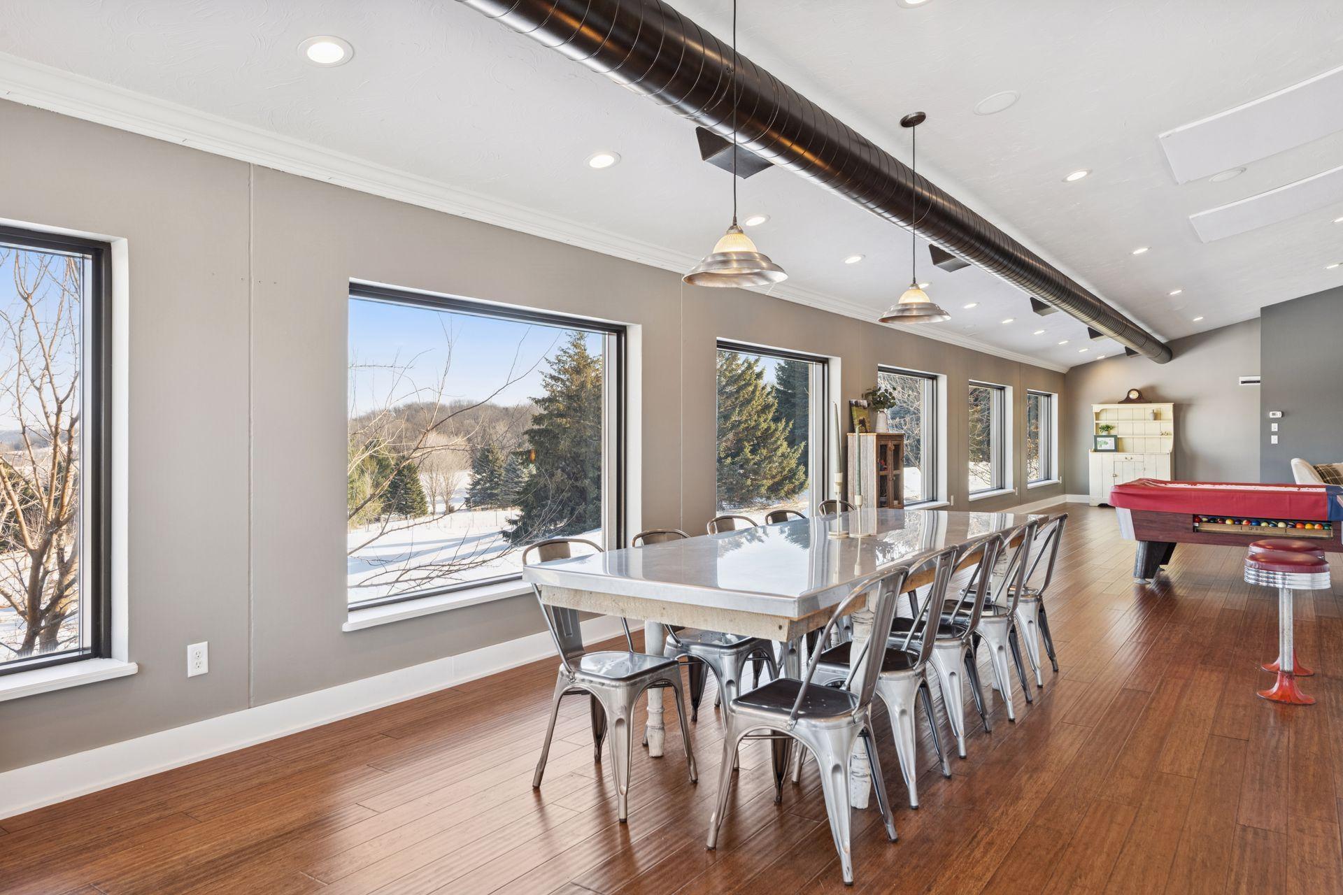 A master-crafted walkout rambler takes center stage on this 32-acre estate, where high-end finishes meet commanding views. Formerly a golf course, this remarkable property has been tastefully reimagined as a private sanctuary, offering one-of-a-kind architecture and sweeping panoramas from every window. The residence welcomes you with soaring vaulted ceilings and rich solid wood flooring that spans the main level, complemented by bespoke cabinetry, and designer lighting and built ins. The heart of the home is a chef’s showpiece kitchen anchored by a massive quartz island and one-of-a-kind counter seating, featuring professional-grade appliances, a farmhouse sink, handcrafted floating shelves, and a porch-style pantry. The owner’s private bath and the "his-and-her" bathrooms are loaded with tile features and premium upgrades including a custom splash tub. The exceptional mudroom balances high utility with distinctive character, boasting leathered granite surfaces, a dedicated dog wash station, a center laundry island, and a custom dumbwaiter for effortless access to the lower-level storage. Wall-to-wall windows frame the natural beauty of the rolling meadow. The lower walkout level provides incredible flexibility with an 80-foot expansive gallery and recreation room, an office with a private exterior entrance, and nearly 1,000 sq ft of storage. A perfect space for work or play, guest accommodation, multi-generation living, or future expansion needs. an ideal canvas for a private gym, guest wing, or multi-generational living. This home offers unmatched structural integrity. Built floor-to-ceiling with insulated core precast concrete and state-of-the-art windows, this home offers outstanding thermal efficiency, strength, and moisture protection. Features a zoned HVAC system and natural gas heating, this home boasts monthly energy costs comparable to a traditional home, half its size. Nearly 25 acres of established trees and pasture awaits making it a premier setting for equestrian and ranching pursuits. This is a legacy property delivering a level of privacy, scale, and scenery rarely found in today’s market.