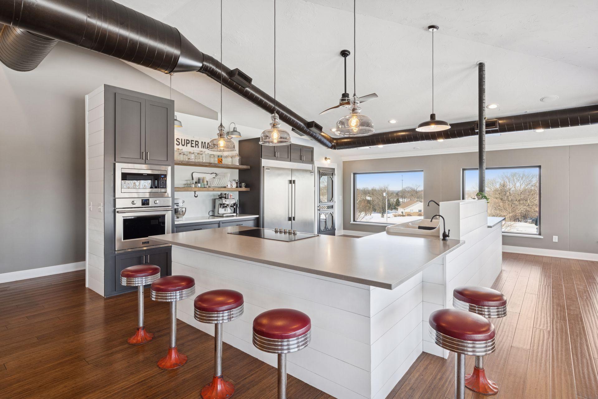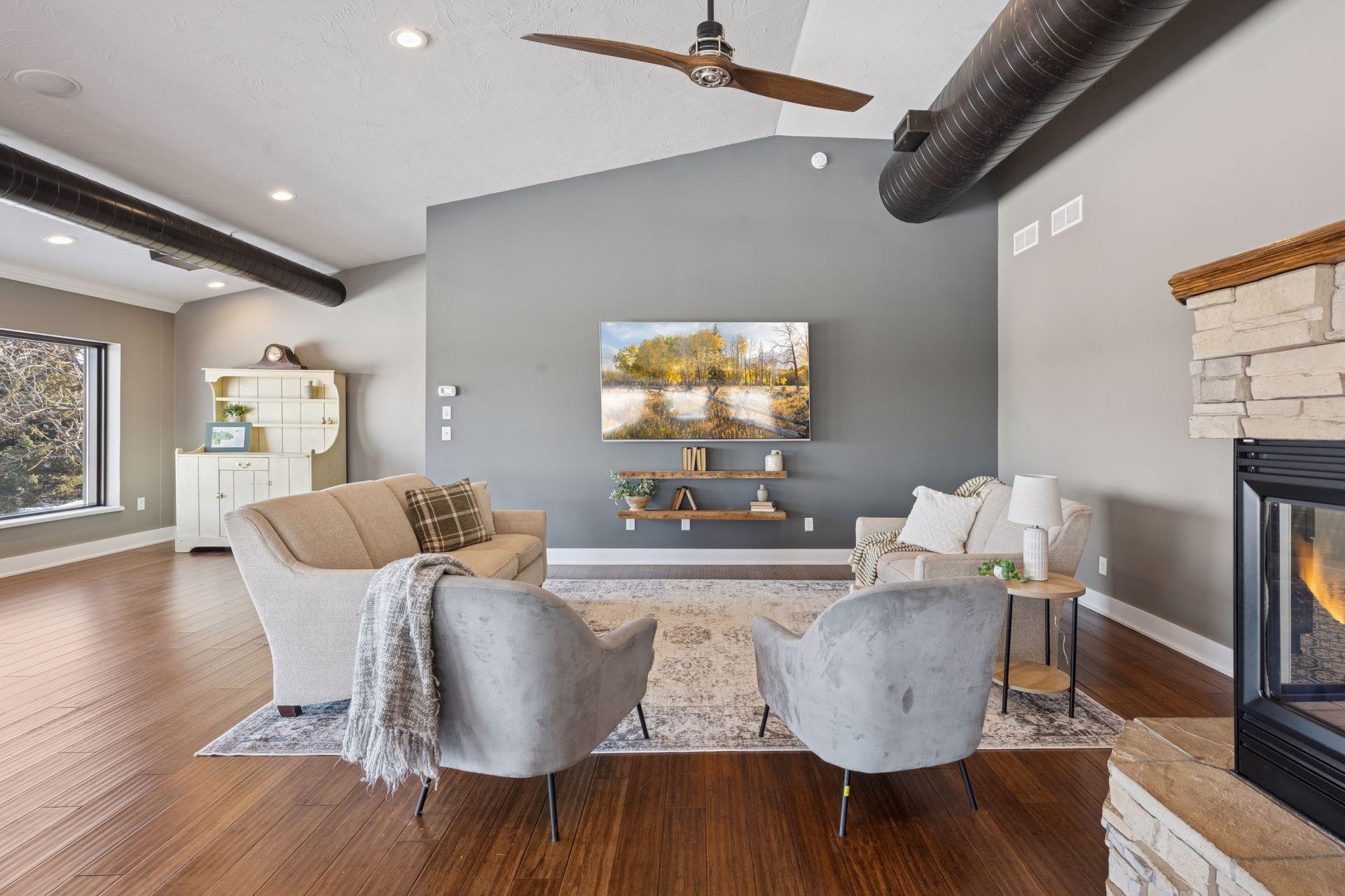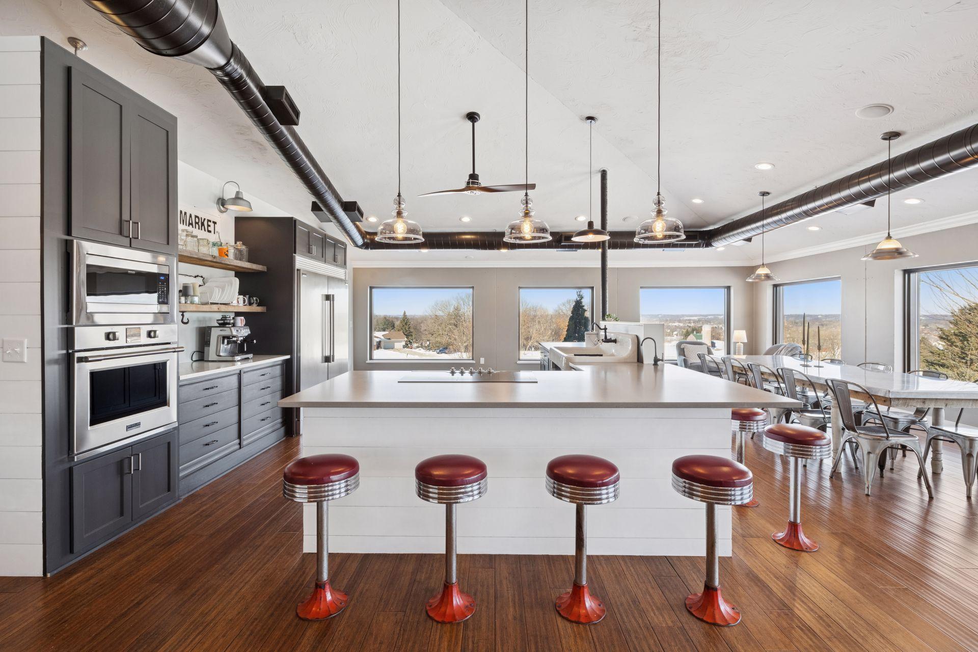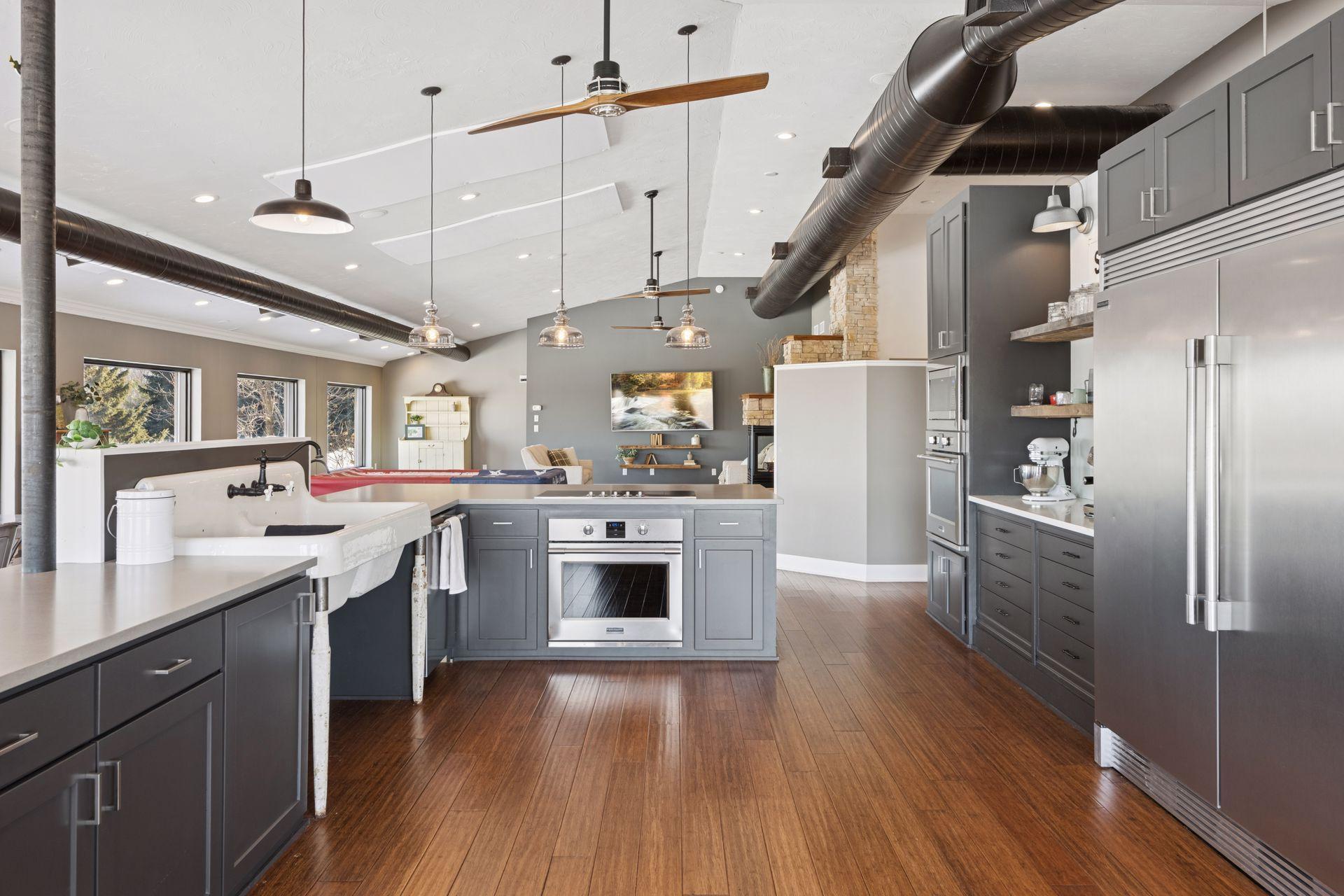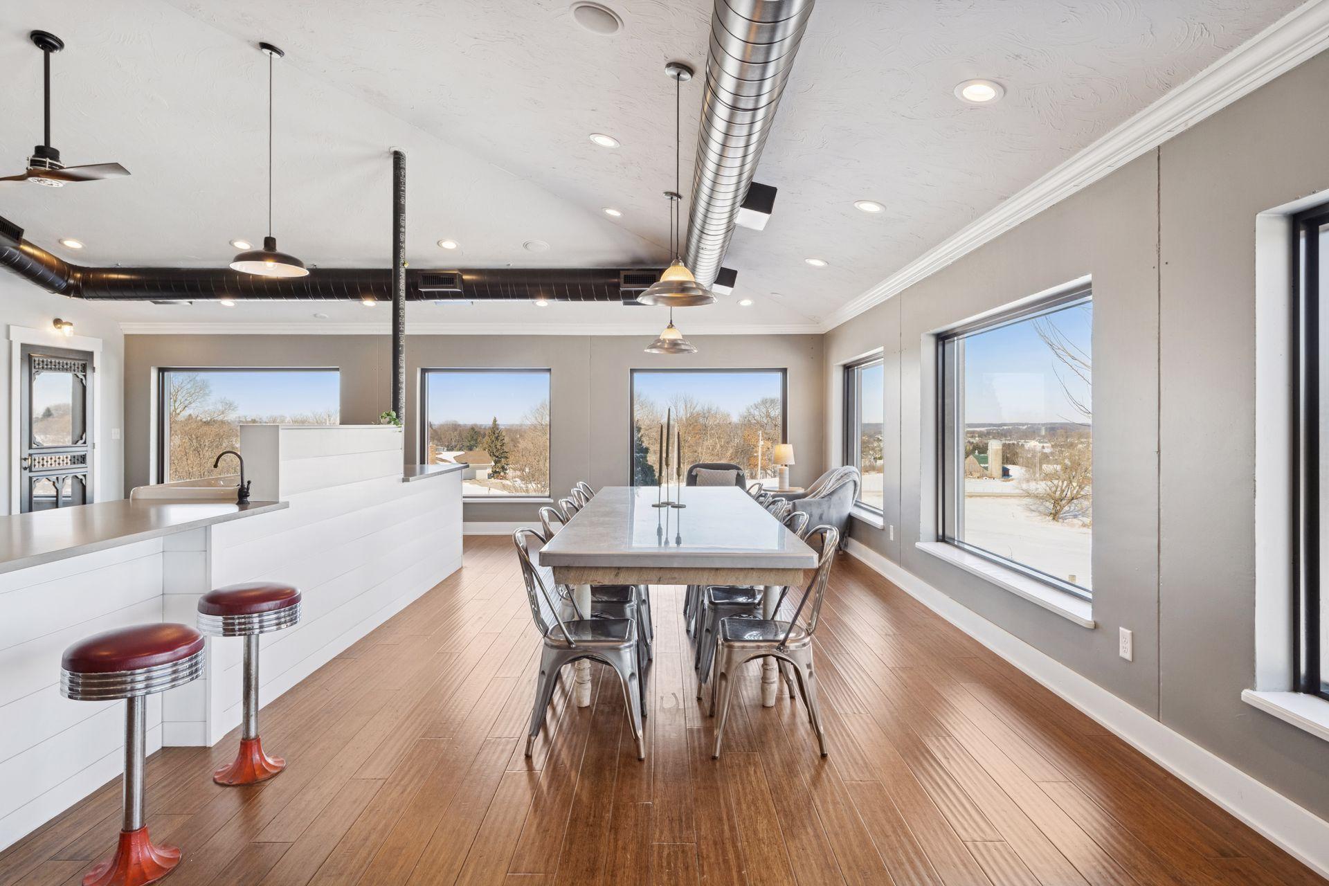 A master-crafted walkout rambler takes center stage on this 32-acre estate, where high-end finishes meet commanding views. Formerly a golf course, this remarkable property has been tastefully reimagined as a private sanctuary, offering one-of-a-kind architecture and sweeping panoramas from every window. The residence welcomes you with soaring vaulted ceilings and rich solid wood flooring that spans the main level, complemented by bespoke cabinetry, and designer lighting and built ins. The heart of the home is a chef’s showpiece kitchen anchored by a massive quartz island and one-of-a-kind counter seating, featuring professional-grade appliances, a farmhouse sink, handcrafted floating shelves, and a porch-style pantry. The owner’s private bath and the "his-and-her" bathrooms are loaded with tile features and premium upgrades including a custom splash tub. The exceptional mudroom balances high utility with distinctive character, boasting leathered granite surfaces, a dedicated dog wash station, a center laundry island, and a custom dumbwaiter for effortless access to the lower-level storage. Wall-to-wall windows frame the natural beauty of the rolling meadow. The lower walkout level provides incredible flexibility with an 80-foot expansive gallery and recreation room, an office with a private exterior entrance, and nearly 1,000 sq ft of storage. A perfect space for work or play, guest accommodation, multi-generation living, or future expansion needs. an ideal canvas for a private gym, guest wing, or multi-generational living. This home offers unmatched structural integrity. Built floor-to-ceiling with insulated core precast concrete and state-of-the-art windows, this home offers outstanding thermal efficiency, strength, and moisture protection. Features a zoned HVAC system and natural gas heating, this home boasts monthly energy costs comparable to a traditional home, half its size. Nearly 25 acres of established trees and pasture awaits making it a premier setting for equestrian and ranching pursuits. This is a legacy property delivering a level of privacy, scale, and scenery rarely found in today’s market.