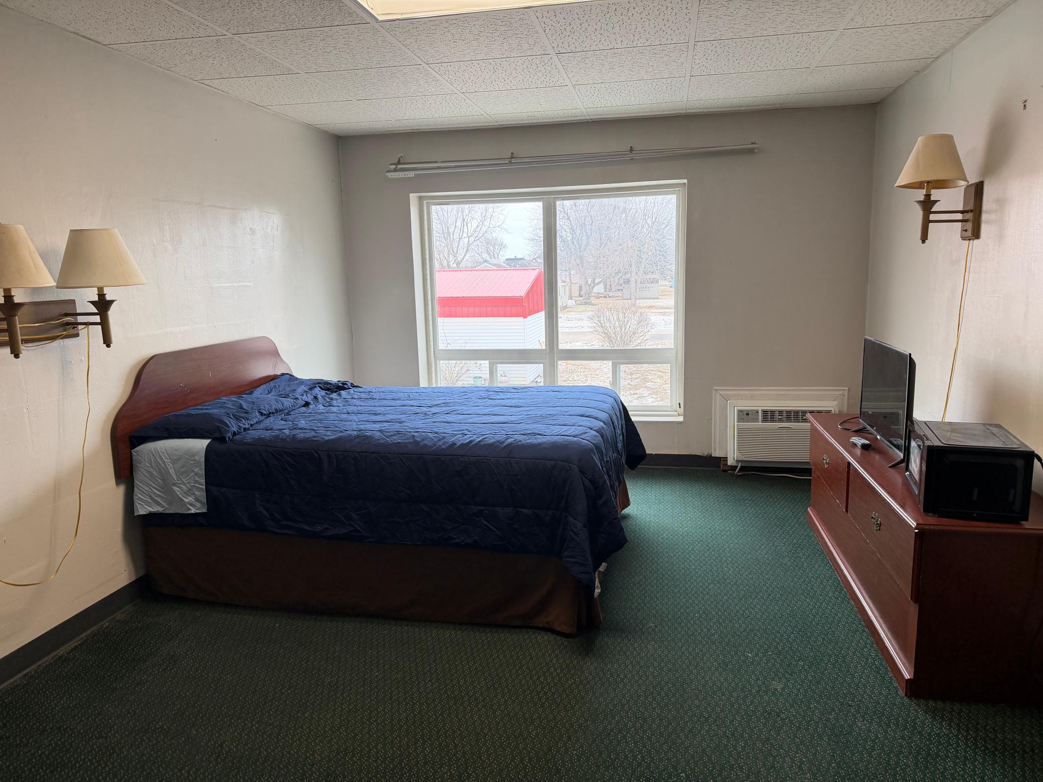 Investors opportunity is knocking! This Hotel/Studio apartment property has so much to offer. There are a total of three buildings. The front and back units are rented out for short or long term occupancy. There is a total of 36 rooms that are furnished with stove, refridg, microwave, dresser, bed, each unit as its own heat and AC source. There is a owners/managers suite with 3 bedrooms , kitchen, living room and bath, basement, and a 2 car attached garage. This too can be rented out to tenants. There is a office attached to the front building. There has been lot of updates to this property in the last 2 years. For more details please call or make an appointment to check it out. Invest in the New Year owning this prime located property in a high traffic area in Worthington, MN. There are several buildings so measurements will be given at appointments .