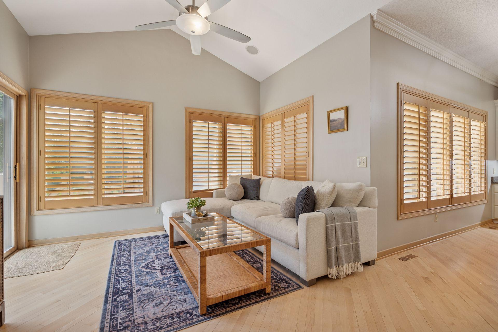 Incredible value in this Executive Rambler located in private neighborhood of Bell Oaks showcasing main-level living, timeless craftsmanship, elevated design, a long list of significant updates, and a standout, private treed lot. Every space is thoughtfully designed for entertaining while maintaining the perfect balance of an open, spacious floor plan and the welcoming charm that truly makes it feel like home. Impressive floor plan, 5,600+ FSF One-Story nestled on nearly ½ acre in highly-sought after close-knit, tree lined neighborhood offering a community feel and peaceful, serene location. Fabulous backyard retreat with fully fenced, flat backyard featuring a stamped concrete patio with firepit, oversized refinished deck, mature trees and a private, park-like feel. Open-concept, soaring vaults, expansive floor to ceiling windows, and rich natural woodwork fill the home with light and warmth. Gourmet kitchen with center island, granite countertops, upgraded appliances, newly refinished, modern white cabinetry, stylish lighting, and informal/formal dining options. Towering, double-sided stone fireplace, relaxing hearth, and informal dining are the heartbeat of this home. Luxurious primary suite boasts French doors, a spa-inspired bath and expansive walk-in closet with custom organization. Work from home in the versatile, executive office which offers potential for guest suite or additional bedroom with its unique, half bath. The lower level is a entertainers dream retreat, anchored by a spacious family room ideal for entertaining or unwinding, with a billiard/game area, full wet bar, stone fireplace, custom built-ins, exercise space, and generously sized bedrooms with walk-in closets. Location is a 10: Quiet, serene, and just minutes from top-rated Eden Prairie schools, parks/trails, and the scenic Minnesota River Bluffs Regional Trail, offering the perfect blend of privacy and convenience. Recent Updates: New roof, gutters, and gutter guards (2024), New furnace and A/C (2022), refinished kitchen white cabinetry, and newly stained deck (2025). Additional highlights include custom wood blinds, dual zone heat, SONOS sound system, upgraded paver driveway/sidewalk, and an oversized mudroom and convenient, main-level laundry area. A rare opportunity for those seeking a spacious move-up home with effortless livability, generous one-level floor plan, or versatile multi-generational living opportunity. This exceptional home is not to be missed!