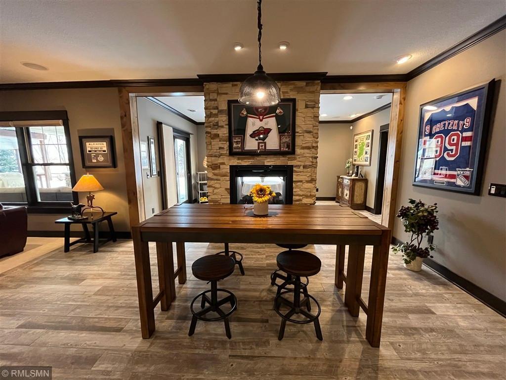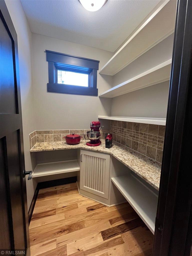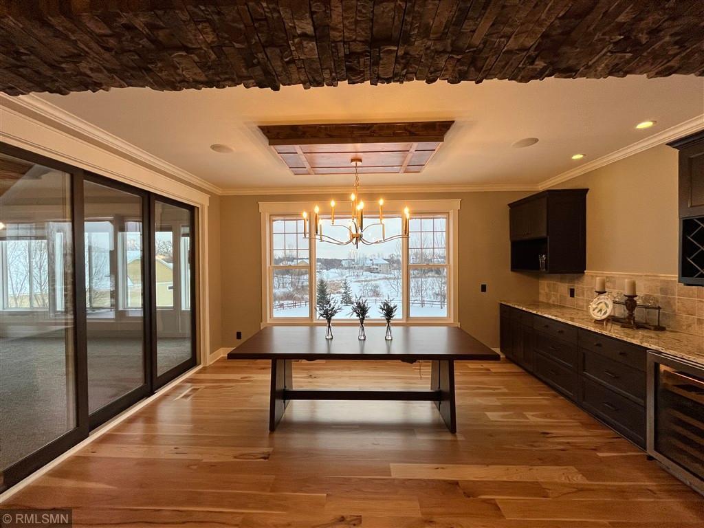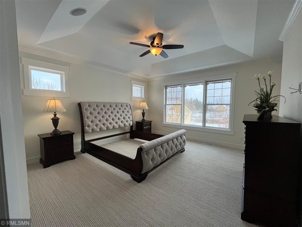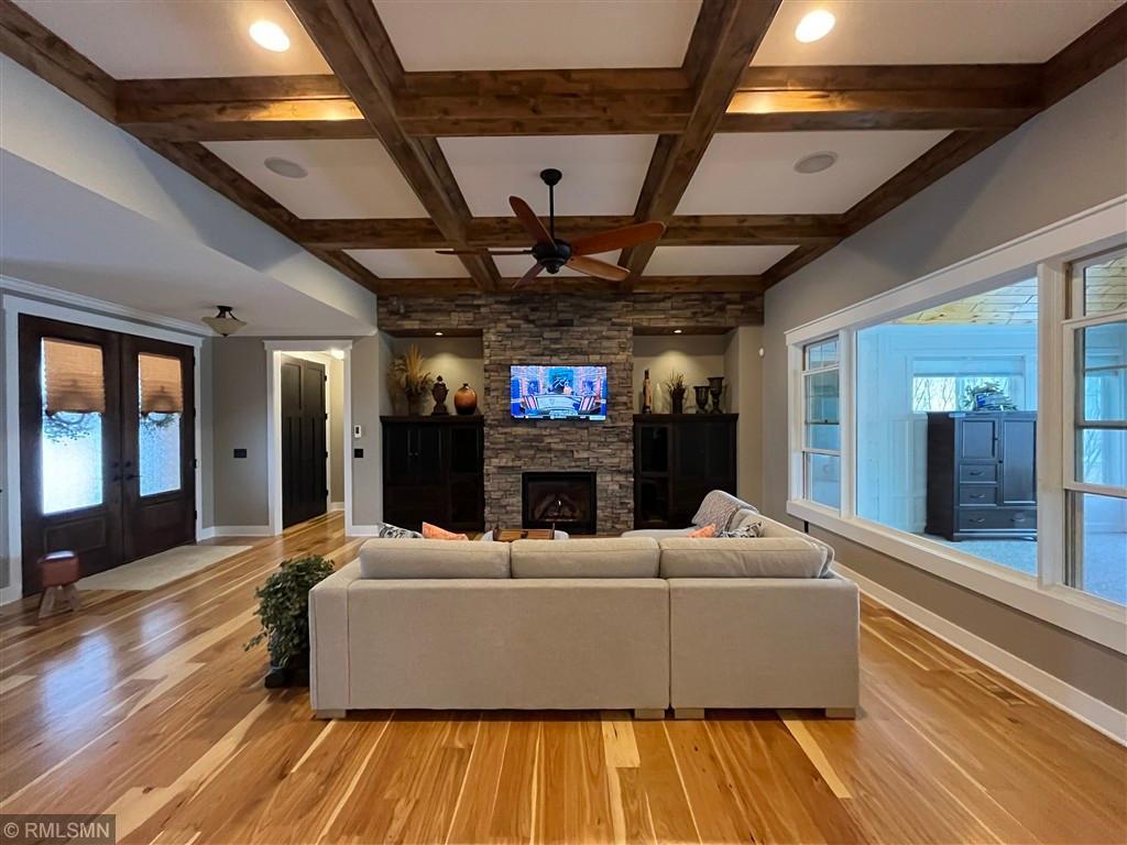 Exquisite custom home in the highly sought-after St. Croix’s Sanctuary neighborhood in Lake Elmo. With approximately 6000 sf of finished space, this refined luxury walkout rambler residence has been meticulously maintained. It features 5 bedrooms, 5 bathrooms, 3 fireplaces, office/den, bonus room, exercise room, and 4-season porch. Potentially up to 8-car garage with 4-car heated garage on the street level currently and an additional 4-car heated garage-equivalent spancrete space below; I-beam rough-in already for future garage door (the space is currently used as a workshop and exercise gym). The home is situated on a 0.8-acre elevated site, complete with extensive landscaping. The south-facing vintage point offers commanding view for all-season bird watching (in the backyard pond) as well as endless views of the valleys in the surrounding Lake Elmo and Stillwater vicinities. Whether it is hosting family, cheering on a ball game, or simply sipping morning coffee and/or watching the hot air balloons floating by in the autumn afternoon - this is the perfect place to enjoy everyday life in style. The interior of the house strikes the ideal balance between quasi-rustic charm and modern comfort: gleaming hickory hardwood floor, stunning knotty alder coffered boxed ceiling, bold stone accent walls, cozy radiant floor system covering 4600 sf (entire basement and both upper and lower garages), detailed custom tilework, woodwork, crown molding, and cabinet, culinary chef’s kitchen with high-end stainless steel appliances, built-in speakers, hardwired ethernet and coax cable lines in every room, spa-like primary bath, dedicated exercise room / flex room, sumptuous 700+ sf of guest bedroom suite, splendid sun-filled 4-season porch with vaulted T&G pine ceiling, and many more. All these blends seamlessly to the master-designed outdoor space, combining with extensive boulder walls, two patios, a custom-designed grilling gazebo, lush green grass, manicured shrubs, mature trees – this is outdoor living at the finest. For those who want to venture out, the development has its own trails and is also within walking and/or biking distance to Gateway Trail and Brown’s Creek Trail. The home is centrally-located in northeast Lake Elmo with easy access to freeway, shopping, golf courses (five within 5 square miles), and historic downtown Stillwater.