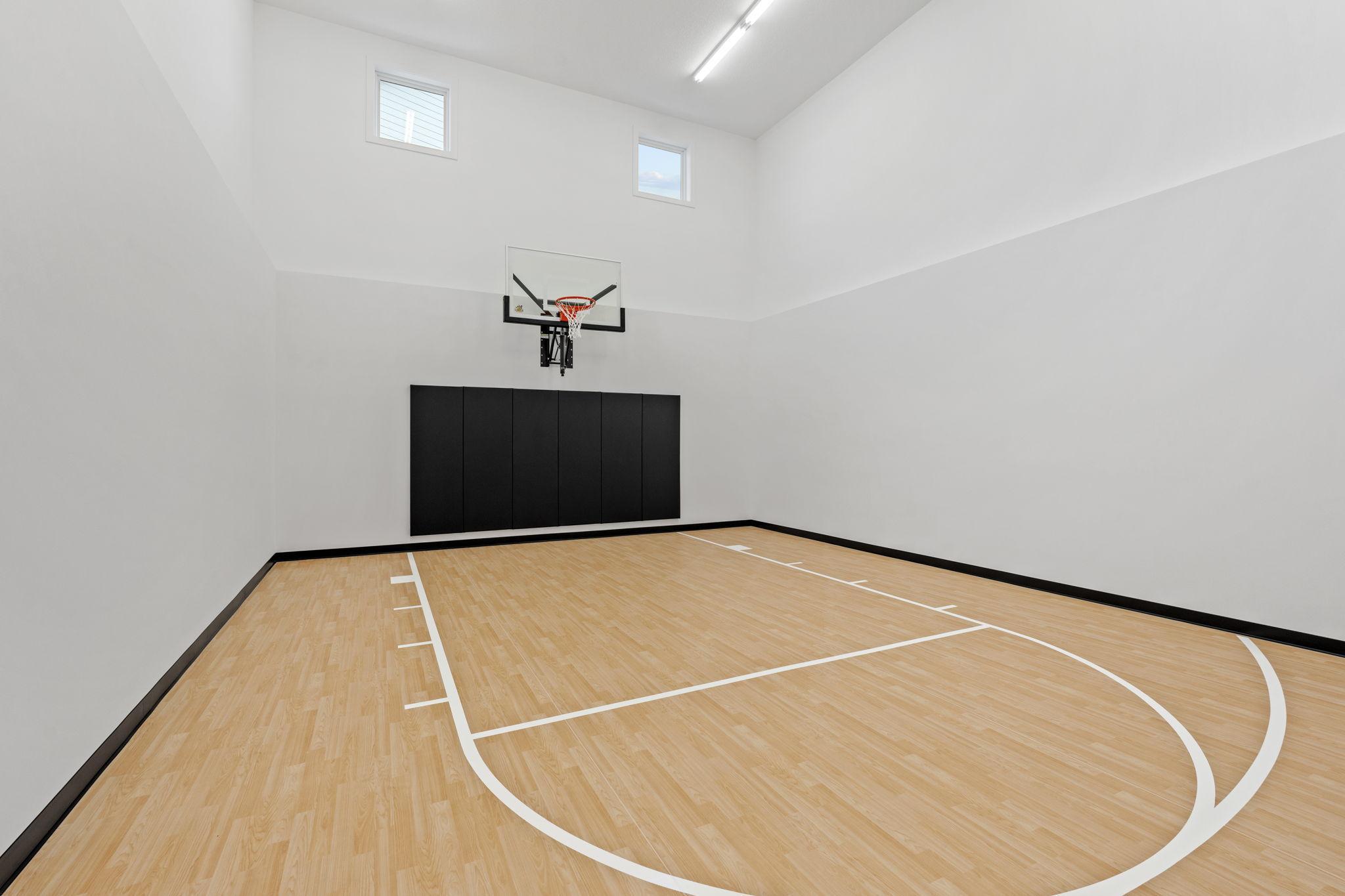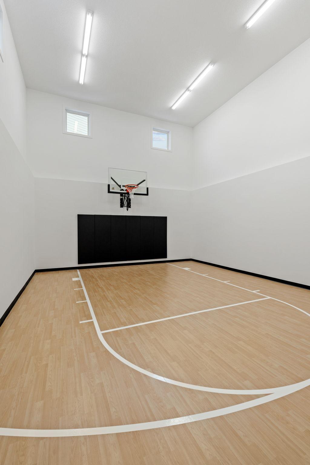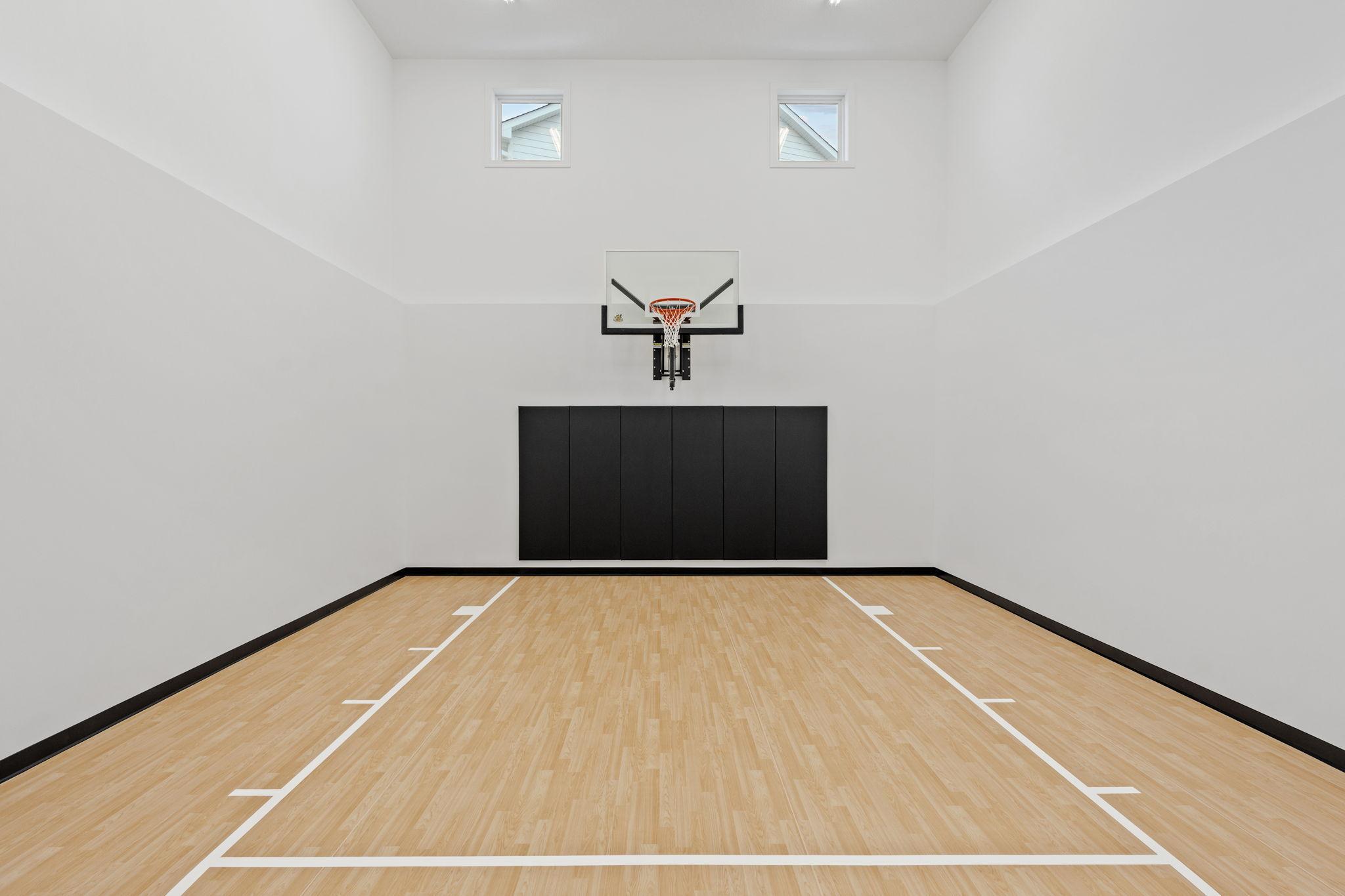 Thoughtfully designed where each level of the home incorporates the newest market trends to create something appealing for everyone! Highlights include desirable sink location not in the center island allows more counter space in the 3-sided kitchen. Massive walk-in working pantry perfect for prep and small appliances. Floor to ceiling windows in office and big rear foyer mud room with natural light and huge walk-in closet. Four car garage and oversized 22×26 expansive indoor Athletic Court provide lifestyle flexibility. Upper 20x17 bonus room gives extra space to play or lounge.