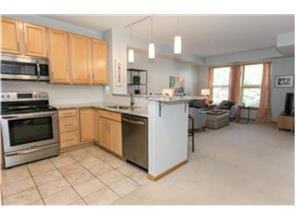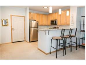 3rd floor River Station condo- Fresh creamy white paint throughout. Clean & well-maintained. Large master bedroom w/ walk-in closet & private full bath. 2nd bedroom has walk-in closet & can function well as home office. The open floor plan is perfect for entertaining w/ updated kitchen featuring stainless appliances, granite counters & subway tile back splash. Enjoy the outside balcony Outdoor over looking the mature green space. Only cats allowed. Garage stall #22. Great North Loop location. One level living at it's finest.