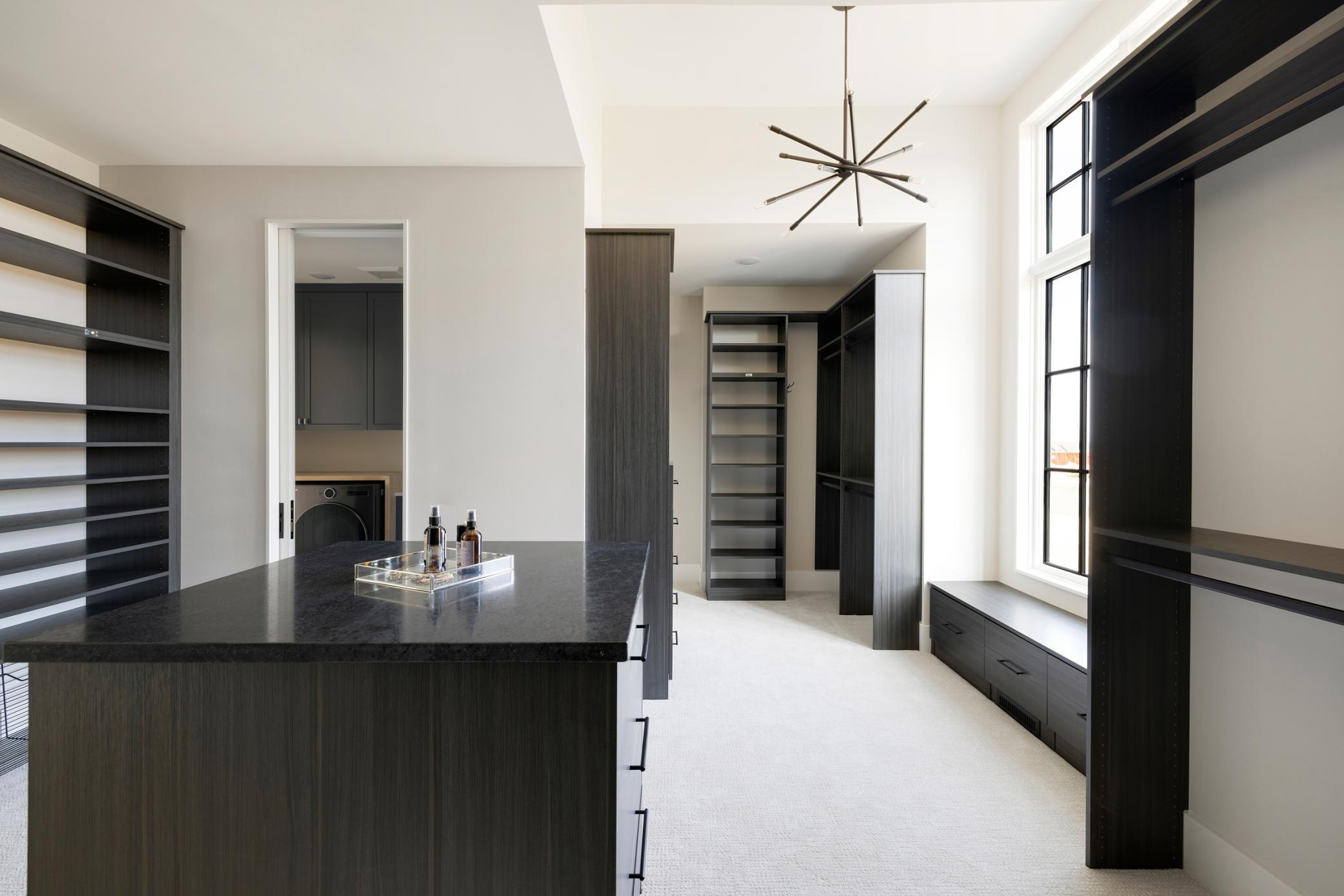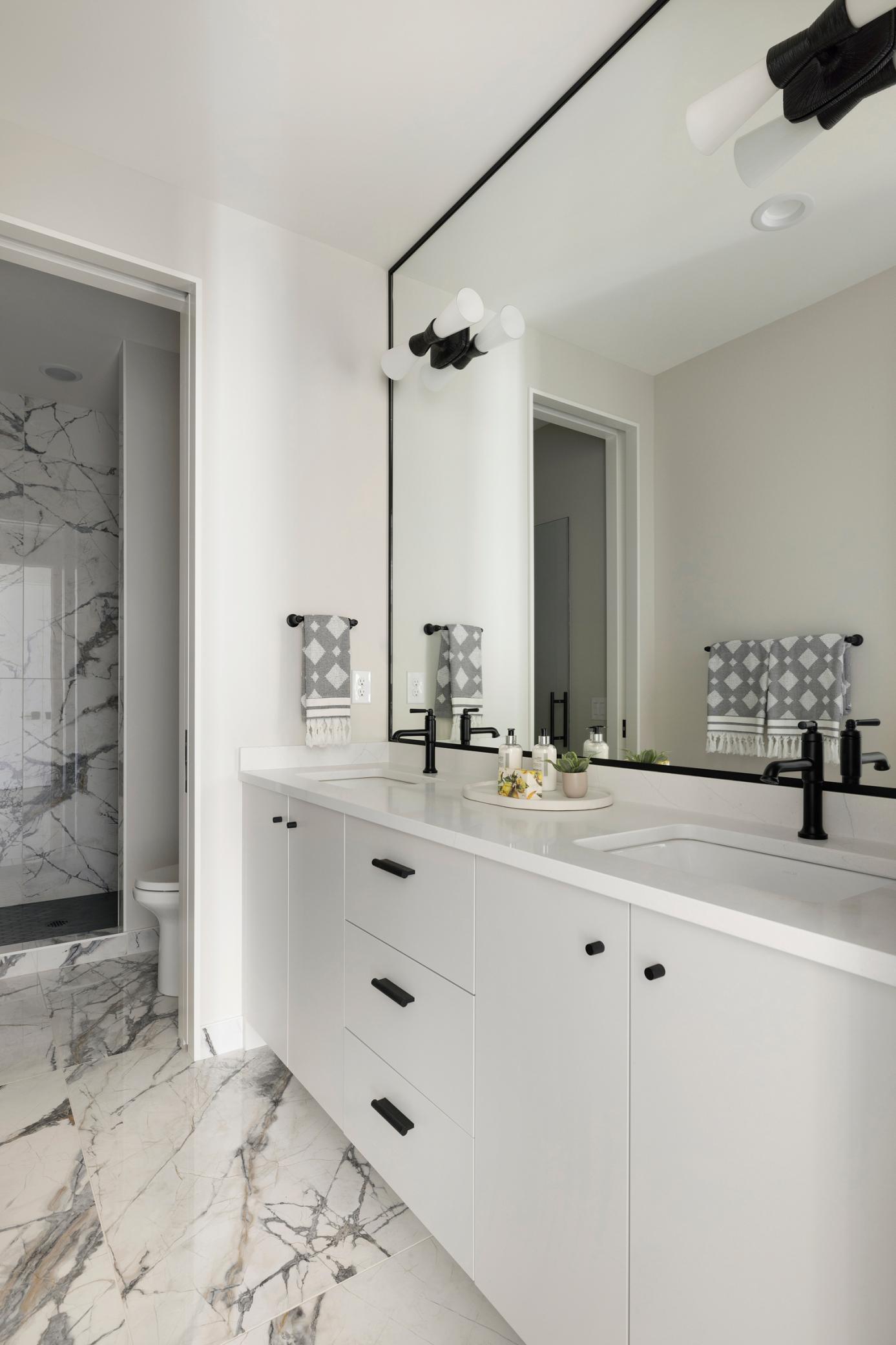 The chef’s kitchen is a culinary work of art, featuring Taj Mahal Quartz surfaces, a professional Thermador appliance suite, and a curated custom coffee station. Designed for effortless main-level living, the primary retreat offers a spa-inspired escape with intricate marble tiling, a freestanding soaking tub, and a vaulted custom walk-in closet.