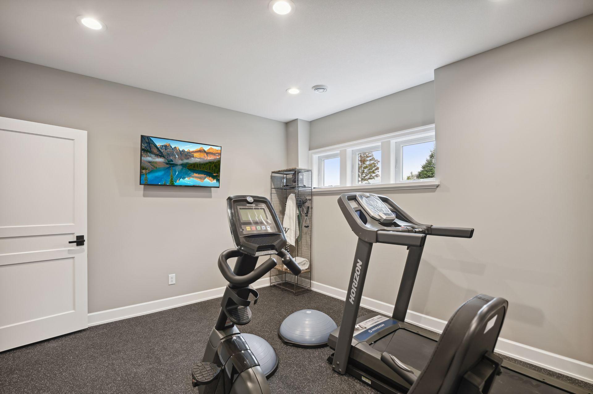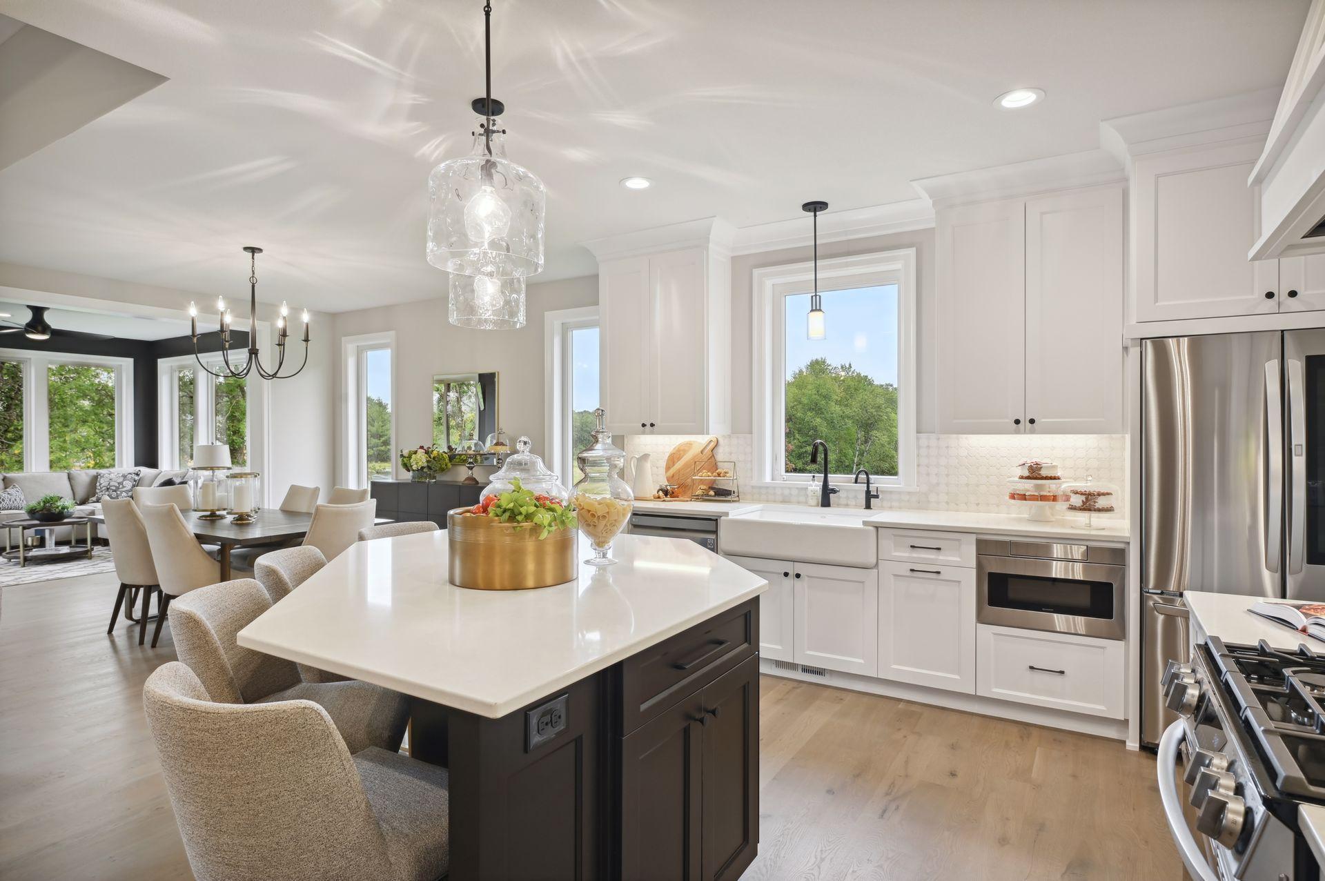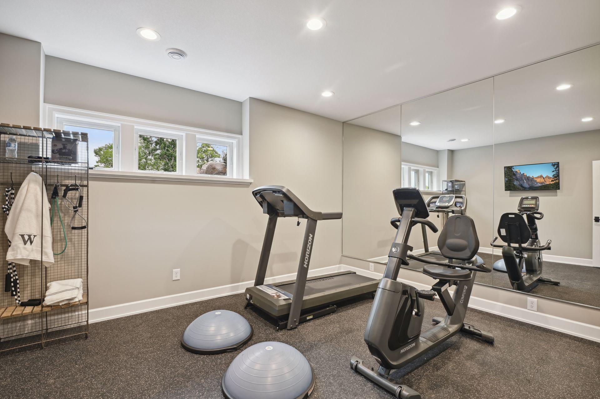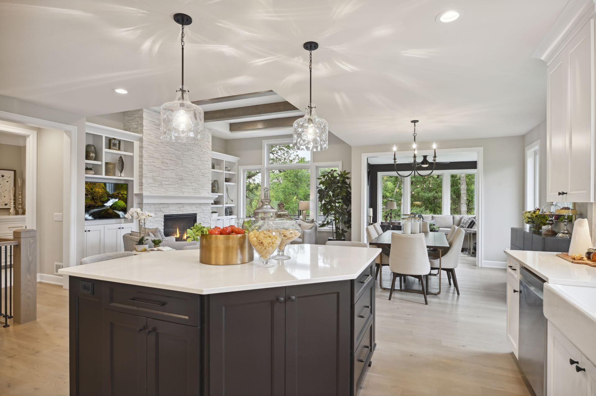 Welcome to 7 Pondview Trail, an exquisite one-story residence nestled in the tranquil North Oaks Neighborhood of Anderson Woods, expertly crafted by Wooddale Builders. This stunning property boasts an expansive total of 3,562 finished square feet encompassing three spacious bedrooms and three luxurious bathrooms. The highlight of this home is the opulent main floor primary suite, complete with a designer master closet and a private spa-like bath featuring a soaking tub, a large ceramic tiled shower, and heated flooring for ultimate comfort. The gourmet chef's kitchen is a culinary enthusiast's dream, showcasing custom enameled cabinetry, a stylish ceramic tile backsplash, a generous walk-in pantry, and elegant Quartz countertops that provide both beauty and functionality. The Great Room exudes sophistication with soaring 12-foot ceilings, built-in shelving, and an impressive stone fireplace, perfect for cozy gatherings. Additionally, the main floor includes a versatile den with bypass doors, enhancing the home's flexibility. Step into the stunning four-season porch, where walls of windows invite natural light and provide breathtaking views of the wooded backyard, seamlessly connecting indoor and outdoor living. The maintenance-free deck offers an ideal space for entertaining or relaxing in nature. The lower level is an entertainer's paradise, designed for leisure and enjoyment, featuring a well-appointed wet bar and a billiards/game area complemented by a built-in media center adorned with shiplap detail. This level also includes a dedicated exercise room, two additional bedrooms, and a stylish 3/4 bath accentuated by a large ceramic tile shower. Throughout the entire residence, incredible architectural elements enhance the sophisticated aesthetic, making this home a truly exceptional offering.