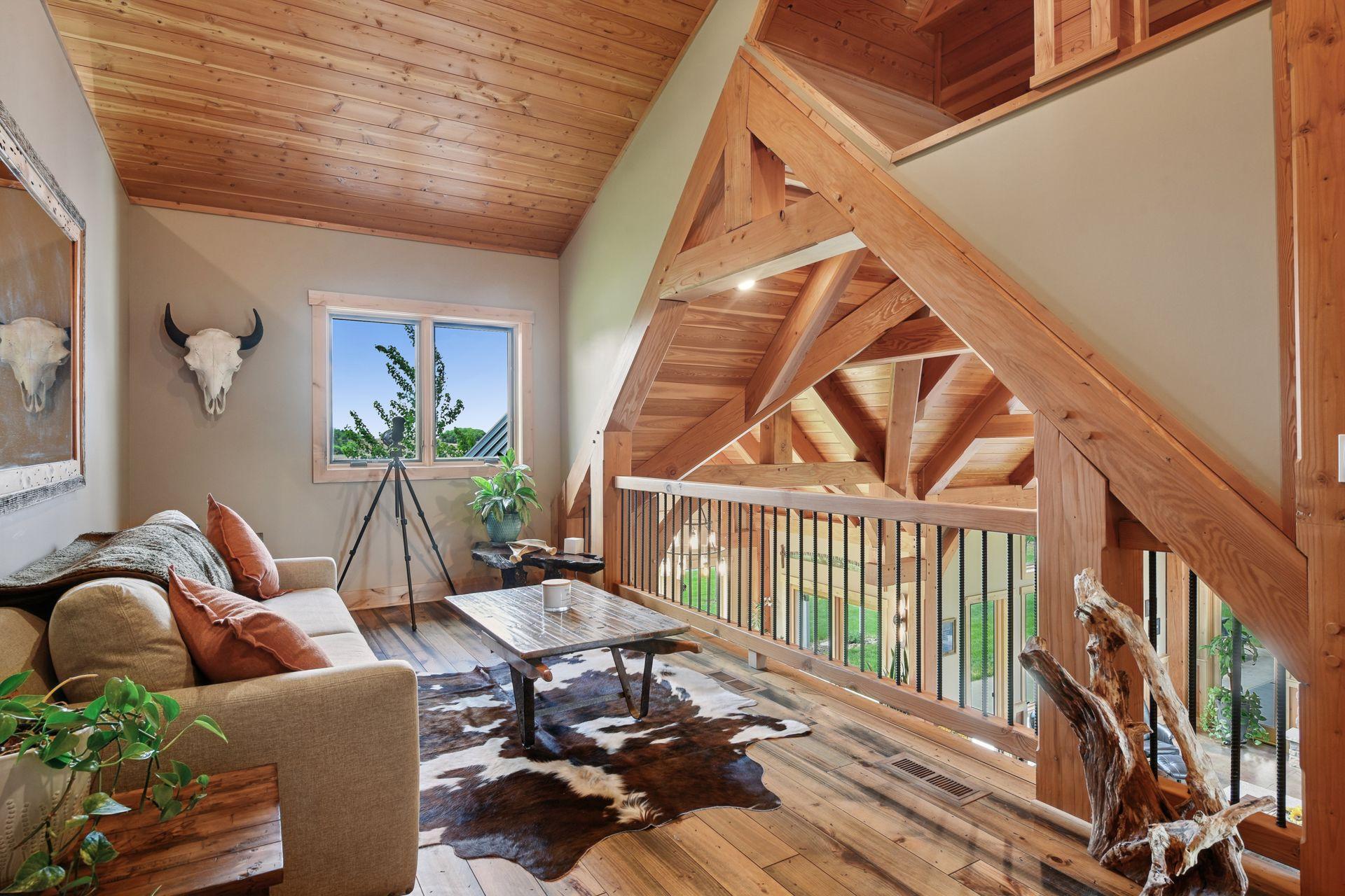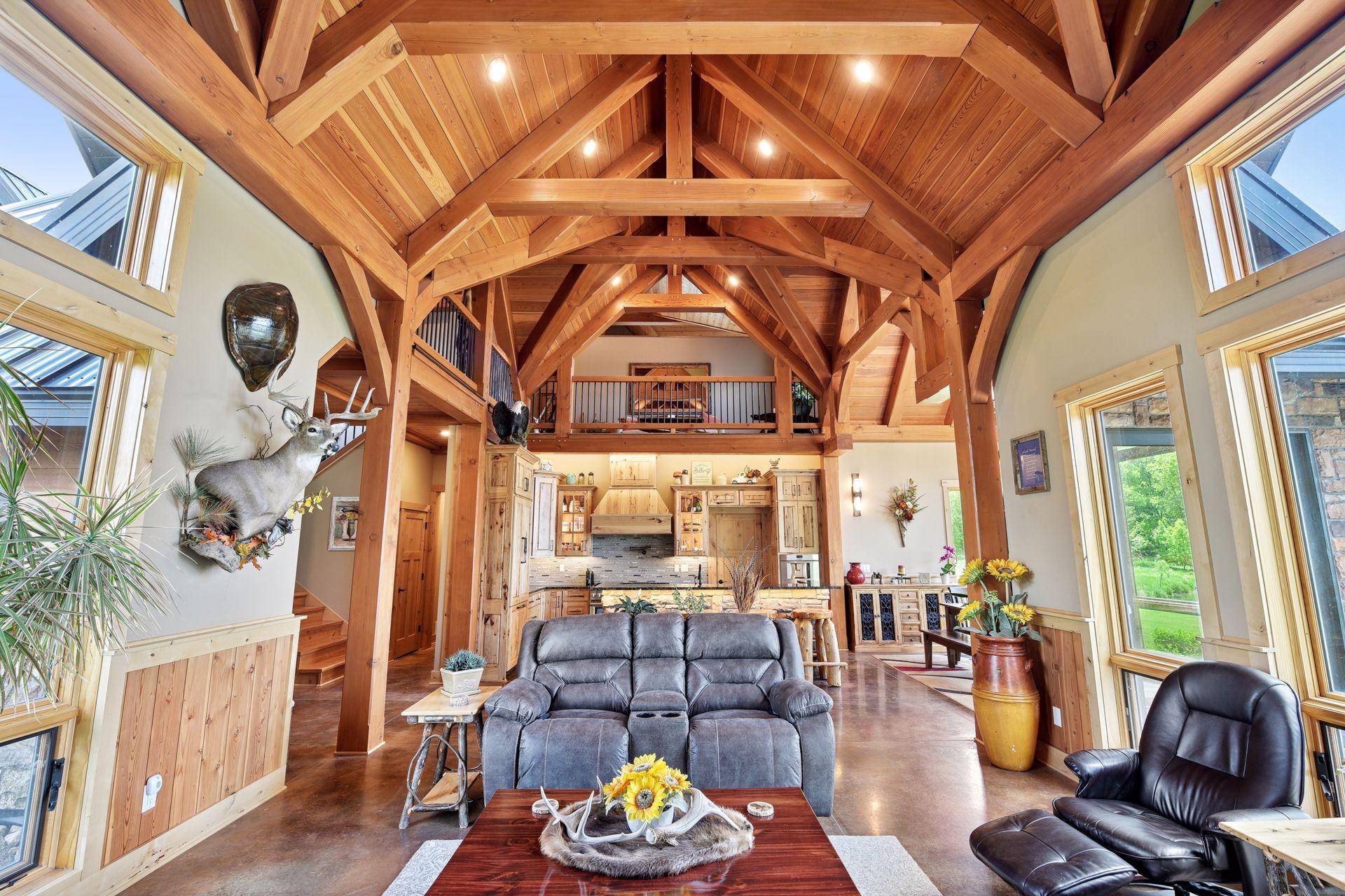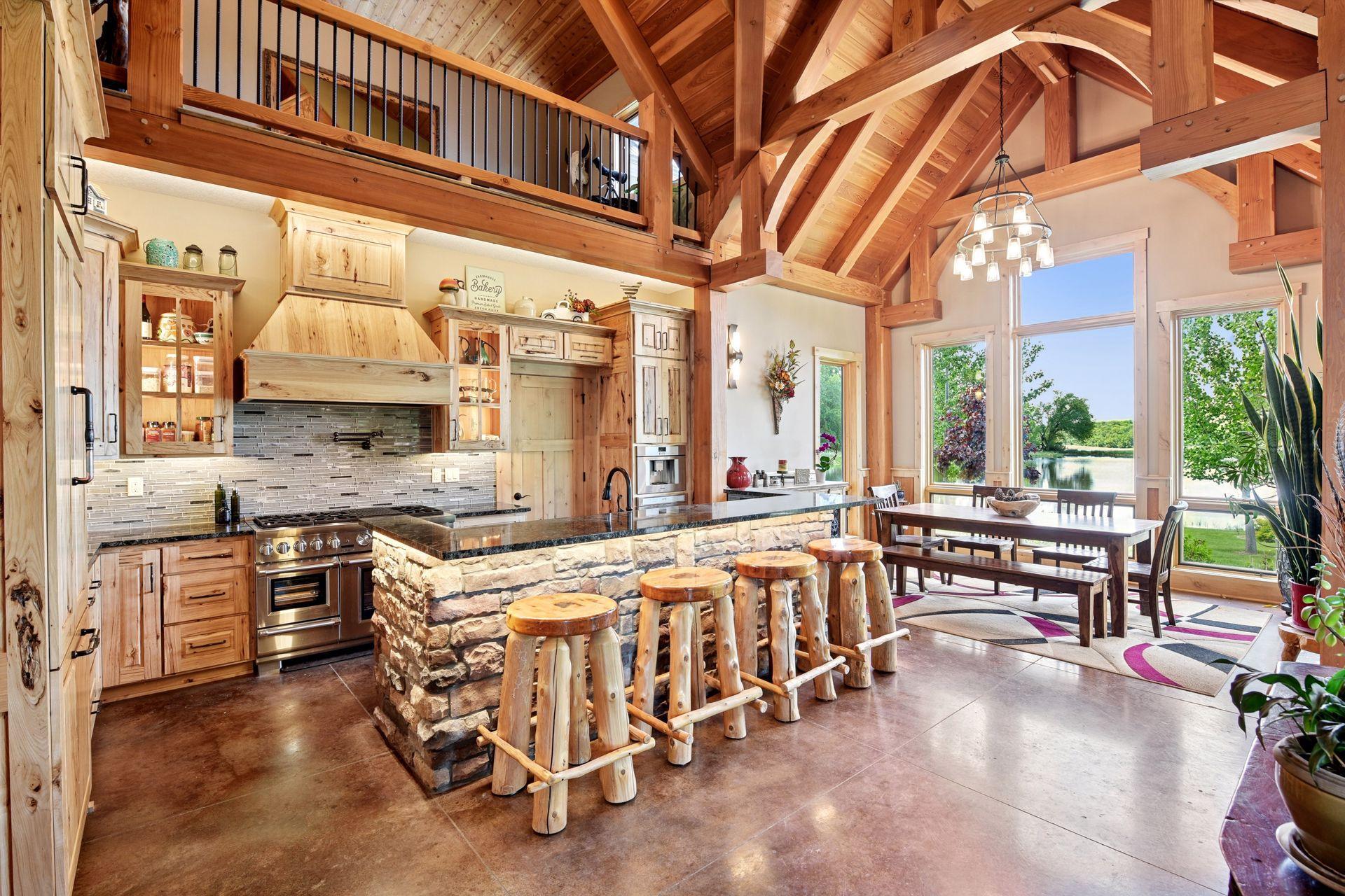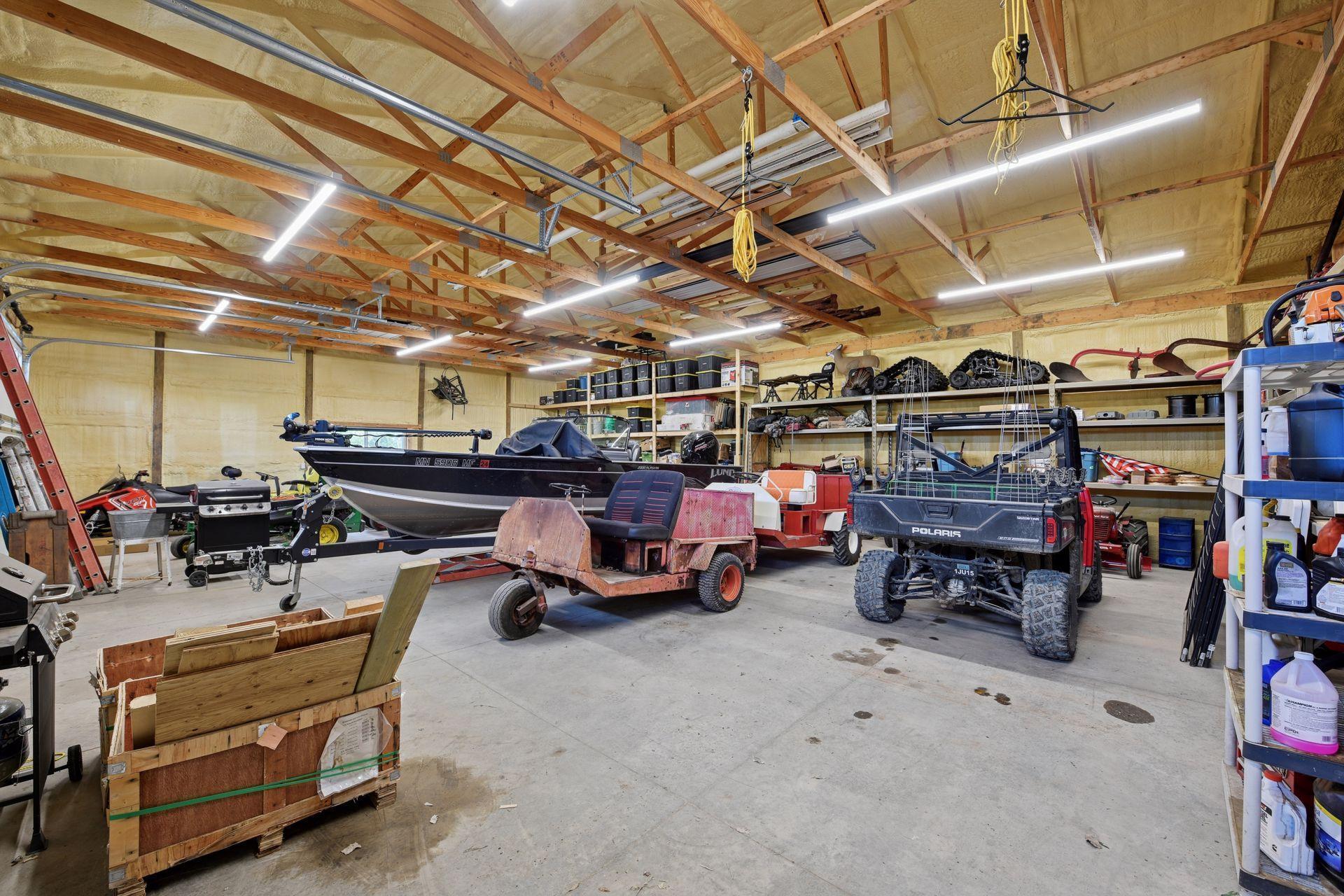 Welcome to Minnesota's Outdoor Paradise – Live Where Adventure Begins! This is THE property your wildlife and outdoor enthusiast has been waiting for! No expense was spared and no detail was missed to make this home truly spectacular. The home offers 3,393 finished sq ft, 4 bed, 3 bath and all living on main level. The high quality details include Wirsbo in floor heat, 18' vaulted ceilings, timber framed main structure with US Coastal grown Douglas Fir and a slab on grade home with ample storage. The high end kitchen has Rustic Hickory cabinetry, granite countertops, Thermador appliances, Miele dishwasher and a spacious working pantry. The main floor primary offers amazing water views, walk in shower with 5 shower heads and a spacious closet that connects to the laundry room. The upper level has a loft, 3 additional bedrooms, an office/bunk room and lots of closet storage space. Step outside to the covered patio to enjoy serene sunsets. Over 30 acres to hunt Pope and Young bucks and trophy turkeys, fish for 13"+ sized crappies in the aerated pond. The huge 36' x 70' pole building and 40'x56' main garage make up the climate controlled pole building with 8 stalls (11 total with 3 car attached to house) with RV parking, boat, workshop, mezzanine area, etc. Don't miss your chance to own this rare Minnesota gem—where every season brings a new adventure right to your doorstep.