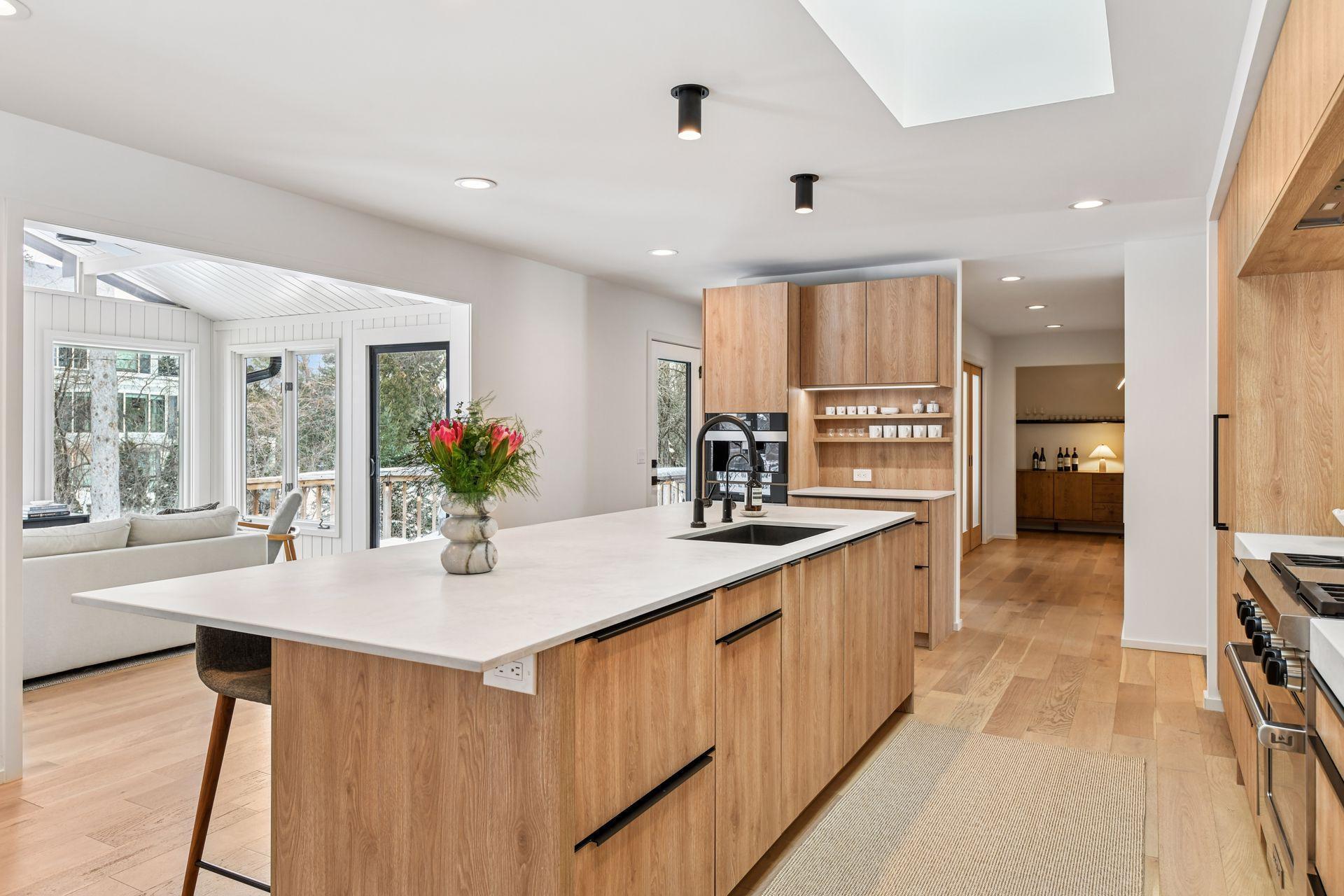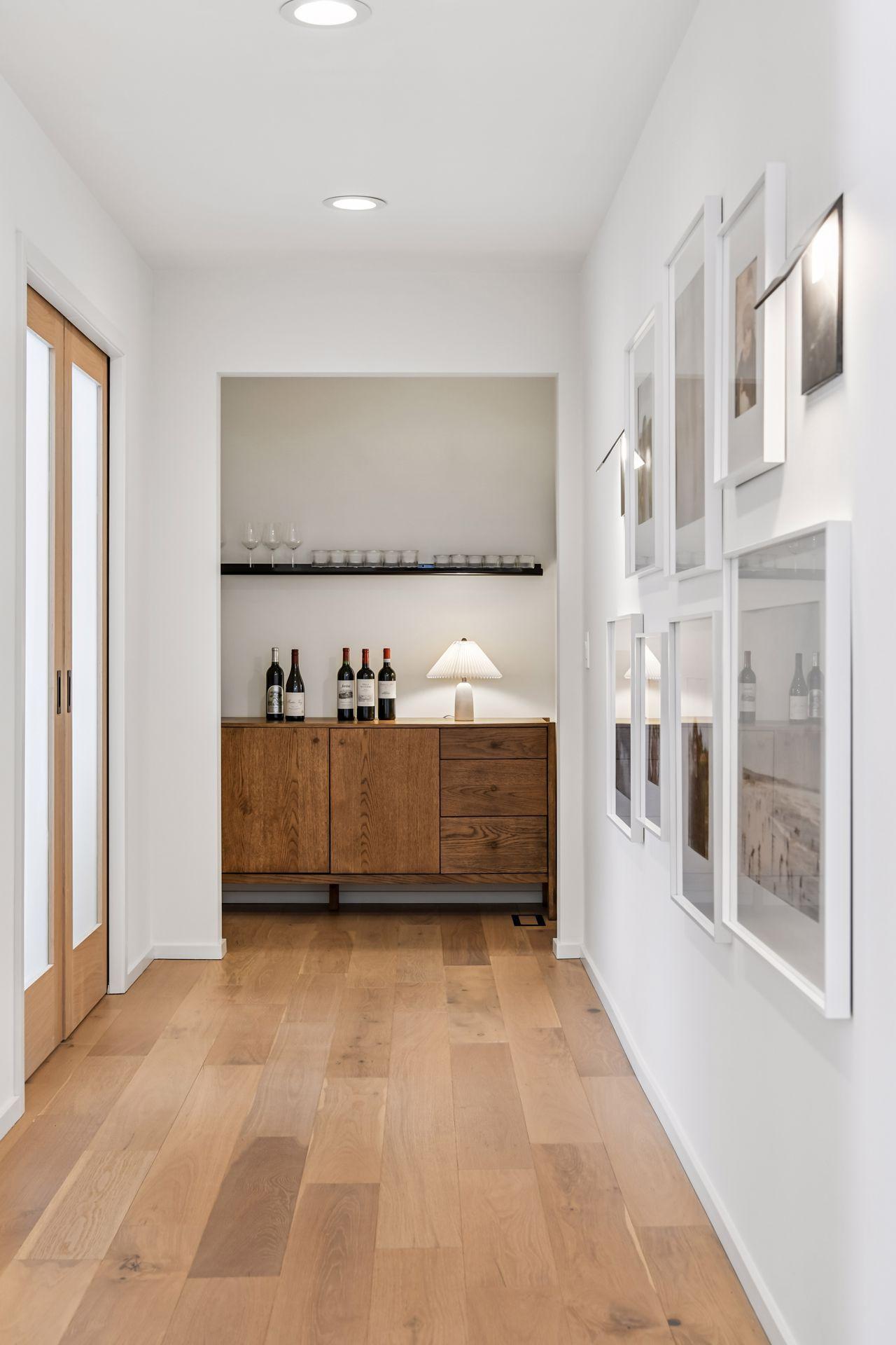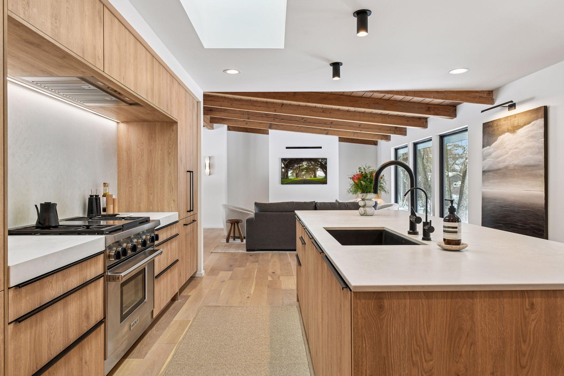Modern European design meets thoughtful functionality in this light-filled, carefully crafted home. Every square foot has been intentionally maximized to create purposeful living spaces with high-end finishes throughout. Premium Leicht cabinetry, sleek quartz countertops, and engineered oak flooring elevate the home's refined aesthetic. True one-level living with seamless flow between kitchen, dining, living, and primary bedroom areas. Two additional flex rooms offer versatile options for office, hobby space, or guest accommodations. Warm, inviting spaces designed for effortless daily living. New LG stacked washer to be installed next week, garage to be re-painted prior to closing, and custom window treatments being installed within the next two weeks.