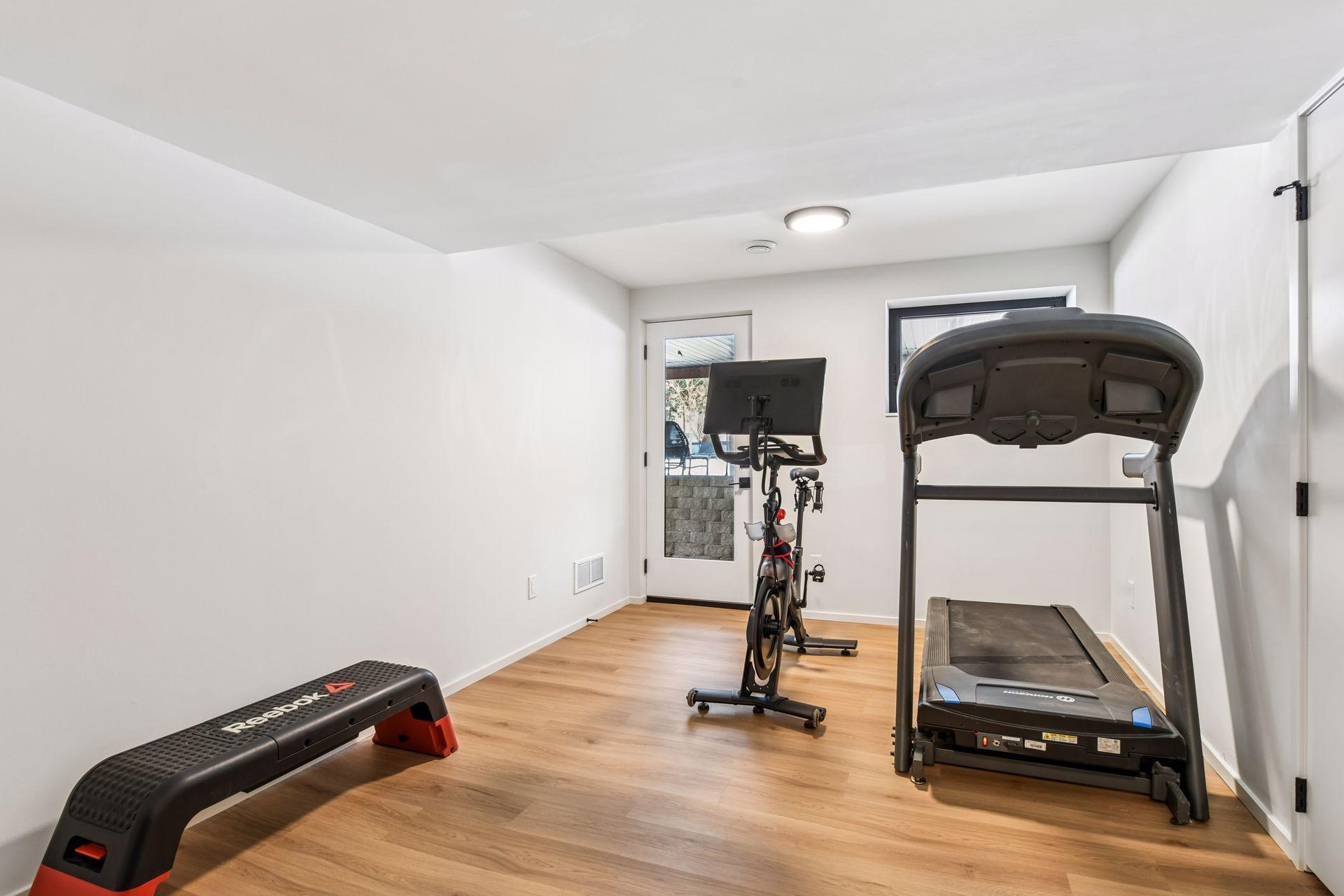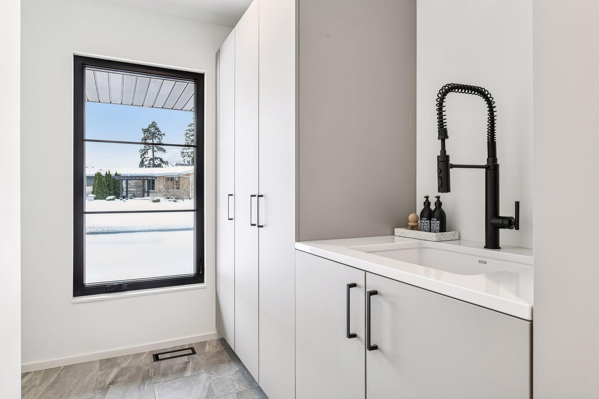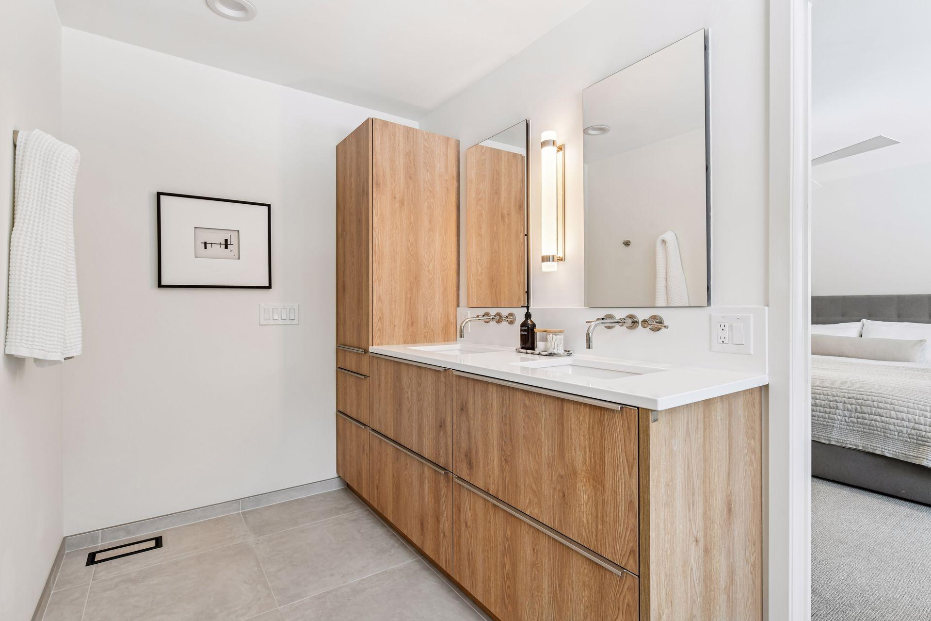 Modern European design meets thoughtful functionality in this light-filled, carefully crafted home. Every square foot has been intentionally maximized to create purposeful living spaces with high-end finishes throughout. Premium Leicht cabinetry, sleek quartz countertops, and engineered oak flooring elevate the home's refined aesthetic. True one-level living with seamless flow between kitchen, dining, living, and primary bedroom areas. Two additional flex rooms offer versatile options for office, hobby space, or guest accommodations. Warm, inviting spaces designed for effortless daily living. New LG stacked washer to be installed next week, garage to be re-painted prior to closing, and custom window treatments being installed within the next two weeks.