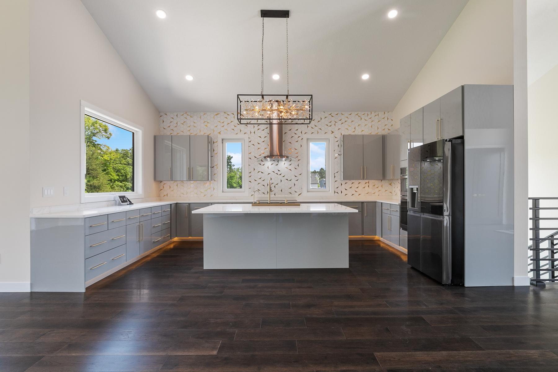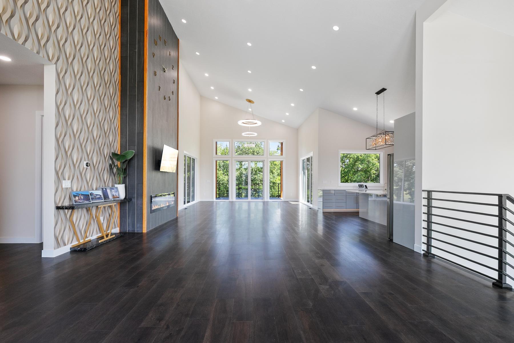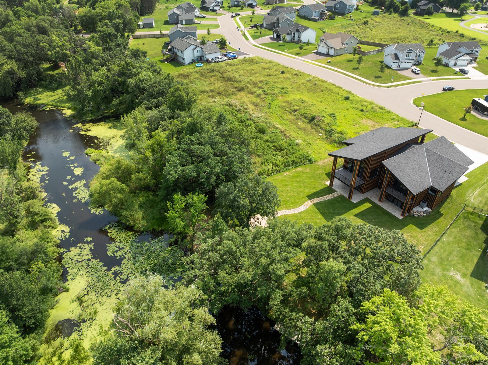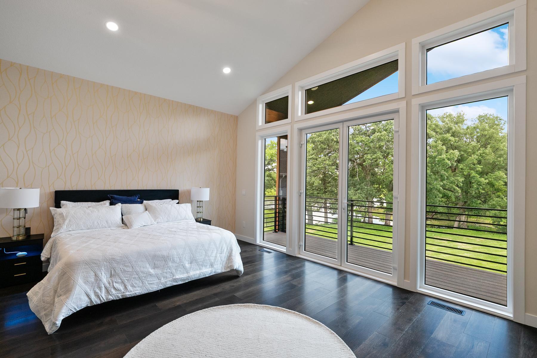 Smart Lakeside Living - This 0.99-acre waterfront property blends classic European-inspired design with modern smart-home innovation. Set along Upper & Lower Orono Lakes, the property offers direct water access, peaceful views of the surrounding nature, and a private dock, all framed by a professionally landscaped yard ideal for both entertaining and quiet relaxation. The main-floor primary suite serves as a luxurious retreat with a floating LED-lit bed, built-in security shelving, a custom walk-in closet, and private deck access. The lower level adds a second primary suite, additional bedrooms with en-suite tiled baths, patio doors overlooking the lake, heated floors, 9-foot ceilings, a second laundry option, and a discreet security room. A spacious family room with an electric fireplace and media zone completes the space. The interior showcases soaring 10–22 ft ceilings, abundant natural light, and open-concept living spaces with sweeping lake views. The great room and dining area flow seamlessly to the outdoor deck, while the chef’s kitchen offers stainless steel appliances, an island, and generous space for gathering. Inside, the home is equipped with advanced technology throughout—55 smart lighting zones, dual-zone HVAC, continuous air-freshening, smart irrigation and locks, a high-efficiency 9 GPM water heater, and a comprehensive security system with eight HD cameras and a Google Nest doorbell. Built on a durable ICF foundation, the exterior features tile-wrapped columns, oak-finished beams, Hardie siding with natural aspen trim, and a heated, finished three-car garage with 11-foot ceilings and smart openers. This home offers more than beauty and function—it delivers a peaceful, elevated lakeside lifestyle where elegance, technology, and comfort come together effortlessly. A rare turnkey opportunity. Schedule your showing today.