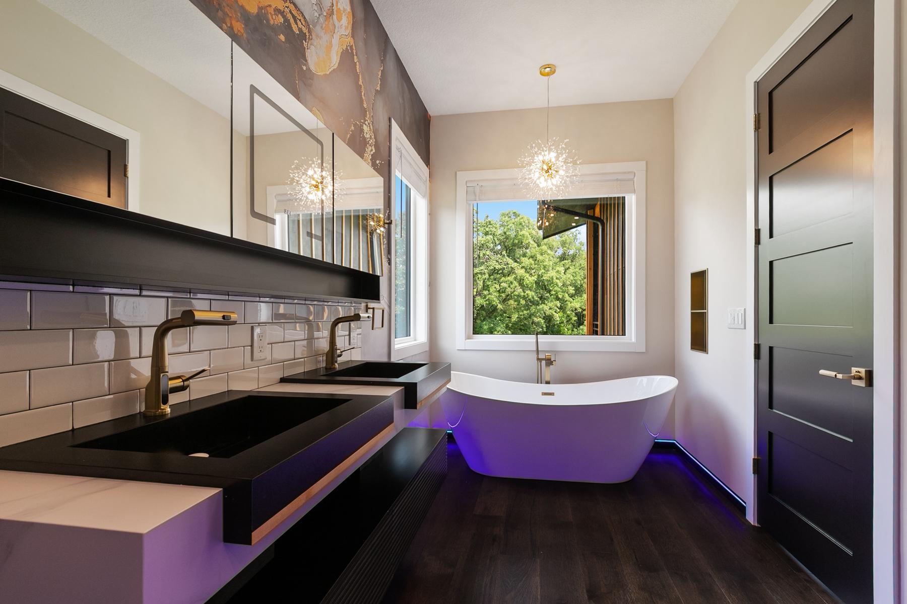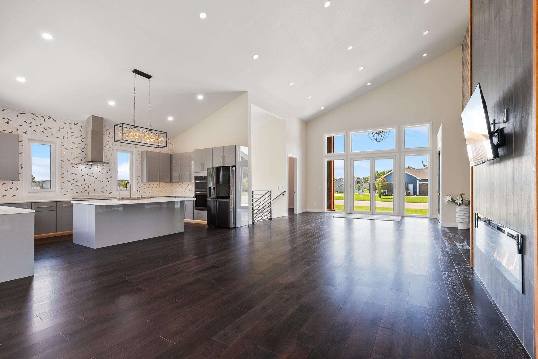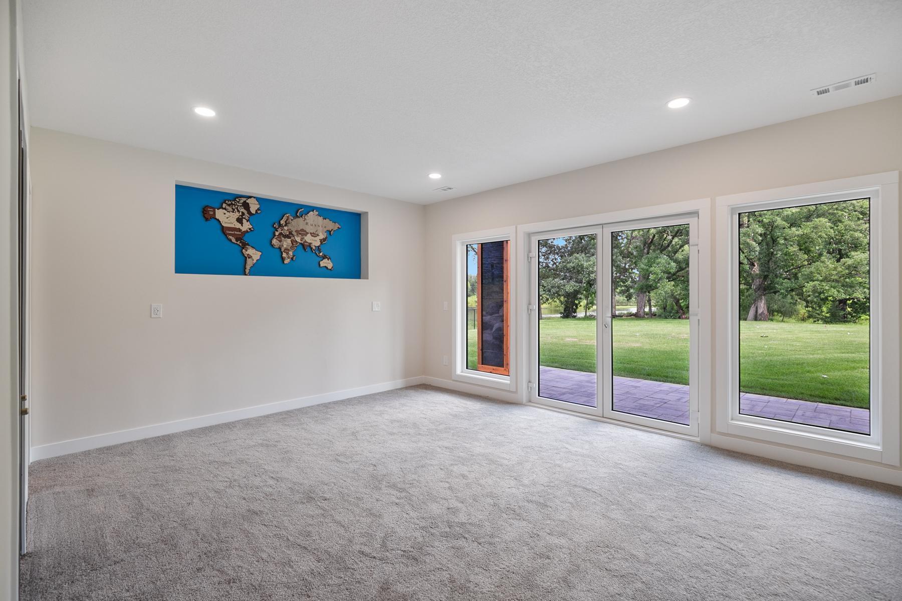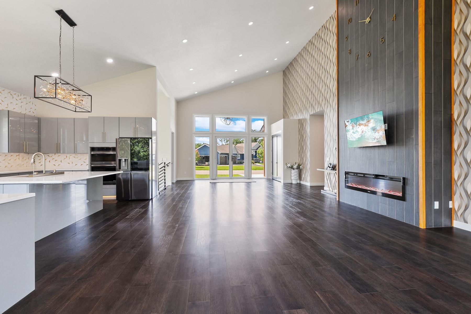 Smart Lakeside Living - This 0.99-acre waterfront property blends classic European-inspired design with modern smart-home innovation. Set along Upper & Lower Orono Lakes, the property offers direct water access, peaceful views of the surrounding nature, and a private dock, all framed by a professionally landscaped yard ideal for both entertaining and quiet relaxation. The main-floor primary suite serves as a luxurious retreat with a floating LED-lit bed, built-in security shelving, a custom walk-in closet, and private deck access. The lower level adds a second primary suite, additional bedrooms with en-suite tiled baths, patio doors overlooking the lake, heated floors, 9-foot ceilings, a second laundry option, and a discreet security room. A spacious family room with an electric fireplace and media zone completes the space. The interior showcases soaring 10–22 ft ceilings, abundant natural light, and open-concept living spaces with sweeping lake views. The great room and dining area flow seamlessly to the outdoor deck, while the chef’s kitchen offers stainless steel appliances, an island, and generous space for gathering. Inside, the home is equipped with advanced technology throughout—55 smart lighting zones, dual-zone HVAC, continuous air-freshening, smart irrigation and locks, a high-efficiency 9 GPM water heater, and a comprehensive security system with eight HD cameras and a Google Nest doorbell. Built on a durable ICF foundation, the exterior features tile-wrapped columns, oak-finished beams, Hardie siding with natural aspen trim, and a heated, finished three-car garage with 11-foot ceilings and smart openers. This home offers more than beauty and function—it delivers a peaceful, elevated lakeside lifestyle where elegance, technology, and comfort come together effortlessly. A rare turnkey opportunity. Schedule your showing today.
