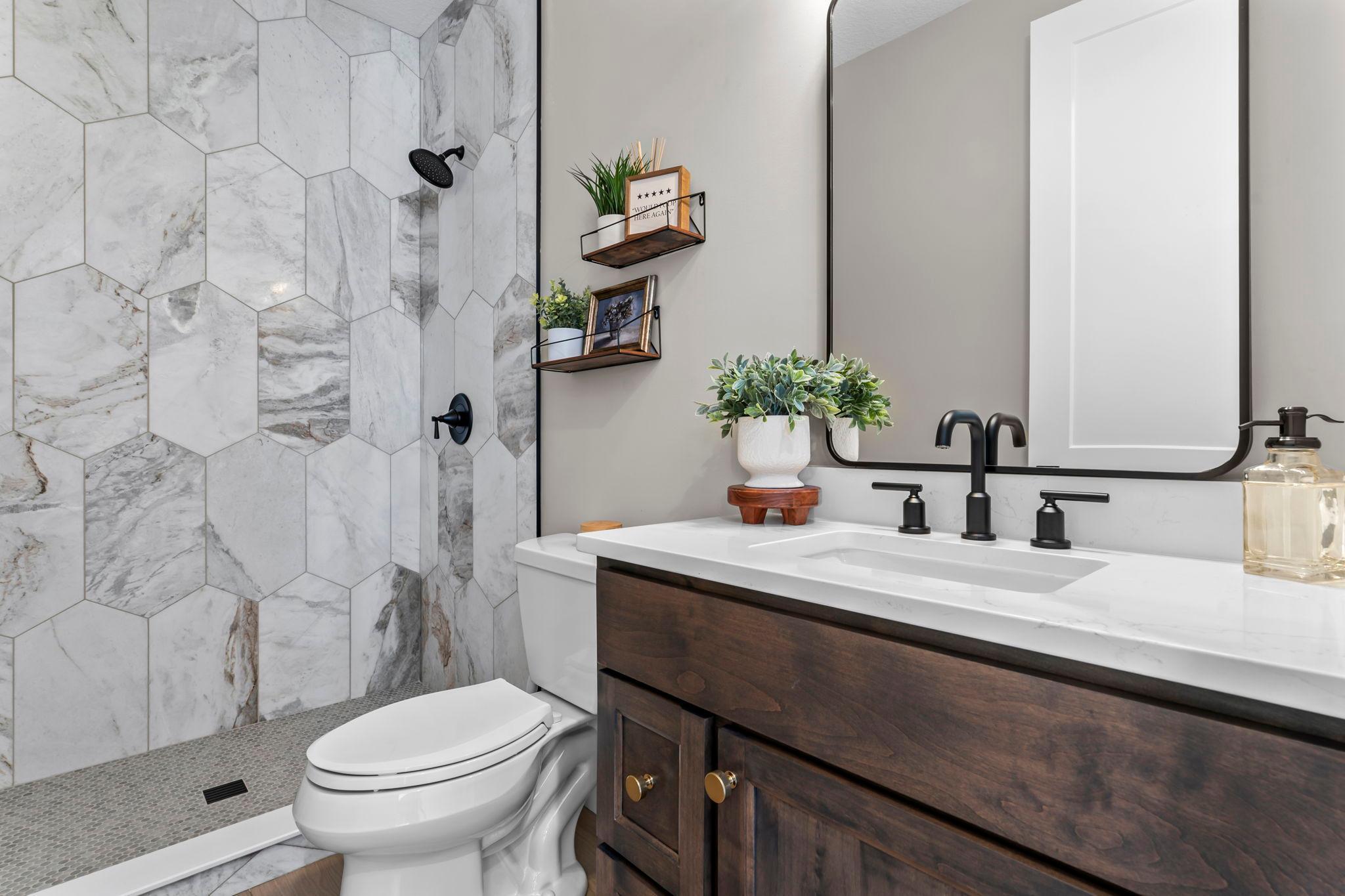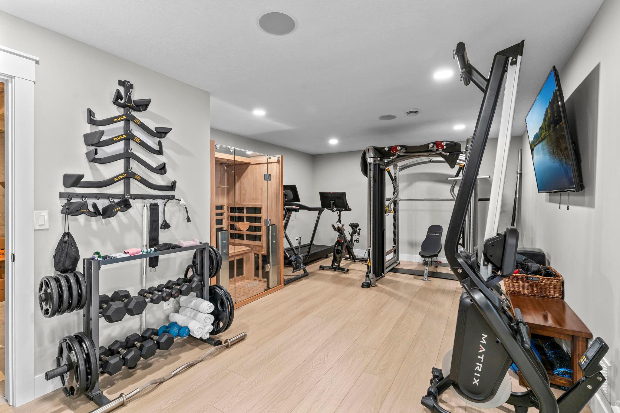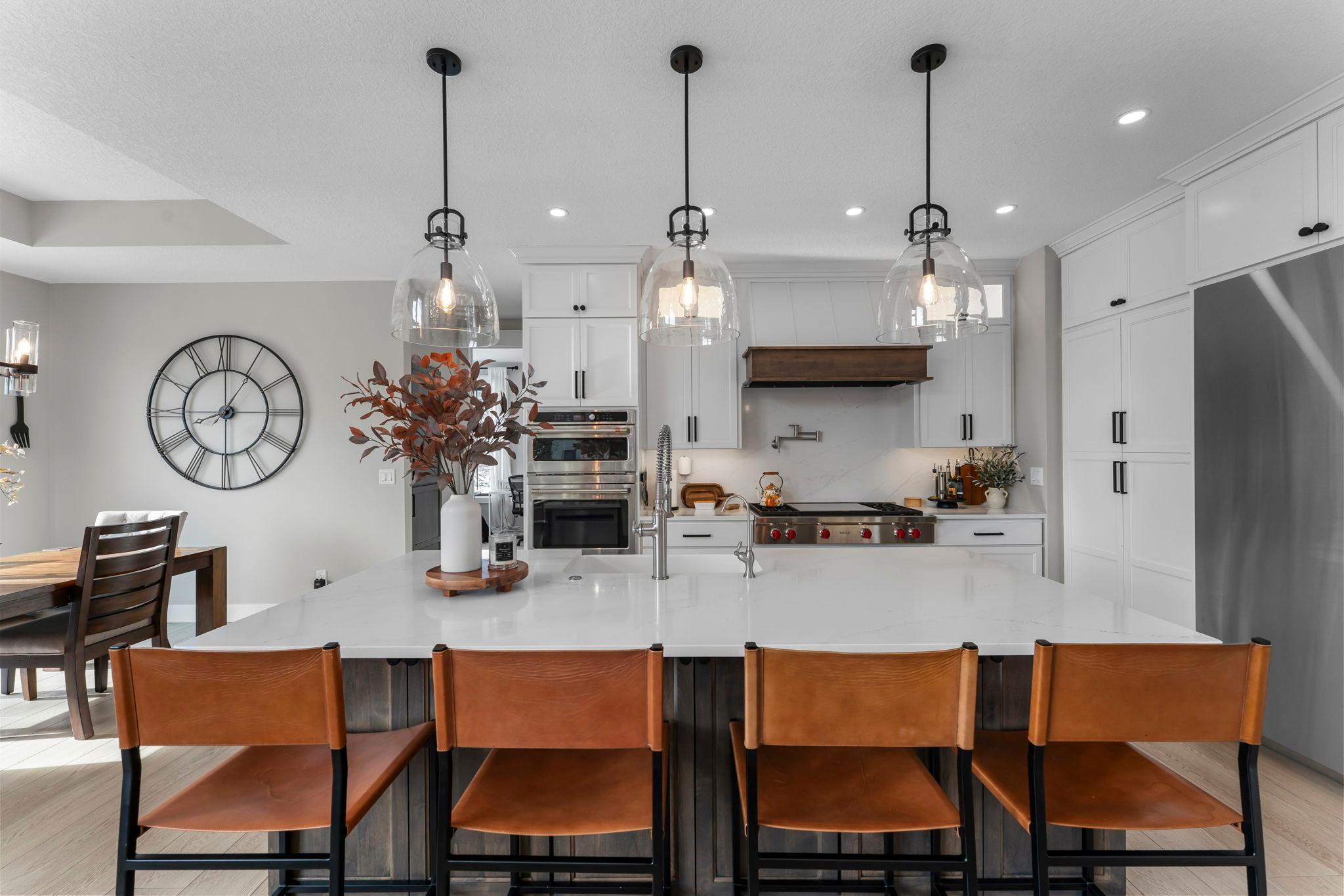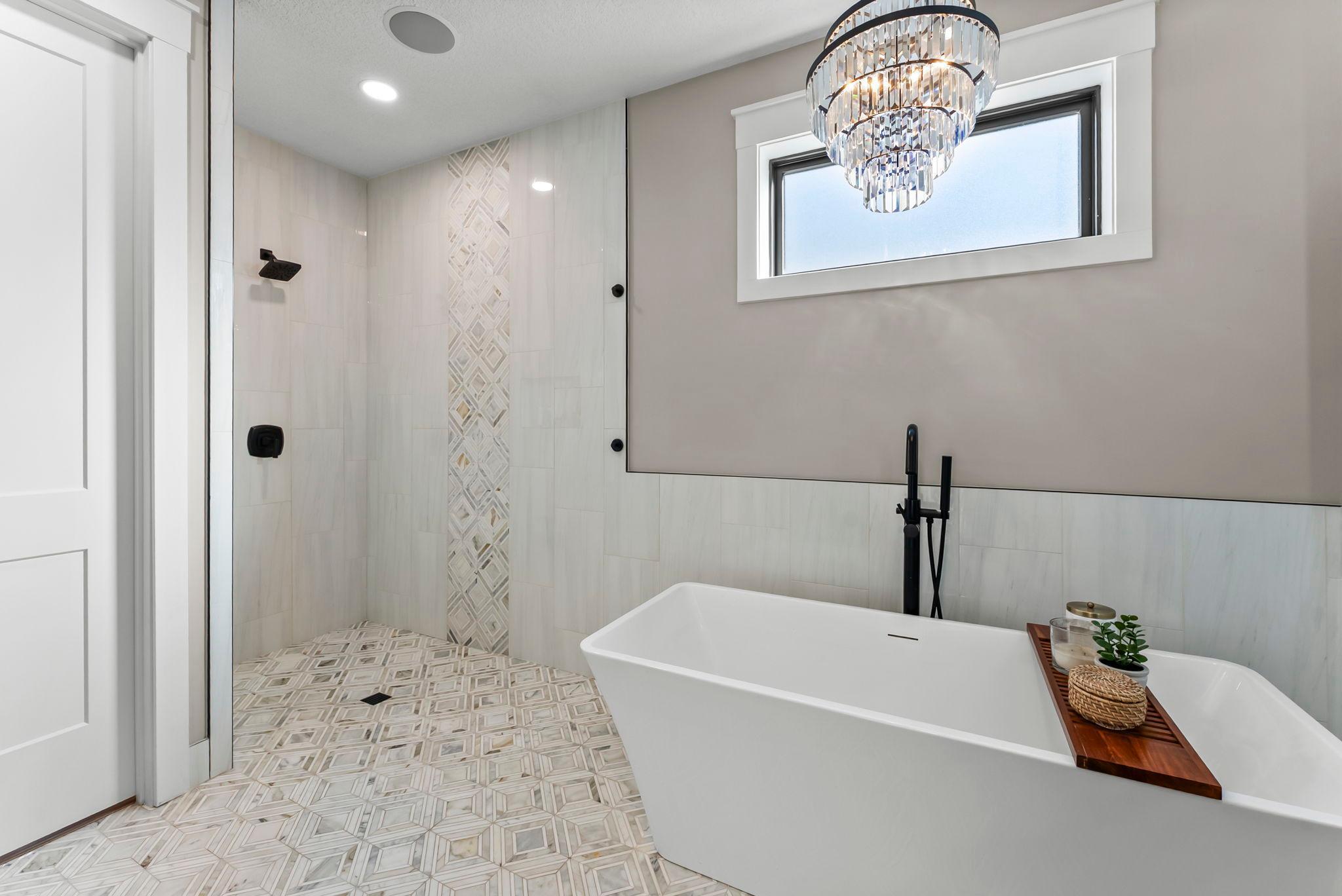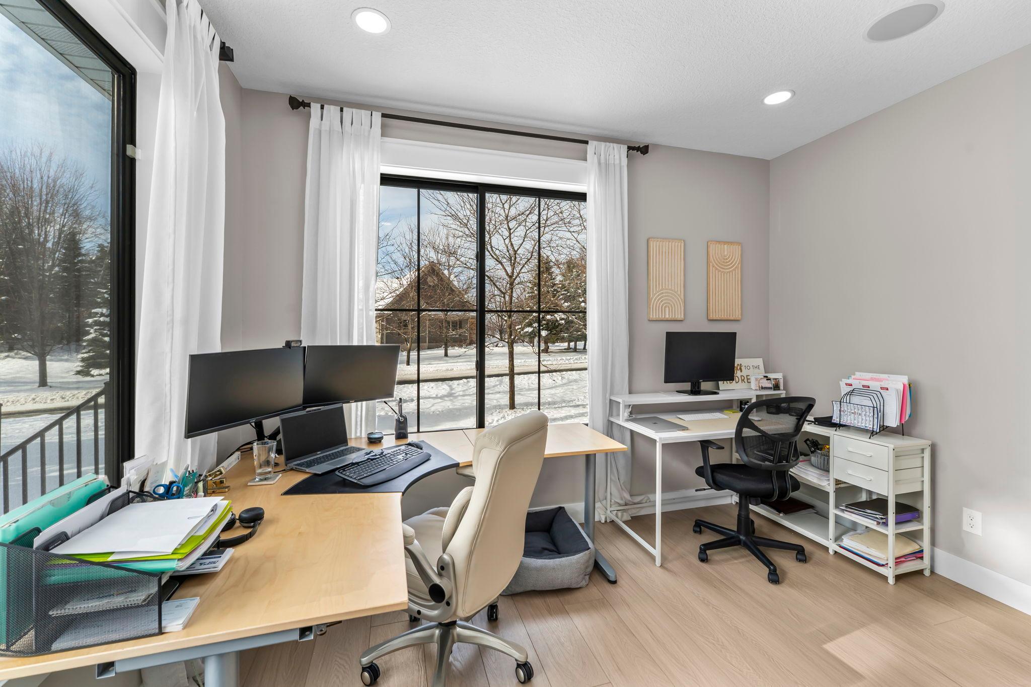 This massive luxury rambler immediately impresses with an oversized 4-car garage offering over 1,200 square feet — large enough for vehicles, storage, a workshop, and all your recreational toys. Inside, the home features a spectacular chef’s kitchen designed for entertaining, along with five spacious bedrooms and four beautifully finished bathrooms, including three conveniently located on the main level for true one-level living. Seller will consider a contract for deed Welcome to Forest Hills Farms, the premier executive neighborhood on Forest Lake. This exceptional one-story home offers an extremely rare layout featuring full primary suites on both the main level and the lower level. Each suite includes a private ensuite bathroom, walk-in closet, and its own dedicated laundry area, making the home ideal for multigenerational living or extended guests while still maintaining complete privacy and comfort. The main level features soaring 10-foot ceilings and a dramatic open layout leading into a spectacular great room with an expansive window wall overlooking an incredibly private backyard. A beautiful fireplace anchors the space while natural light pours through oversized windows. The main-level primary suite includes a spa-caliber ensuite featuring a zero-entry tiled shower and a massive soaking tub. The chef’s kitchen is truly extraordinary, offering commercial-grade amenities including a flat-top grill with hood, commercial refrigerator and freezer, wine fridge, pot filler, and an incredible hidden butler’s pantry disguised as cabinetry. The pantry features its own sink, prep area, and extensive storage to keep the kitchen functional and clutter-free. All four bathrooms feature floor-to-ceiling custom tile showers and commercial power-flush toilets. Comfort is unmatched with seven thermostats controlling forced air and extensive in-floor radiant heat. The entire lower level and the oversized garage are fully heated with in-floor radiant heat powered by a newer boiler, allowing the radiant system to warm the home independently of forced air when desired. The lower level is enormous — ideal for entertaining large gatherings — and includes a second kitchen or bar area, a fitness room with its own thermostat, and an incredible media wall featuring three 90-inch televisions. This entire level enjoys full in-floor radiant heat for year-round comfort. Bedrooms throughout the home feature oversized 6' x 6' Andersen windows that flood the space with natural light. A Dayton Audio whole-house sound system provides independently controlled speakers throughout major living areas, all easily managed from your phone. The exterior features LP SmartSide siding and beautifully stamped and colored concrete that wraps the entire home for a clean, low-maintenance finish. Additional highlights include a concrete driveway, in-ground sprinkler system, massive 9' x 8' garage doors with direct-drive openers, a large Trex maintenance-free deck, and a professionally designed stone retaining wall. The property also includes deeded access to Forest Lake, offering lake privileges within one of the area’s most sought-after neighborhoods. This rare luxury rambler combines three main-level bedrooms, dual primary suites, commercial-grade finishes, extensive in-floor heating, and countless high-end features that would cost hundreds of thousands more to replicate today. A truly exceptional home in one of Forest Lake’s most prestigious communities.