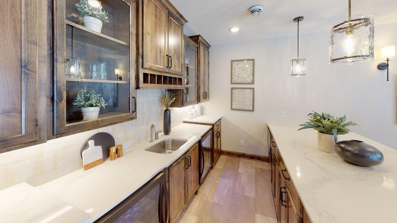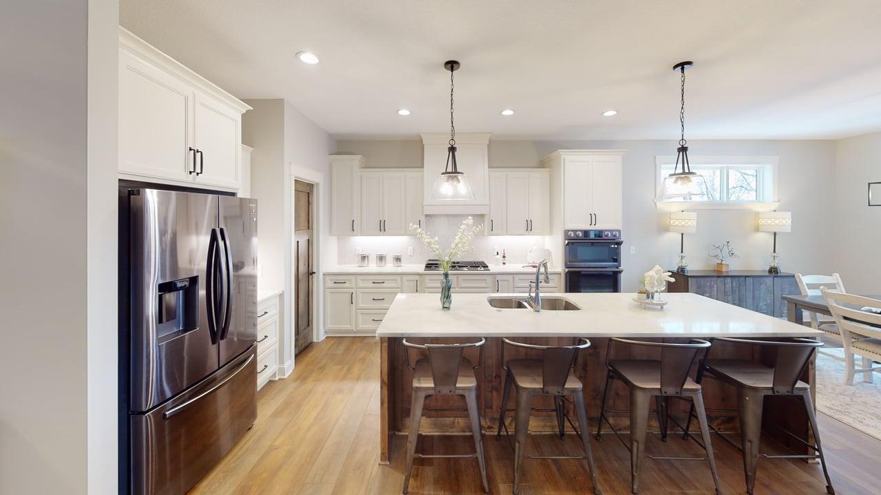 Welcome to "Rustic Elegance," a stunning custom home to be craftfully built by Guidance Homes, nestled in the tranquil 'Tii Gavo' community on the shores of Big Marine Lake in charming Scandia, MN. Still time to make your own selections or plan changes! This luxurious residence offers over 3,700 finished sq. ft. of meticulously designed living space, combining rustic charm with modern elegance. The heart of the home features a gourmet kitchen with walk-in pantry and high-end finishes, perfect for entertaining, while the spacious wood-paneled vaulted sunroom and deck offer breathtaking views of woods and water. The main floor also includes a beautiful living room with stone wrapped fireplace, beamed ceilings and a wall of windows, dining room, and 2nd bedroom or den/office. The luxury owners suite provides a peaceful retreat with its spa-like bath and premium touches throughout. The expansive lower level is an entertainer's dream with a complete with an elegant bar area and family room for relaxation and recreation. Oversized insulated, finished, and heated 3+ car garage provides ample room for vehicles and lake toys alike. This to be built home is situated on a picturesque 1+acre lot with towering oaks and pines bordered by nature-filled woods and wetlands. Only 3 lots remaining! Check out our new website for additional information. Other lots and plans available from $900K.