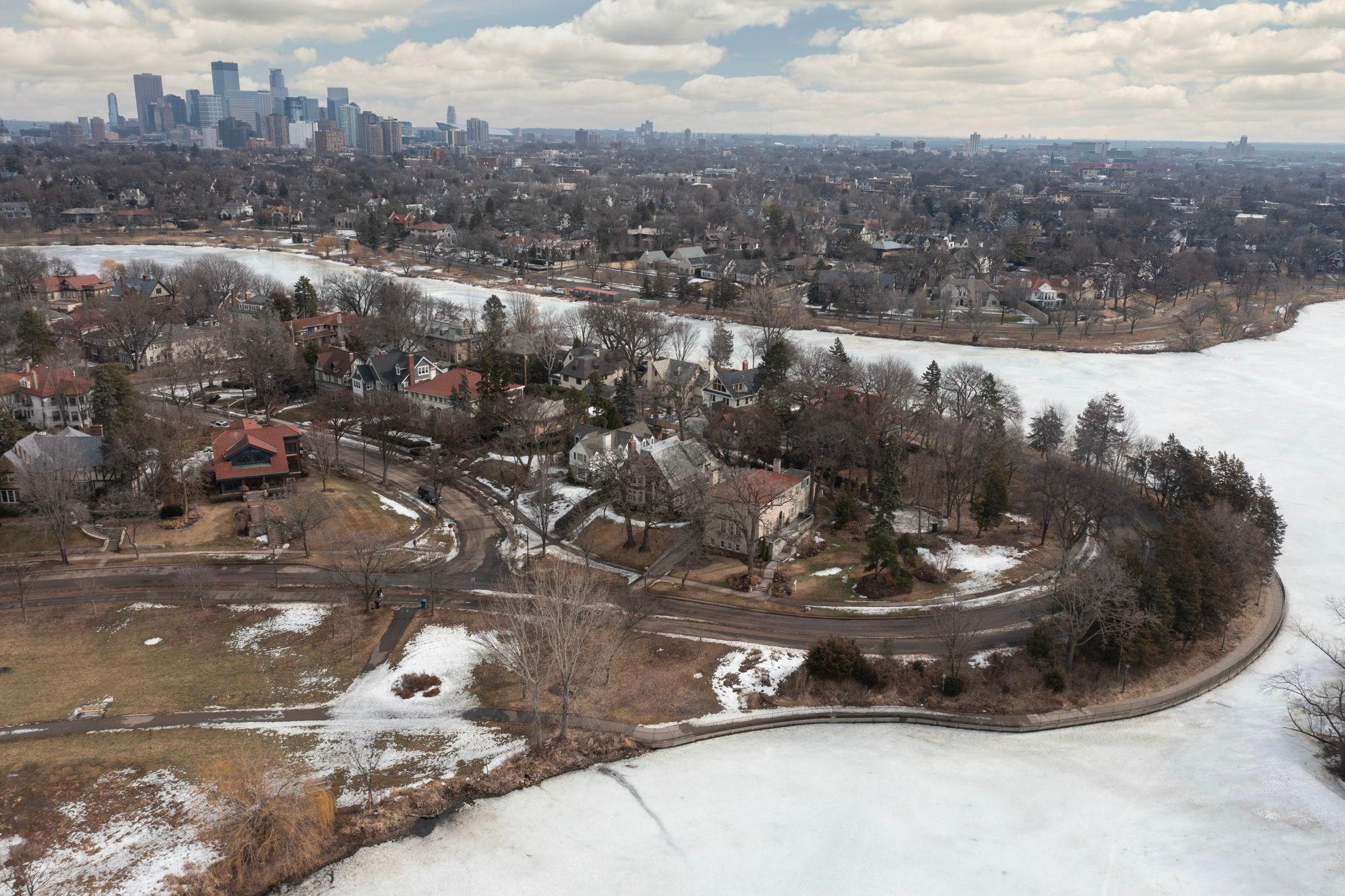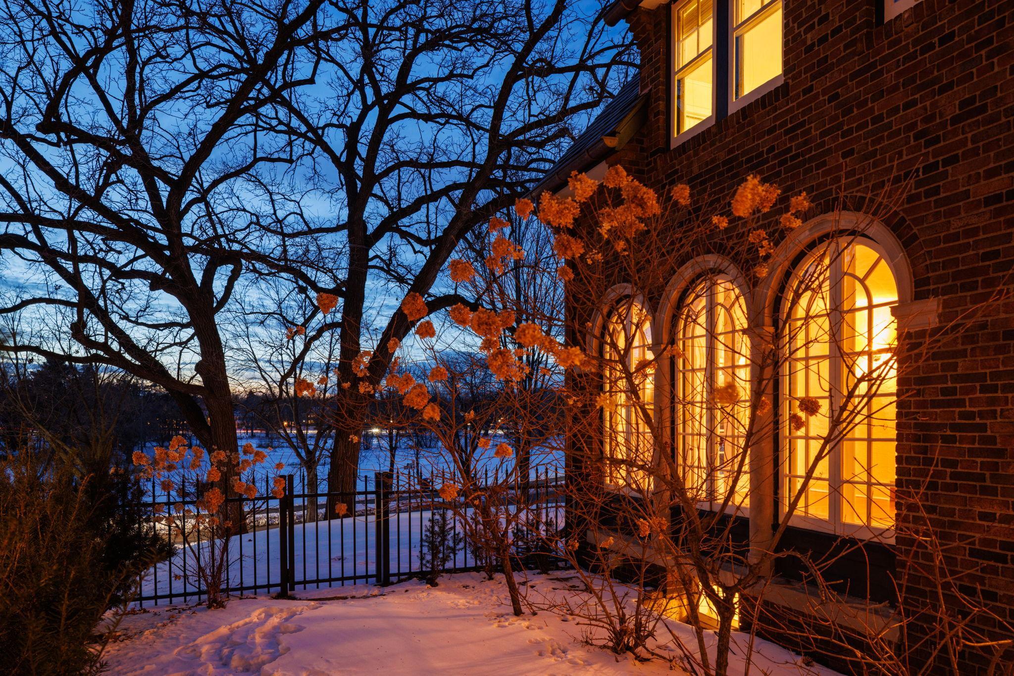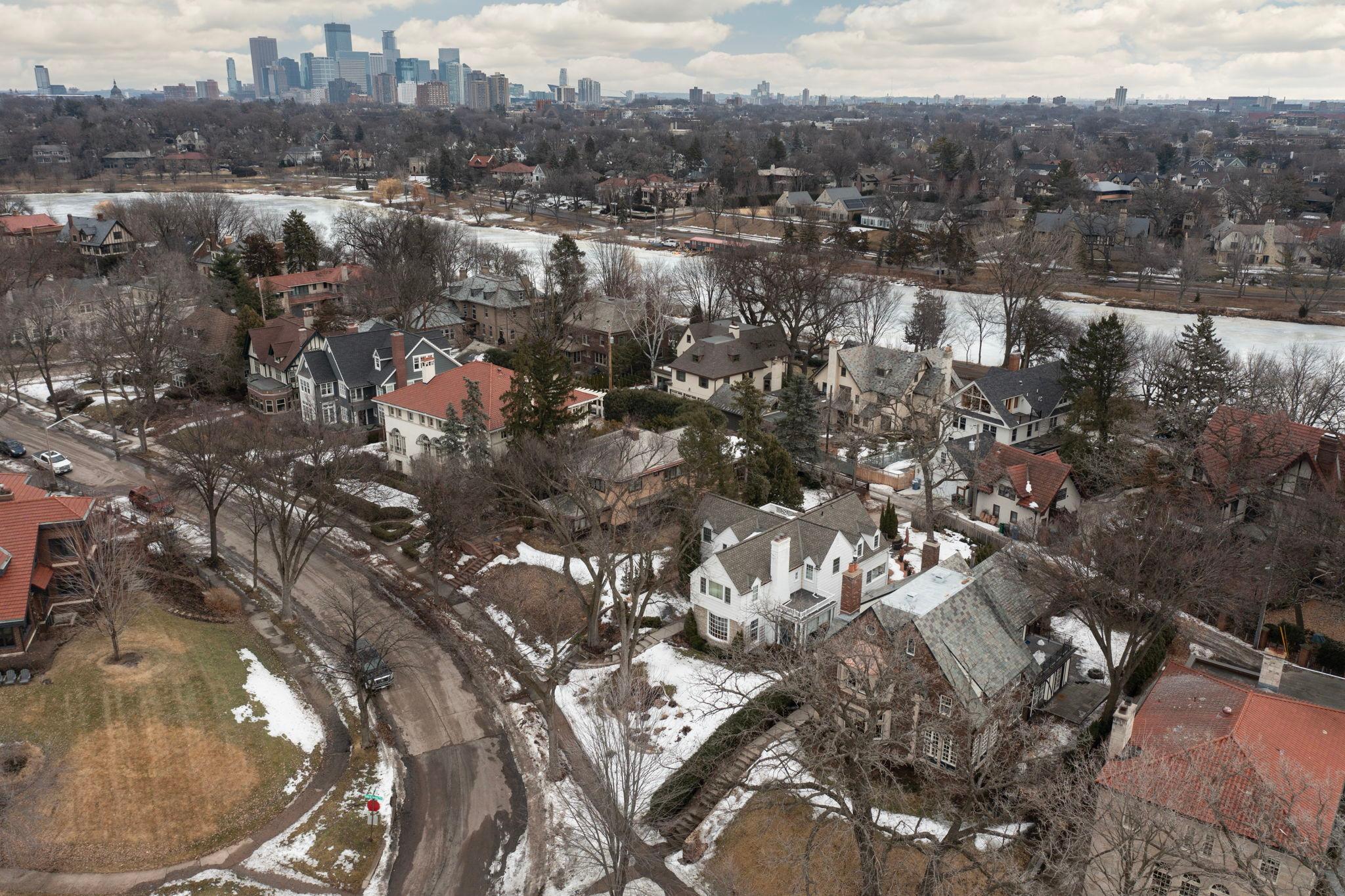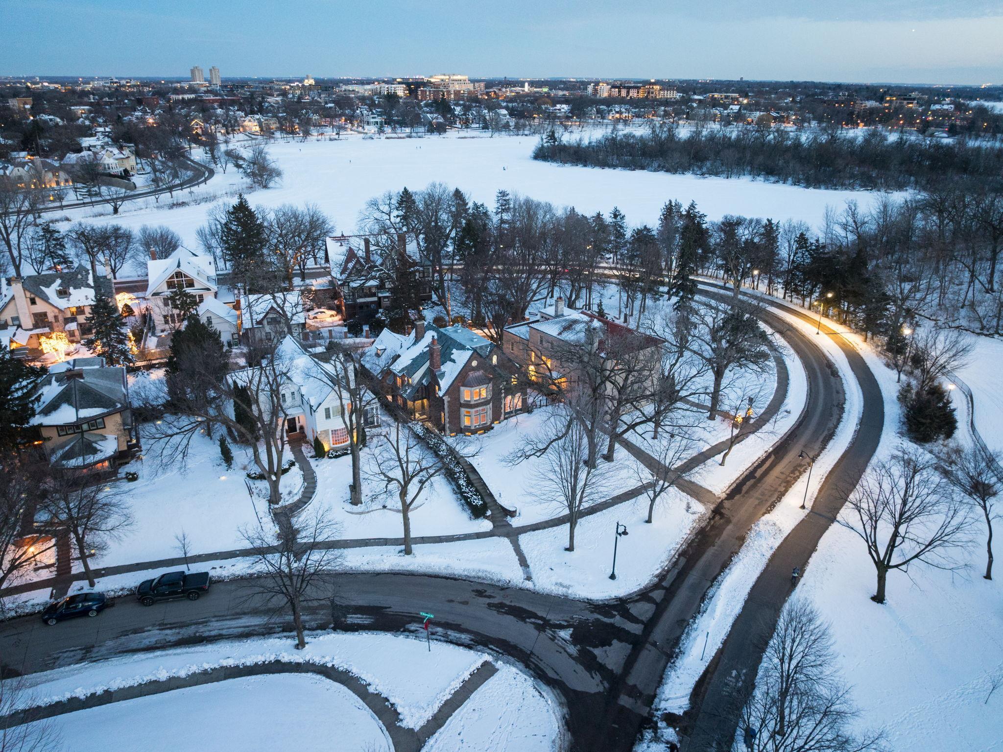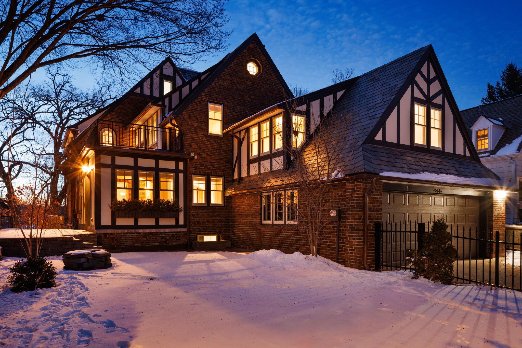 Classic Lake of the Isles Tudor, ideally sited to offer lake views from all six bedrooms. Summer canoeing/kayaking, bicycle paths & Shakespeare in the Park are just steps away, while winter brings ski trails, ice skating & the Luminary Loppet. Handsome hardwood floors, original ceramic-tiled foyer & leaded windows anchor the home, whose main level includes the lake-facing living room with Tudor arched fireplace, sunroom with newer hardwood floors, formal dining room, brick-walled den and architect designed new kitchen with handmade British tile backsplash, enameled cabinetry & top-of-the-line appliances. The main level also includes ½ bath, office & attached garage. All 4 second floor baths have been recently remodeled, 3 with in-floor heat, and California closet systems have been added to the family bedrooms. The freshly carpeted 3rd floor is a wonderful family recreation room. The lower level was extensively remodeled; it features a beautiful family room with gas fireplace, architect designed wet bar with leaded glass display cabinet, sink, microwave & beverage cooler. Adjacent are an exercise room & sauna. With a welcome attached garage and landscaped rear yard with bluestone patios, this is truly an exceptional home.