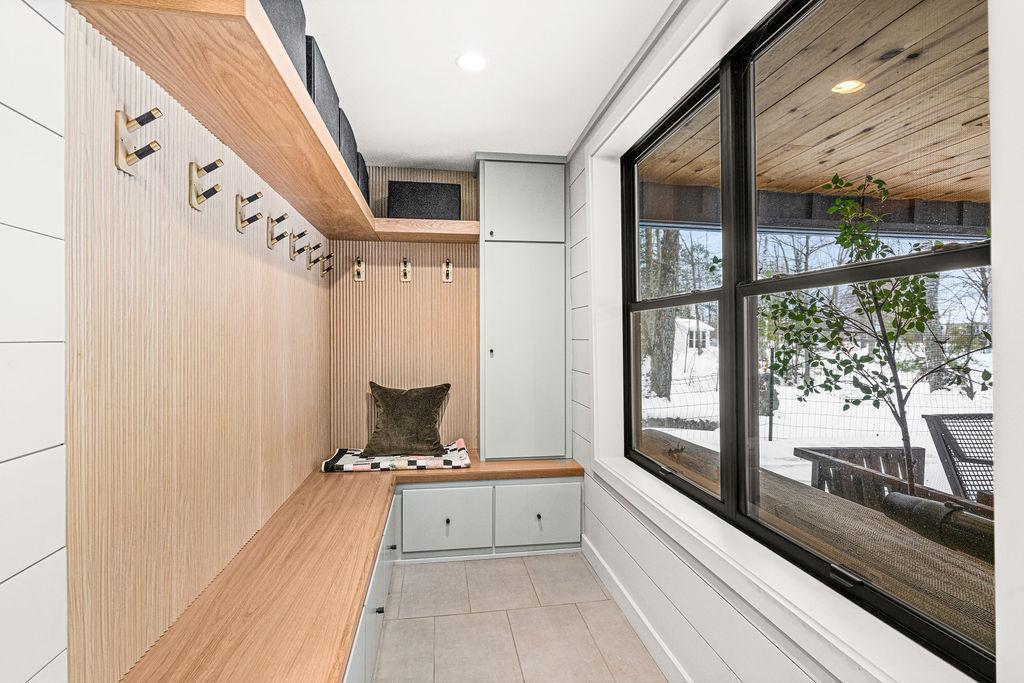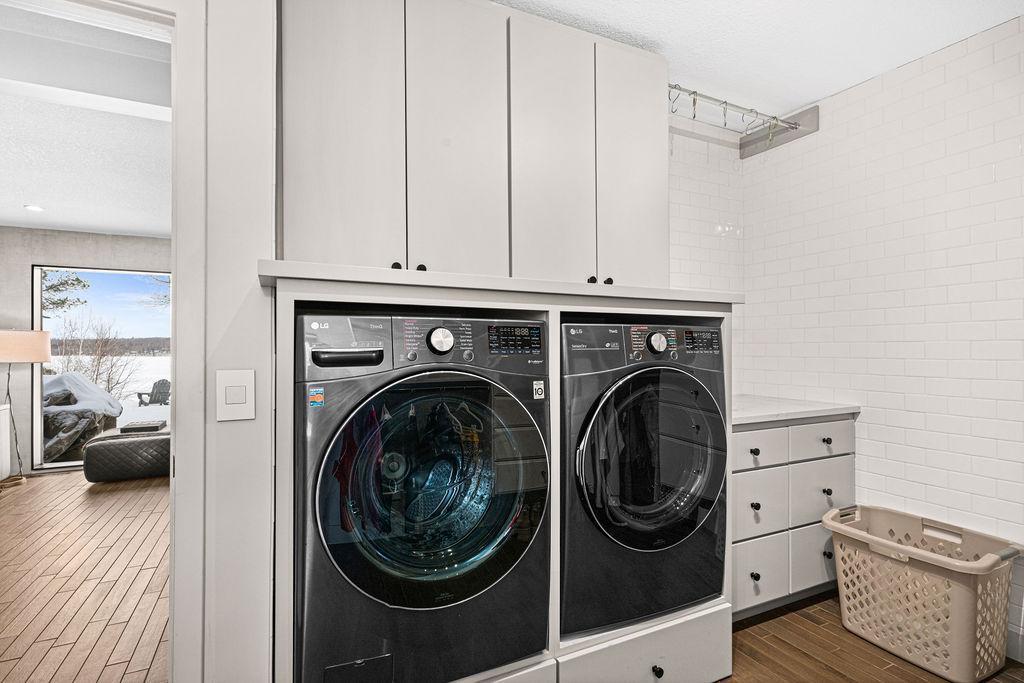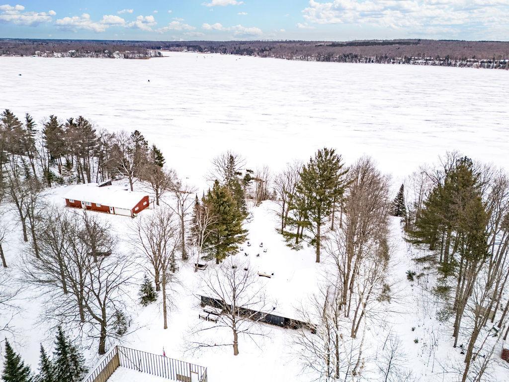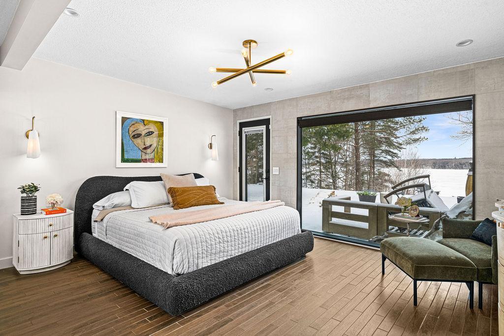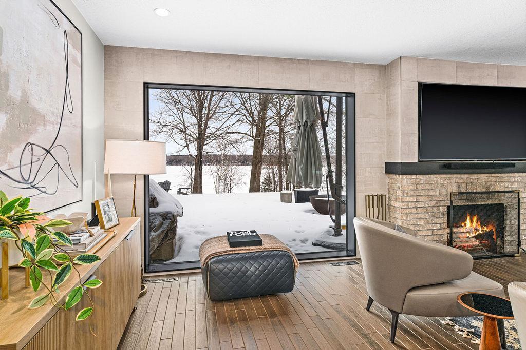 This inviting lakefront home on coveted Pokegama offers a rare opportunity to enjoy year-round lakeside living in Grand Rapids, Minnesota. With approximately 130 feet of private sandy shoreline, crystal-clear water, and breathtaking lake views, this property is a true retreat in every season. The home features 2 bedrooms, 2 bathrooms, and 1,477 finished square feet, thoughtfully designed to blend comfort, style, and functionality. Light-filled living spaces are enhanced by floor-to-ceiling windows that frame stunning water views, while low-maintenance wood-look tile and designer lighting create a refined yet welcoming atmosphere. The well-appointed kitchen is ideal for both everyday living and entertaining, featuring quartz countertops, stainless steel appliances, and ample storage. The spacious primary suite offers a peaceful escape with custom cabinetry, an oversized walk-in shower, a freestanding soaking tub, and a double quartz vanity. A second bedroom and bathroom provide comfort and privacy for guests. A generous entry with built-in storage, a laundry room with new washer and dryer, and an unfinished basement offering excellent storage and future expansion potential. Outdoor living is a highlight of this property. A newly installed, lighted staircase leads to your private beach and dock, while the fire pit creates the perfect setting for lakeside gatherings. Whether enjoying summer days on the water or winter activities in the colder months, this home is designed to celebrate Minnesota’s natural beauty in every season.