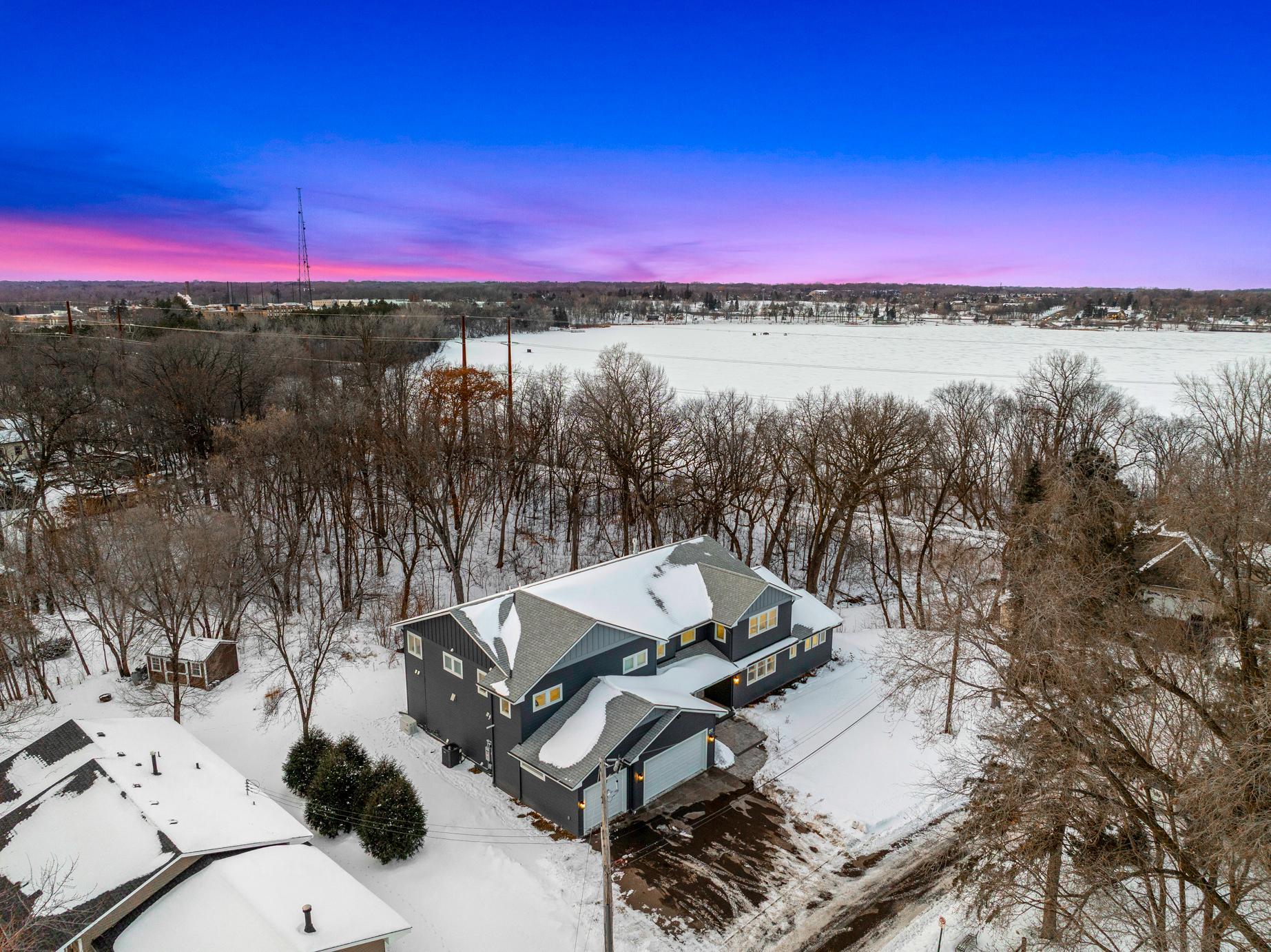 This 2023, at-grade two-story features all living facilities on the main floor, which spans more than 3,200 square feet, and is loaded with high-end finishes and modern features. Set on a quiet, dead-end cul-de-sac, overlooking the walkable Parkers Lake, with instant access to the Luce Line trail system, the property is a 12-minute bike ride and a 6-minute drive, from downtown Wayzata. THE HOME: The home was thoughtfully designed to combine elegance with comfort and functionality for daily life. Step inside and experience a bright, open floorplan with high and vaulted ceilings. Large windows allow natural light to flood the grand common spaces, and a linear gas fireplace warms the living room. The kitchen, open to the dining and living room, is a chef’s dream with a massive walk-in pantry, Thermador appliances, a powerful fanhood, natural stone countertops with precious stones embedded in the island, and generous cupboard space. The luxurious primary bedroom, located on the main floor, features vaulted ceilings and nature views from the windows. The well-appointed primary ensuite bathroom boasts a natural stone-topped vanity with dual sinks, a separate water closet, standalone soaker tub, and a walk-in shower with rain, traditional and handheld showerheads. The second bedroom on the main floor is perfect for guests to stay comfortably with their own private ensuite bathroom. A den on the main floor features a full wet bar with dual beverage coolers and provides a perfect space for entertaining or winding down at the end of the day. The large mud room provides ample storage and plenty of room to take off shoes and coats. The main floor laundry, located in the mud room, features a side-by-side setup with storage, a sink and a countertop for folding clothes. The attached, 3-car garage features a large bank of built-in storage cabinets and 2 Tesla EV chargers which are ready to go. Just outside the garage is a Generac whole home generator which provides peace of mind and reliable electricity during power outages. Upstairs, you will find 4 generously sized bedrooms with walk-in closets, and 3 of the 4 bedrooms feature ensuite bathrooms. The 4th upper-level bedroom is designed as a flex space which could be used as a family or media room. A 3/4 bathroom is located next to the 4th bedroom, and a 2nd laundry set-up is conveniently positioned on the upper-level bridge. THE GROUNDS: The half-acre lot is mostly flat in the front with some flat and usable space in the backyard for play and outdoor activities. Views of Parks Lake, mature trees and a natural hillside that slopes down to small creek provide a serene atmosphere in the backyard. The rear of the home is prepped for a future deck and roughed in for a full outdoor kitchen including electricity, water and gas. THE LOCATION: This property is located on a cul-de-sac in a desirable, quiet and walkable neighborhood. Just a short walk away is Parkers Lake which offers scenic walking and biking trails, a beach, fishing pier, playground, volleyball court, personal watercraft rentals, picnic shelters and so much more. A path from the cul-de-sac connects to the Luce Line State Trail which spans 63 miles. Enjoy the prime location with a 6-minute drive to Wayzata, a 7-minute drive to Ridgedale Center, and less than 20-minute drive to downtown Minneapolis. All but endless dining and shopping options are located just a short walk, bike ride or drive in almost any direction.
