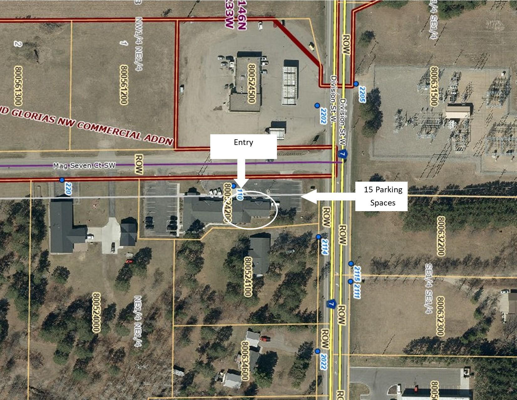Professional office space available between downtown Bemidji and Bemidji High School. Excellent visibility, just off 5th Street/Division Road. Just over 2500sf, this space offers 7 offices, conference room, break room, copy/work room, and a spacious reception area. Two bathrooms shared between this space and the adjacent dental office.