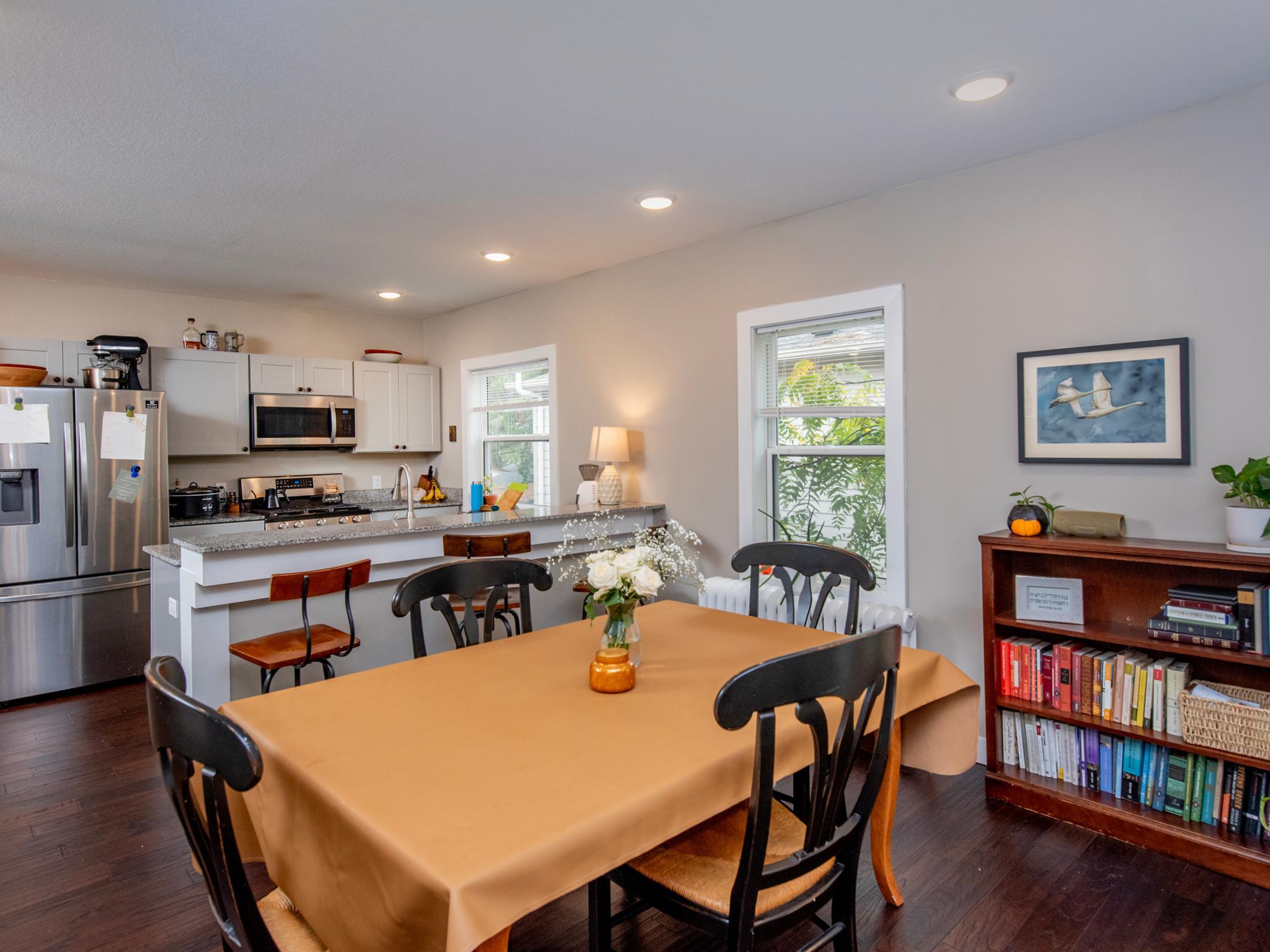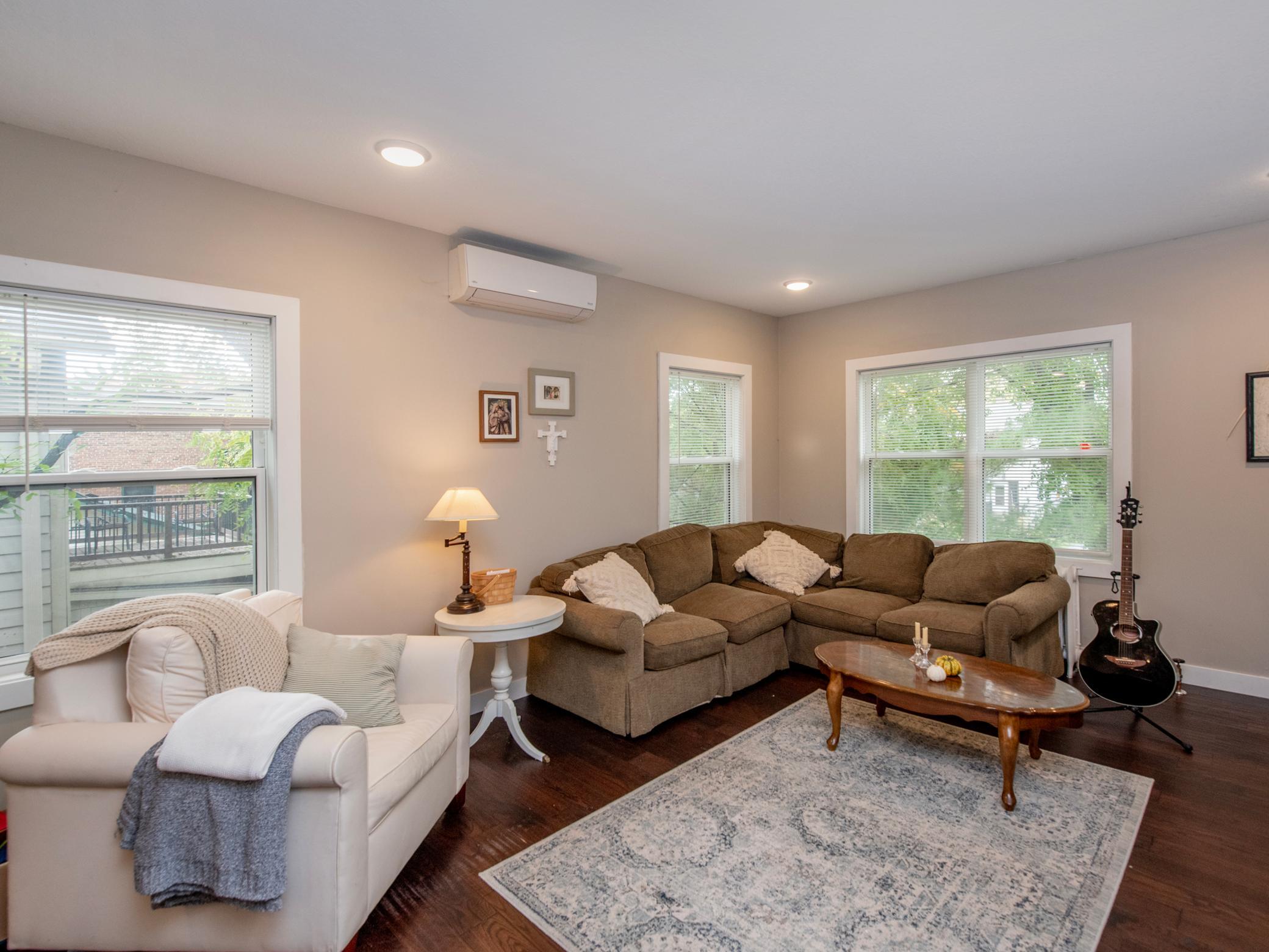 The building offers spacious, well-designed units with modern finishes while maintaining historic charm. Main-level units include expanded layouts with finished lower levels, and upper units feature open living areas with breakfast bars and generous bedrooms. Additional amenities include coin-operated laundry, private storage, and one garage space per unit.