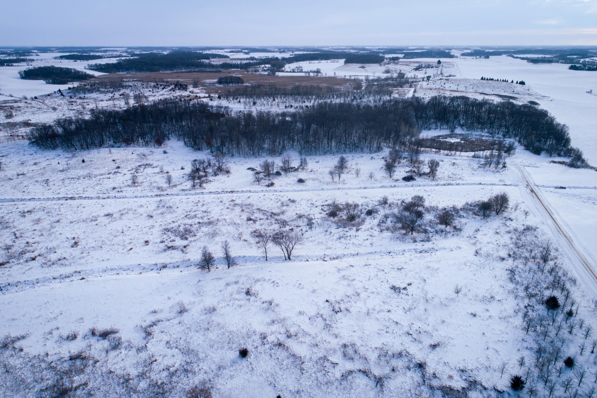 Nestled near Montgomery, Minnesota, this 199-acre recreational property offers rare privacy and prime hunting at the end of a dead-end road (141st Lane) providing ideal spots for a cabin or home, plus bedding cover for whitetail deer and roosting for wild turkeys and other game. A graveled road climbs through a mature forest to an elevated building site. From here, panoramic views overlook 50+ acres of wetlands, bordered by prairie grass ridges, plum thickets, and oak savanna. Nearby high ground features young oaks, plums, and native grasses, sustaining strong game populations. Northern open fields with light tree cover excel for pheasant flushing in fall/winter and offer deer thermal bedding in cold weather. About 137 acres fall under a permanent Minnesota RIM easement, protecting wetlands, grasslands, and habitat forever while permitting mowing and food plots to improve hunting. The unrestricted ~62 acres allow full flexibility for building a home, cabin or outbuildings. Trails ease foot or ATV travel, and five wooden tower blinds stand ready. Multiple building sites suit your retreat vision. Diverse terrain—hardwoods, regenerating oaks, wetlands, northern fields—supports year-round deer, reliable turkey roosting/feeding, thriving pheasants, and other wildlife. Just 3 miles southeast of Montgomery for amenities and 40 miles south of Minneapolis, it's perfect for weekends, hunting camping. This isn't just land it's a private wildlife haven ready for hunting, building, or nature immersion.