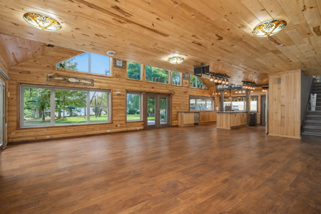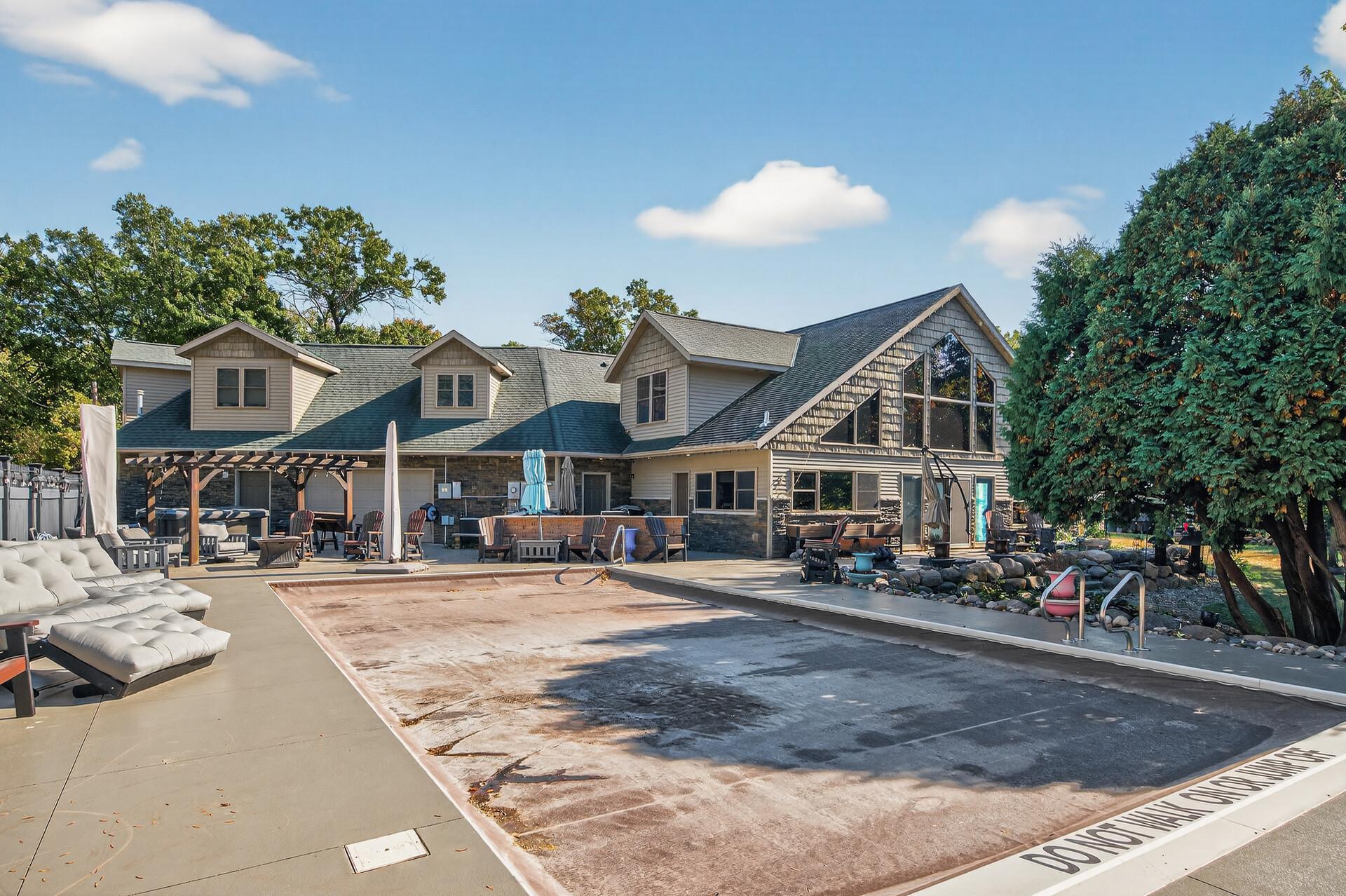 You need to see this property to believe it and the Seller is motivated! The perfect multi-generational home opportunity. This is the dream home you’ve been searching for—luxurious, spacious, and perfectly designed for lake life. From the moment you step into the inviting foyer, you’ll feel the warmth and elegance this home offers. The main floor features a gourmet kitchen with large windows overlooking the sparkling 20x40 in-ground pool, relaxing hot tub, pool house, and 240 feet of pristine lakeshore with a private dock. The main floor master suite includes a walk-through closet, laundry, and a spa-like bathroom complete with a beautiful clawfoot soaking tub—your personal retreat after a long day. A second bedroom and a full bathroom on the main floor, plus 4 separate laundry areas throughout the home for ultimate convenience. The home is built on slab with in-floor heat and features two fireplaces for comfort year-round. You’ll love the abundance of space with 10 oversized garage stalls and a shop -plenty of room for your toys! The property includes an income-producing studio apartment with garage stall, perfect as a rental or a private mother-in-law suite. Love entertaining and hosting big holiday gatherings, or simply enjoying peaceful days by the lake, this home was built for you. This property showcases upgrades and quality craftsmanship. You truly must tour this one!