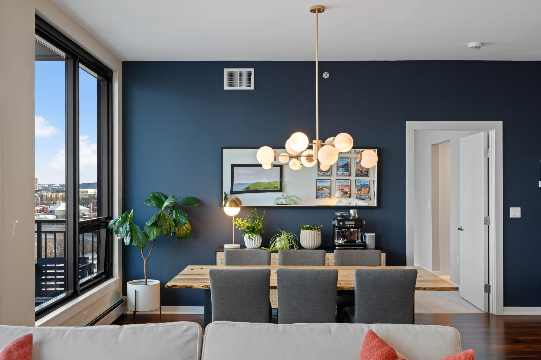 Enjoy this Legacy Lofts 2BR executive rental with modern style and amazing convenience in the heart of the Mill District. Available Fully Furnished for an additional $300 per month. You’ll love the massive main space with dark hardwood flooring, elegant finishes, and amazing views of the riverfront. Gourmet kitchen features stone countertops, tiled backsplash, gas oven, and under-cabinet lighting. Owner’s suite provides a walkthrough closet with custom organizers, dual vanity, and plenty of space to spread out. 2nd Bedroom can be set up as a den / home office. Laundry room has full-size washer & dryer with custom built-in storage. All utilities (even basic cable & internet), and 1 indoor heated parking stall are included with rent. Legacy Lofts provides resort-level amenities & services: 24/7 front desk staff, weight room, separate cardio center with studio and sauna, community room with catering kitchen, community deck with lawn bowling and fire pits, separate outdoor pool and jacuzzi, resident business center, game room with golf simulator, indoor / heated guest parking, and a playground. Application fee: $78 per adult occupant, Admin Fee: $150, HOA Moving fee: $700, HOA occupancy fee: $175; Security Deposit is One Month's rent.