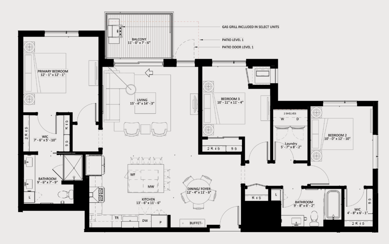 Welcome to The Winn! This 3-bedroom, 2-bath residence features the Natchez floorplan with an exclusive corner location and an expansive layout. A few highlights include a gourmet kitchen with designer hood and island, a walk-in laundry room with folding counter, and bathrooms finished with backlit mirrors and tile flooring. Select homes offer a private balcony with gas grill and a modern gas fireplace.