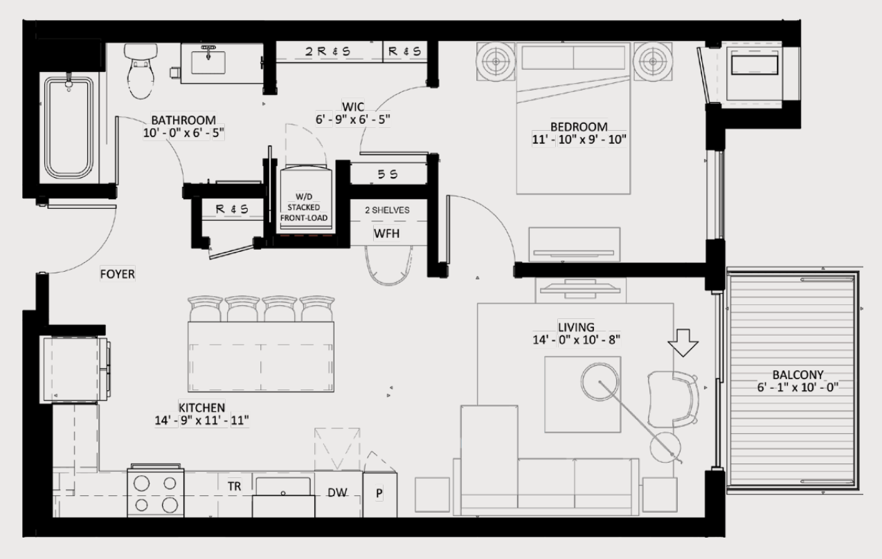 Welcome to The Winn! This well-appointed 1-bedroom residence features the Wirth floorplan, offering a smart and efficient layout ideal for modern living. Highlights include a WFH tech center with smart outlets, a chef-inspired kitchen with island, and a thoughtfully designed walk-thru closet. The bathroom features a modern matte tiled shower/tub combo, and privacy blackout roller shades are included for comfort and light control.