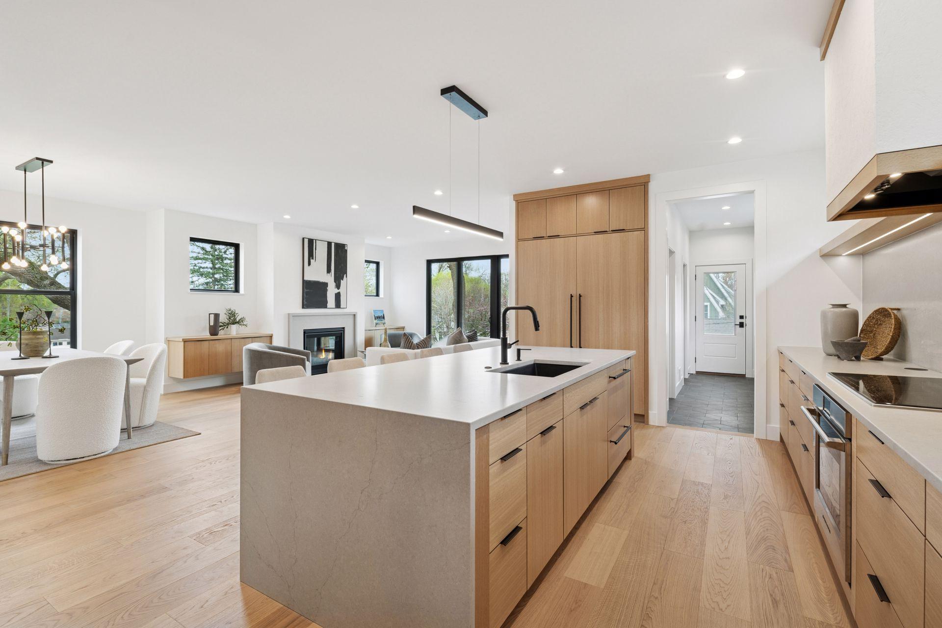 Don’t miss your opportunity to own a luxurious home with a striking modern design. This home offers an open-concept main level featuring gourmet kitchen, an impressive 11-foot center island, professional style appliances, and a walk-in pantry with prep sink. The spacious family room and informal dining provide seamless flow for everyday living and entertaining. A dedicated study / office, mudroom and powder room complete the main level. Upstairs, the luxurious primary suite showcases spa-inspired finishes, soaring vaulted ceilings, and a private balcony for peaceful outdoor retreat. The upper level also includes a junior suite and two additional bedrooms connected by a Jack-and-Jill bath; each featuring walk-in closets and access to a balcony or deck. A spacious laundry room with double washer and dryer enhances everyday convenience for busy households. The lower level is designed for both entertaining and relaxation, featuring a spacious family room with ample space for a pool table, a well-appointed wet bar, an exercise room, and a fifth guest bedroom with an adjacent bathroom. An optional sauna offers an additional opportunity to enhance this level’s comfort and luxury. Located within the award-winning Minnetonka School District with easy access to the vibrant shopping, dining, and entertainment of downtowns Excelsior and Chanhassen, and a short walk to Lotus Lake Lakeside park with the swimming beach.