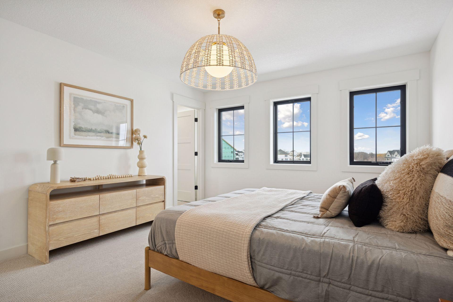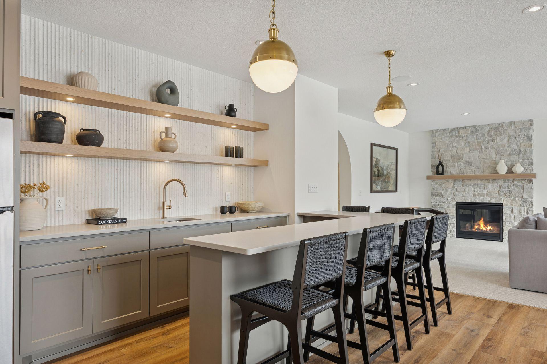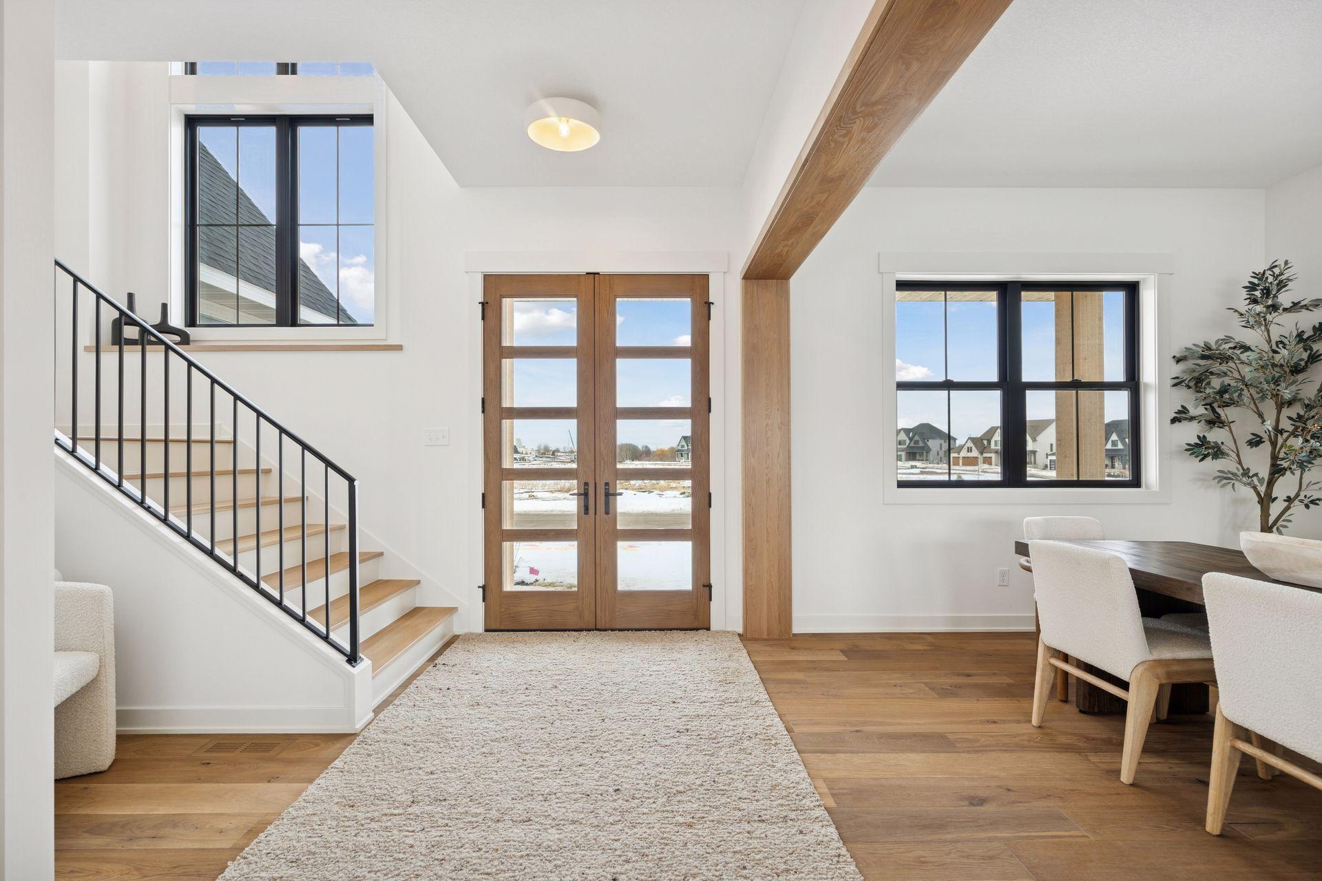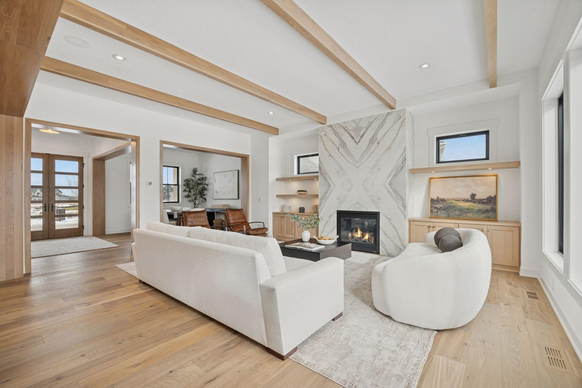Stonegate Builders proudly presents the Fremont. This home boasts over 5,000 square feet of exceptional design, perfect for family living. Earthy design elements enhances the open concept main level, featuring a dining room, a gourmet kitchen with an oversized island and prep kitchen, a sunroom, and a great room with a fireplace. The mudroom, powder bath, and pocket office are conveniently located off the prep kitchen. The upper level includes a luxurious owner’s suite with a soaking tub, tile shower, and walk-in closet with laundry access. Bedrooms 2 and 3 share a Jack & Jill bath, while the 4th bedroom with an ensuite bath is ideal for guests. A spacious loft completes the upper level. The lower level is designed for entertainment, with a rec room with a fireplace, game room, wet bar with seating, golf simulator room, exercise room, guest bedroom, and 5th bath. This model home is complete and open Thurs-Sun from Noon-5pm (except during Holidays).