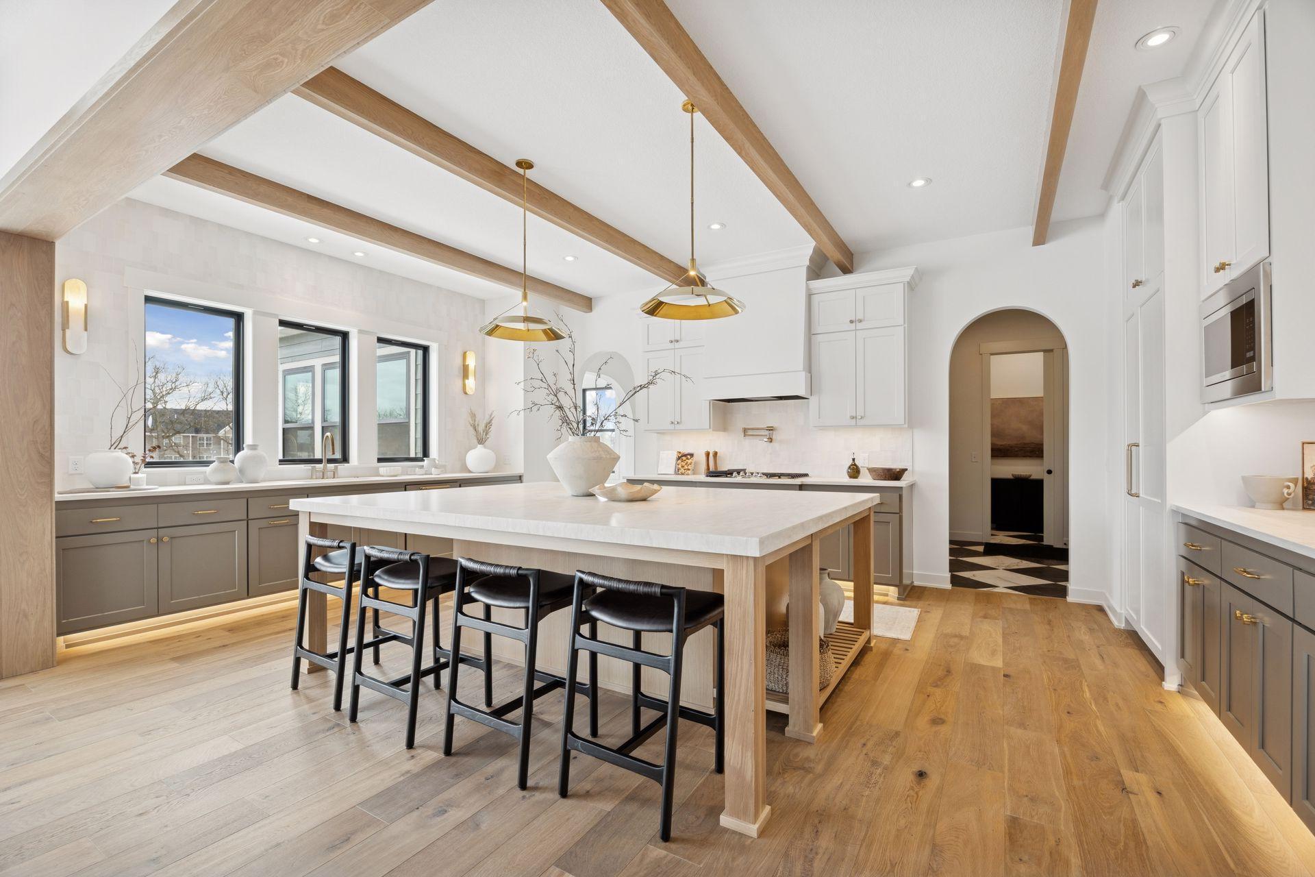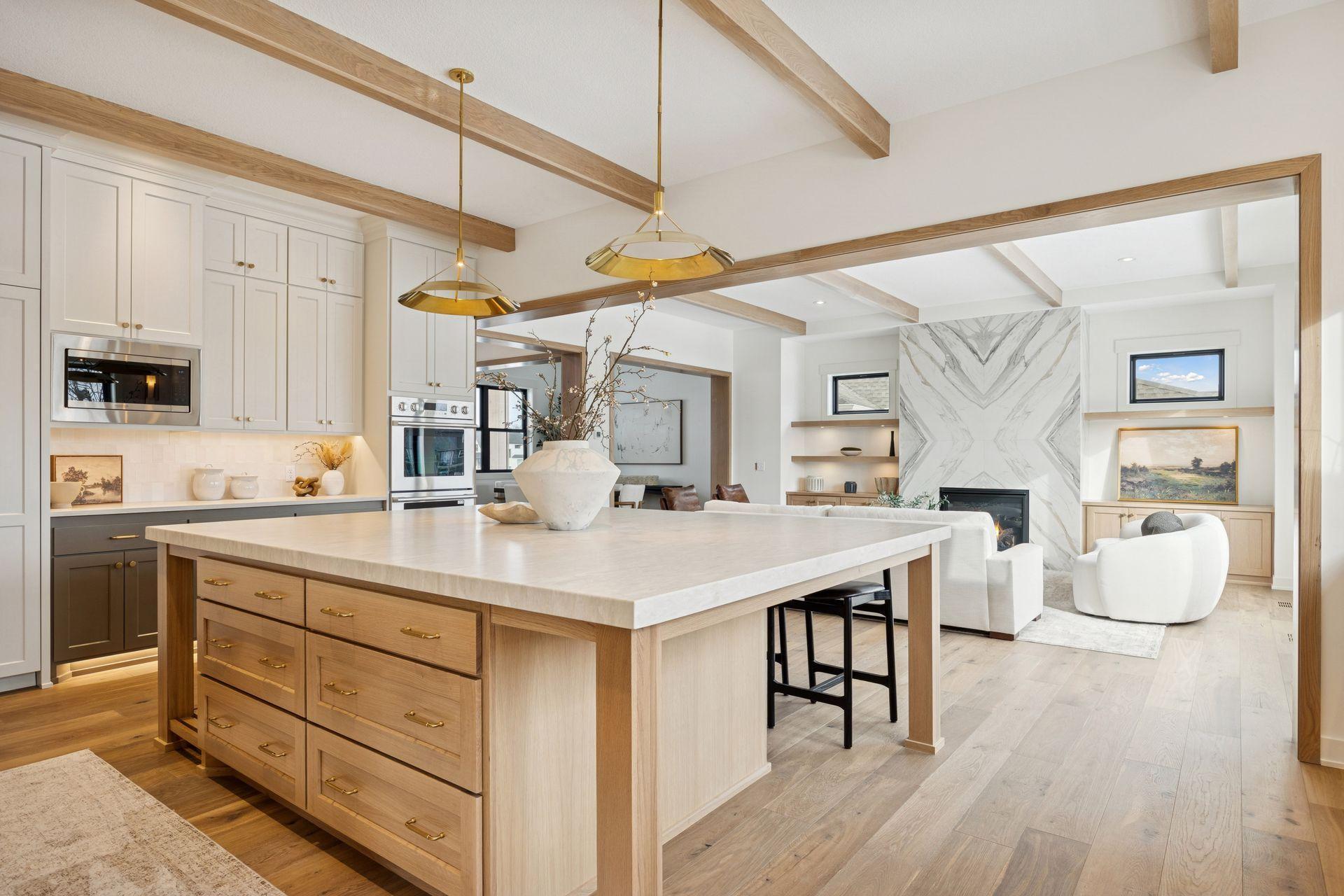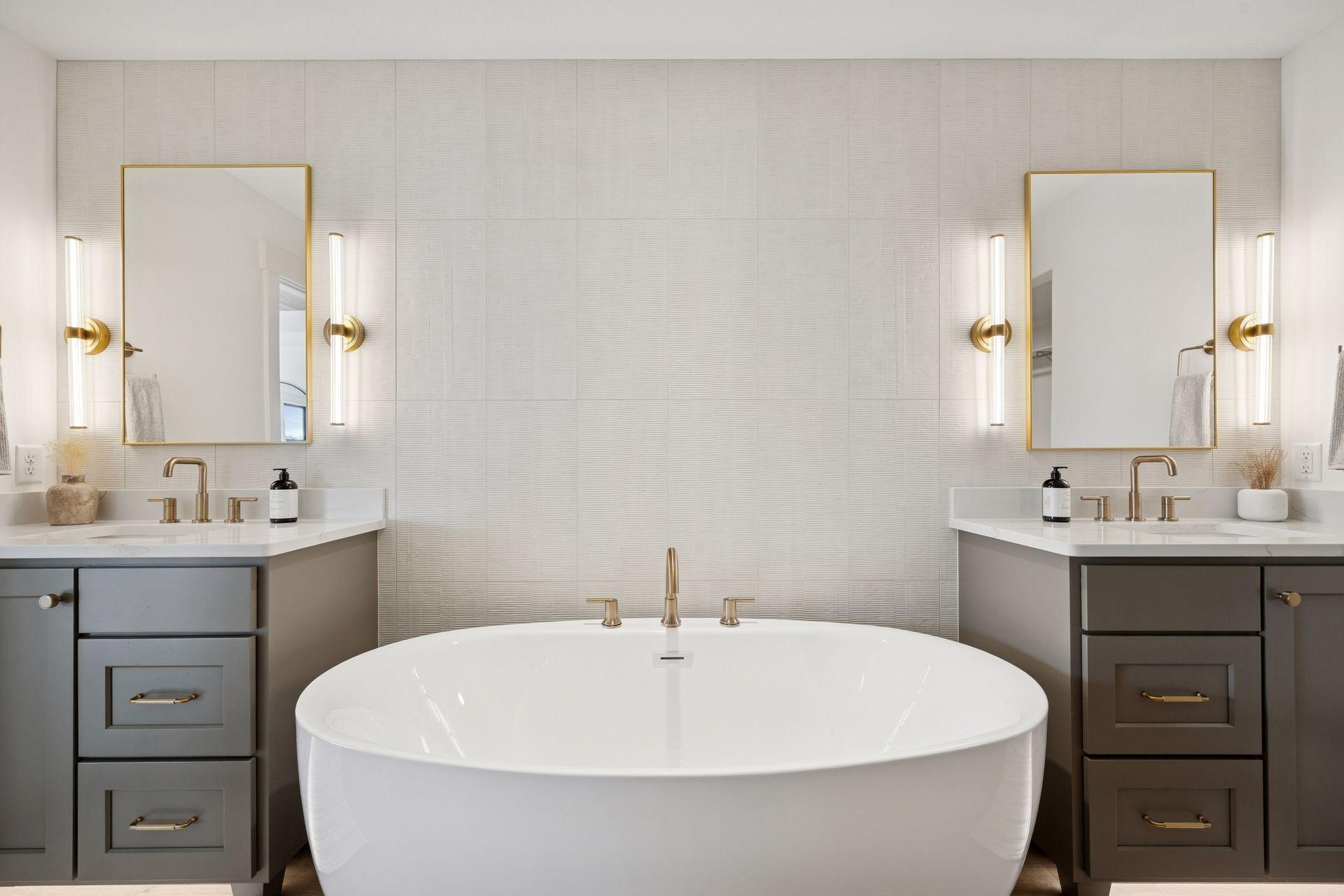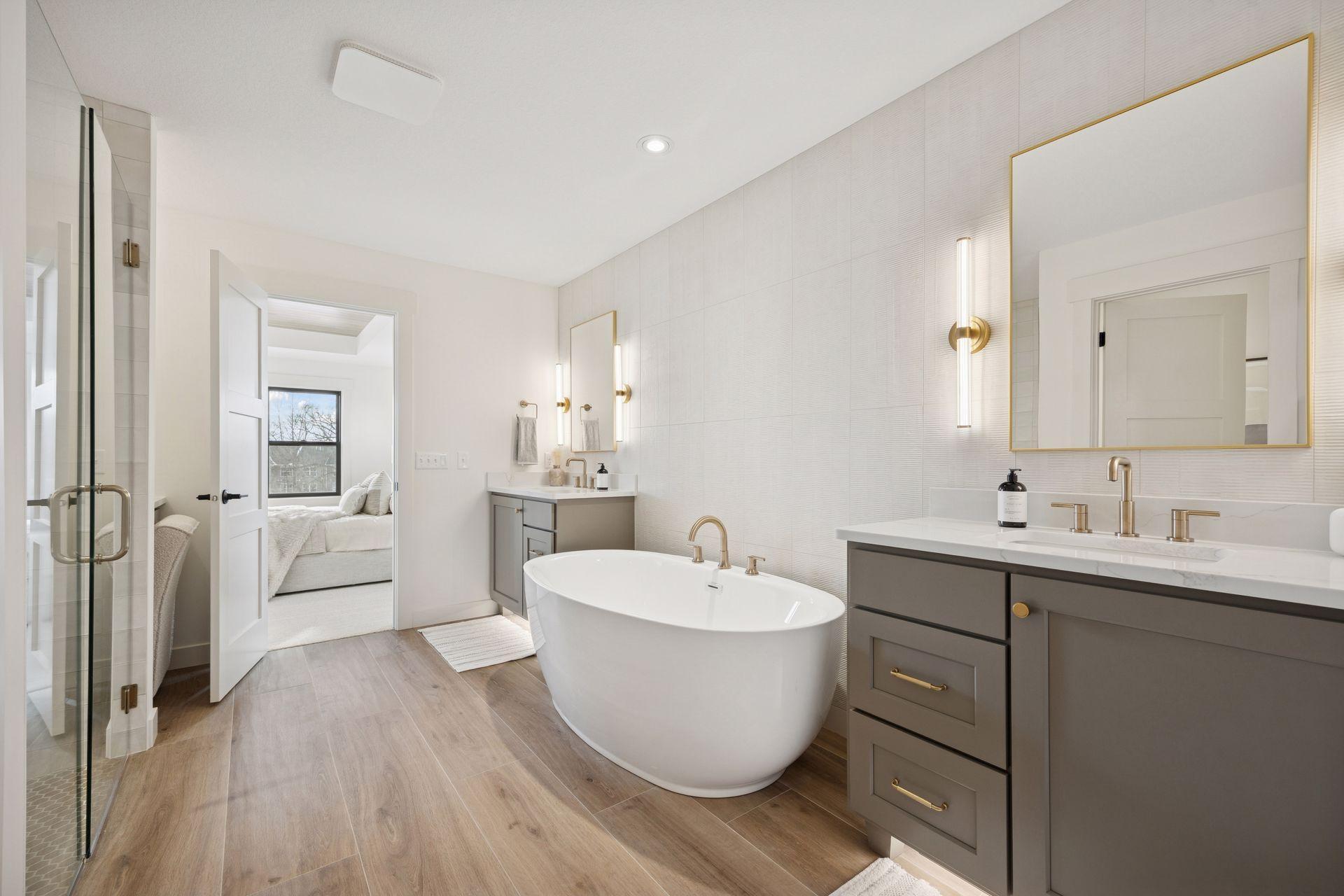 Stonegate Builders proudly presents the Fremont. This home boasts over 5,000 square feet of exceptional design, perfect for family living. Earthy design elements enhances the open concept main level, featuring a dining room, a gourmet kitchen with an oversized island and prep kitchen, a sunroom, and a great room with a fireplace. The mudroom, powder bath, and pocket office are conveniently located off the prep kitchen. The upper level includes a luxurious owner’s suite with a soaking tub, tile shower, and walk-in closet with laundry access. Bedrooms 2 and 3 share a Jack & Jill bath, while the 4th bedroom with an ensuite bath is ideal for guests. A spacious loft completes the upper level. The lower level is designed for entertainment, with a rec room with a fireplace, game room, wet bar with seating, golf simulator room, exercise room, guest bedroom, and 5th bath. This model home is complete and open Thurs-Sun from Noon-5pm (except during Holidays).