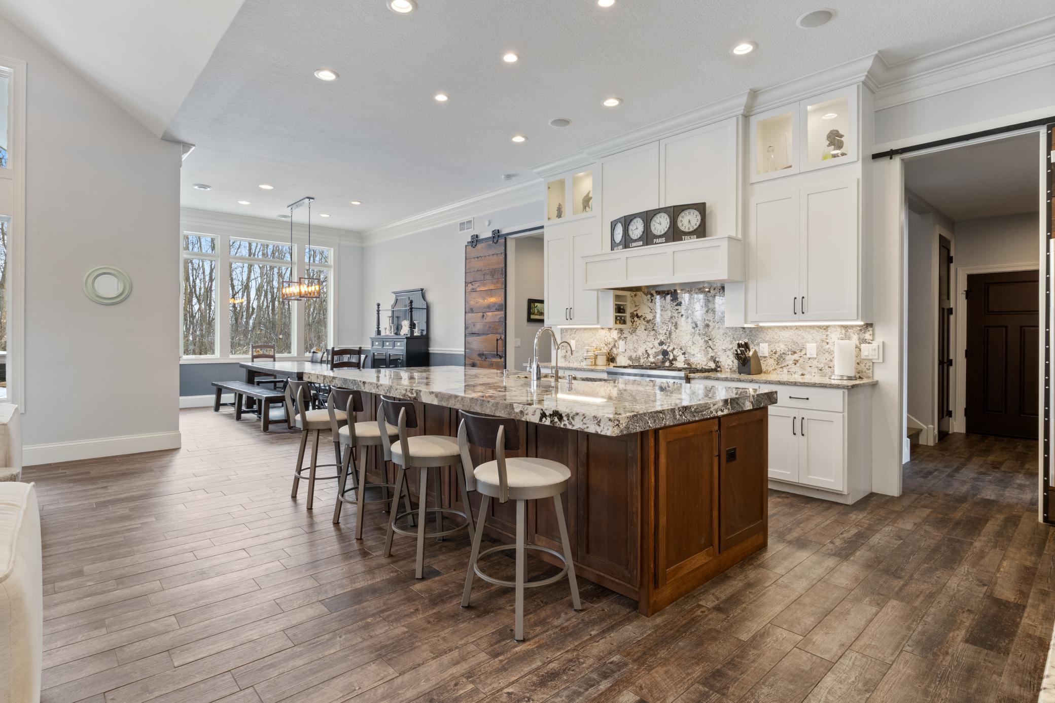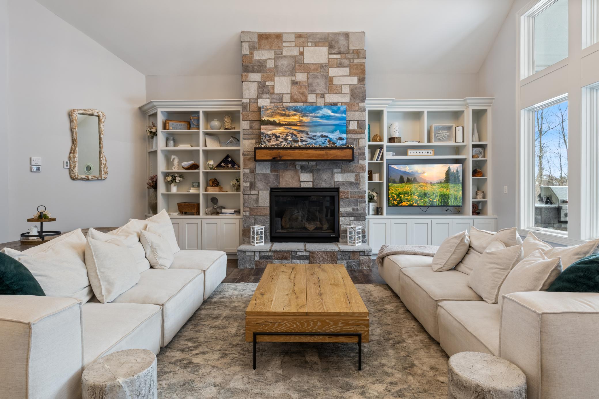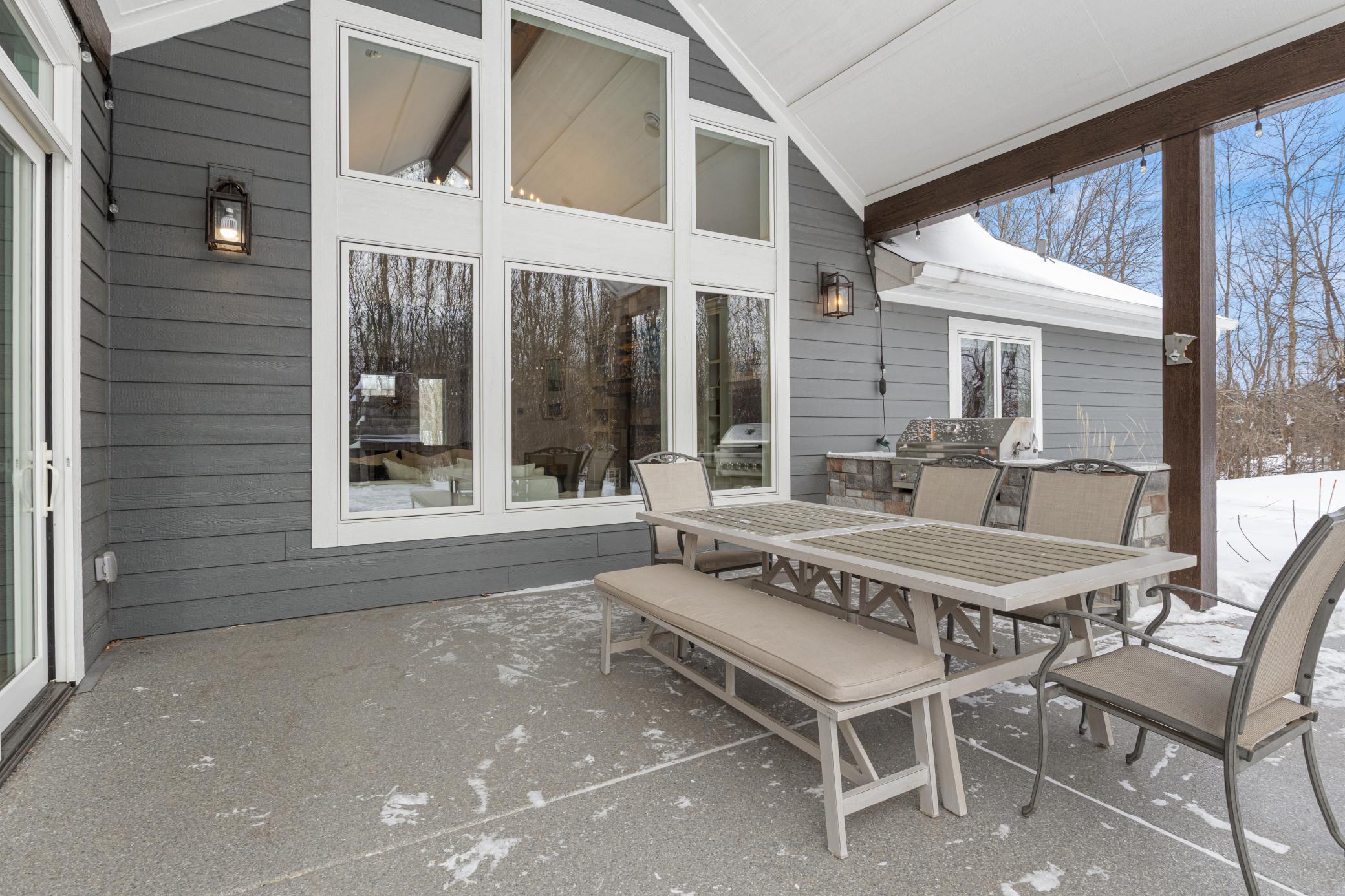 Luxury, privacy, and comfort converge in this exceptional home located in the highly sought-after Orono School District. Designed for effortless main-level living, the open floor plan features soaring 11-foot-ceilings, in-floor heat throughout the entire main level, and expansive windows that fill the home with natural light. The fully customized kitchen is an entertainer’s dream with a stunning single-piece granite center island, dual ovens, built-in coffee machine, and high-end finishes throughout. The main level offers four spacious bedrooms, including a private owner’s suite highlighted by a spa-inspired walk-in shower with multiple shower heads, towel warmers, and premium finishes. Spray-foam insulation in walls and ceilings, along with Marvin windows, provided exceptional efficiency and comfort year-round. The home features all hard-surface flooring, including tile and hardwood, for a clean and timeless aesthetic. Enjoy luxury amenities rarely found at this level, including a private home theater and a five-person steam room. Set on a secluded 4.83-acre lot, the beautifully designed outdoor living space featuring a covered porch, outdoor fireplace, and built-in grill with matching countertops, seamless transition perfect for outdoor entertaining or relaxing in complete privacy. The heated 8-car garage features an oversized door, offers exceptional space and flexibility for large vehicles, storage, or hobby use. A newly paved asphalt driveway completes this impressive property. Countless upgrades and thoughtful details throughout make this home truly one of a kind.