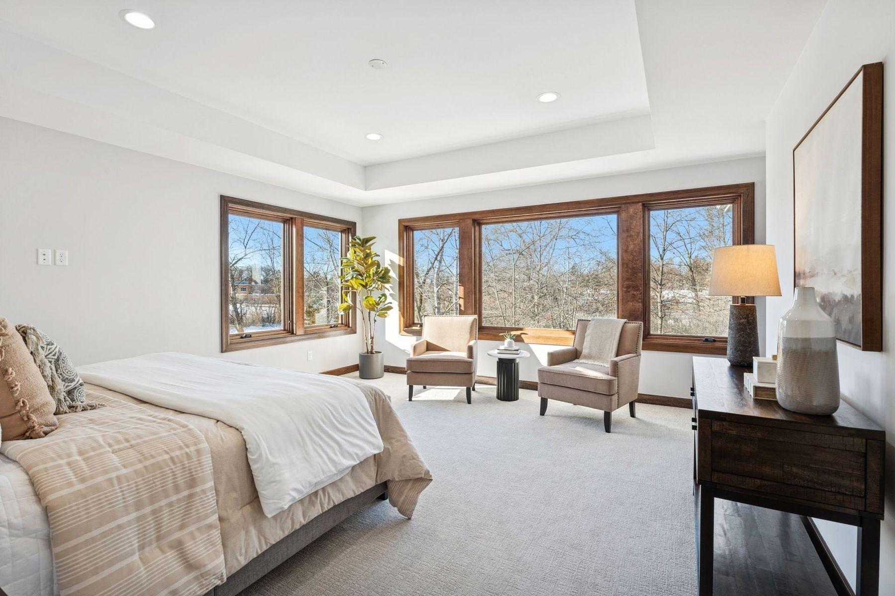 Set on a tranquil waterfront setting, this exceptional Minnetonka home pairs elevated design with everyday ease—highlighted by a sunroom overlooking Clear Springs Pond and multiple outdoor living spaces. The chef’s kitchen is a showpiece with smart appliances, two double ovens, a butler pantry, and an oversized walk-in pantry, flowing into entertaining and gathering spaces. Enjoy a highly sought-after layout with two primary suites, including a main-level suite with spa-inspired bath featuring heated tile floors and a free-standing soaking tub. The lower level is designed for fun and flexibility with a large entertaining room with appliances and wet bar, a media room or golf simulator room, plus an exercise room. Thoughtful extras include walk-in closets in every bedroom, a built-in dressing vanity in the upper-level primary dressing room, and a charming secret children’s playroom. The garage is equally impressive—heated and insulated 3–4 car, EV-ready, with a car washing station, air compressor, and TV hookup, supported by a 200+ amp panel. Something for everyone! All in an ideal close to shopping, dining and schools.