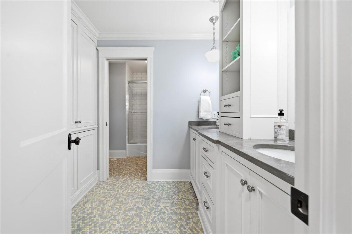 The open main level is ideal for entertaining, anchored by a beautifully appointed kitchen and seamless gathering spaces, all enhanced by serene park views. A remarkable bonus is the vaulted great room addition with bar, stone fireplace and heated floor. Spacious upper-level bedrooms and a versatile lower level provide flexibility for modern living, hosting, or retreat.