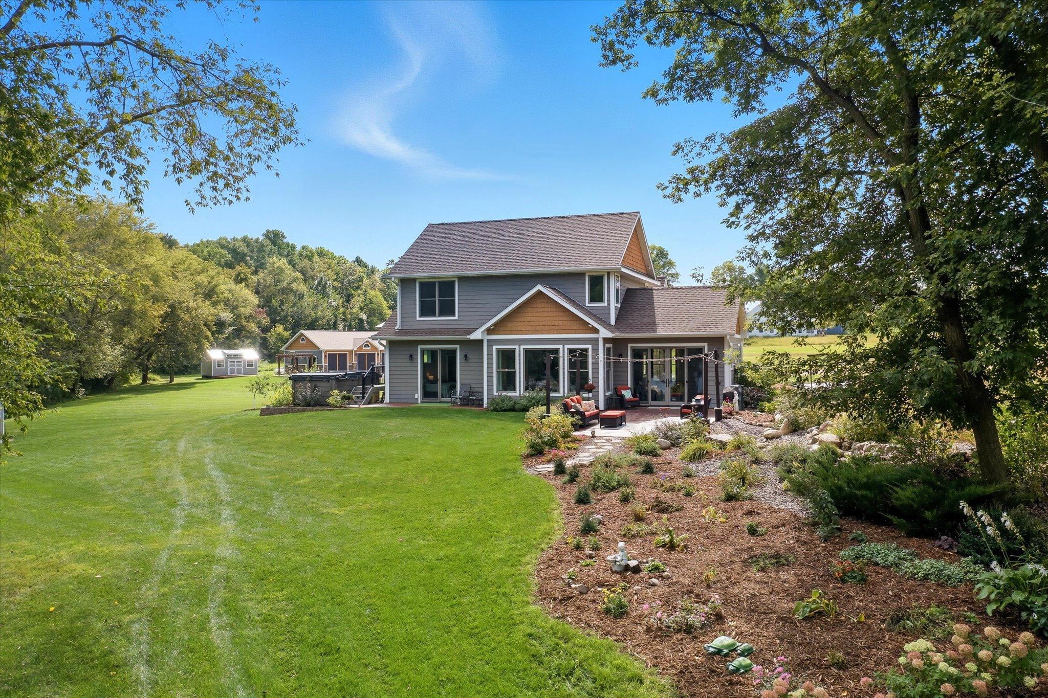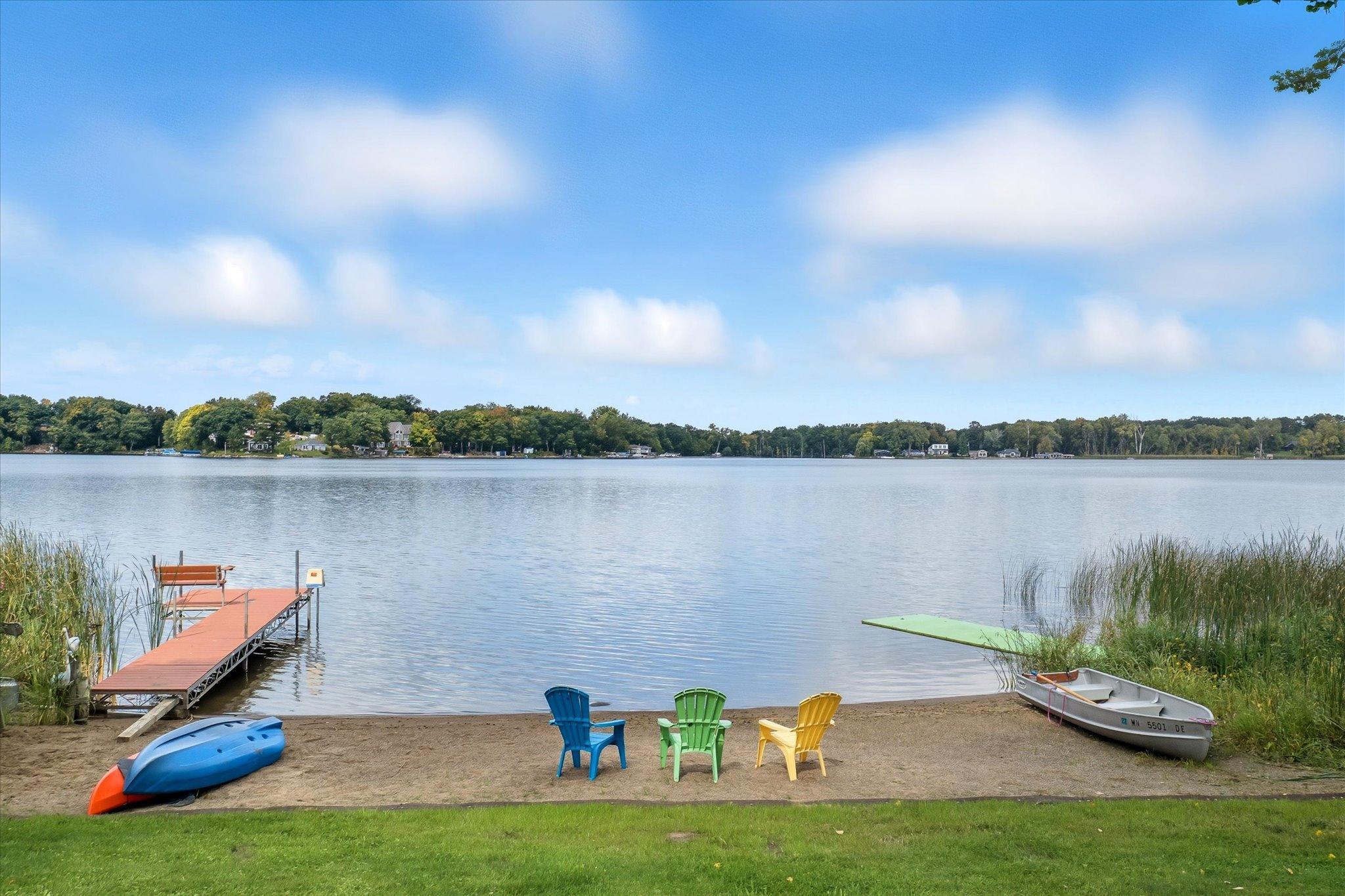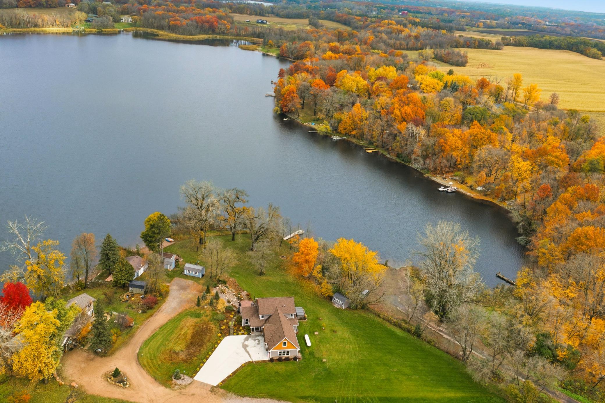 Welcome to this extraordinary custom-built lake home on the shores of Indian Lake, offering 419 feet of pristine lakeshore and nearly two acres of privacy! Designed and built in 2022 by CAP Custom Homes, this beautiful home and property combines timeless craftsmanship with modern luxury. Inside, the main level is thoughtfully designed for comfort and elegance, featuring cathedral vaulted ceilings, large Marvin® windows framing sweeping lake views, and a striking gas fireplace with an 1890s reclaimed mantle. The open-concept layout includes a spacious dining area, a gourmet kitchen with Schlangen’s Custom black walnut and painted cabinetry, quartz countertops, a granite island, and professional-grade appliances including an eight-burner cooktop and Italian ILVE oven. A walk-in pantry, mudroom with lockers, and main-floor laundry with Samsung washer/dryer add convenience and functionality to the main level. The primary suite is a true retreat with lakeside views, direct patio access, and a luxury bathroom with a steam shower, double sinks, champagne gold fixtures, and a secure walk-in closet designed as a storm shelter with 9-inch concrete walls and a steel door. Step outside to the patio and enjoy the 11-person swim spa, new in 2024! Upstairs, you’ll find a cozy loft family room, two additional bedrooms, a full bath with jetted tub, and a spacious multi-purpose playroom with dual heat/air. Throughout the home, you’ll appreciate the warm LVP flooring, arched Tuscan-inspired accents, and soft-close cabinetry. This home is as functional as it is beautiful, offering in-floor heat on the main level, a whole-house water filtration system, a 22KW whole-home generator installed in 2023, and a 1,000-gallon propane tank (rented). The exterior showcases LP® SmartSide® siding and shakes, a concrete driveway, and an oversized heated/insulated three-stall garage with in-floor heat, a floor drain, and mini-split air conditioning. The outdoor setting is unmatched with professionally designed landscaping, gardens, fruit trees, pines, tranquil waterfalls, and more! The sandy beach leads to a seasonal cabin complete with a bathroom, shower, and sink, while a storage shed provides extra space for lake toys and equipment. Adding to its appeal, this home is conveniently located about 50 miles from the Twin Cities metro area. Maple Lake is only 10 minutes away and Buffalo approximately 20 minutes away, providing easy access to parks, retail, schools, and more! This Indian Lake retreat is truly one-of-a-kind as a nearly new executive lake home with timeless design, unmatched craftsmanship, and every detail carefully considered. One-year home warranty is included for added peace-of-mind!
