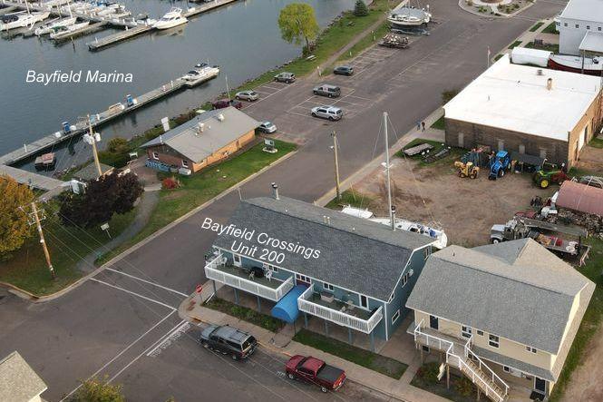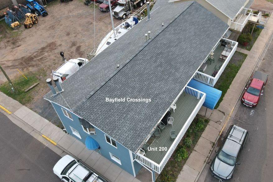 Bayfield Crossings East facing second floor 2 bedroom 2 bath furnished condominium located in the heart of Bayfield...Lofted ceilings...hardwood floors...across the street from Bayfield Harbor...great views of Lake Superior...walking distance to restaurants and shops...washer and dryer in unit.