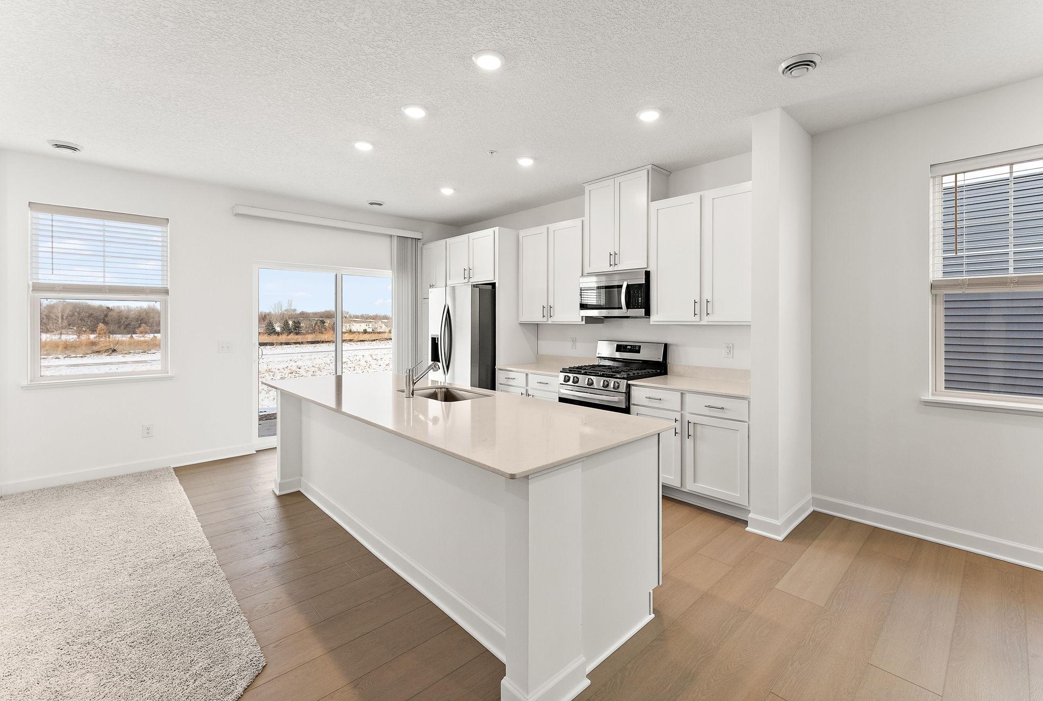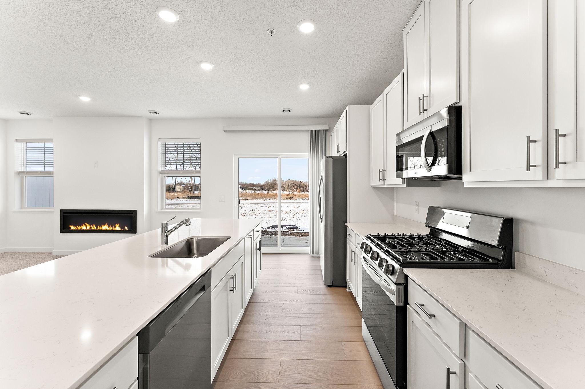 Spectacular NEW CONSTRUCTION END UNIT offering you that clean, crisp and open feeling immediately upon walking in. Unit offers 3 beds all on the upper level with 2.5 baths. Sleek kitchen with center island, white cabinets, quartz tops and SS appliances w/gas range. Electric fireplace will be perfect for these cozy cooler days. Backyard patio with greenspace. 2nd floor laundry. Spacious primary bed w/ensuite 3/4 bath w/dual vanities and walk-in closet. Full hall bath in upper level and 1/2 bath on main floor. Home equipped with Ring doorbell. Ideal location near area amenities, hospital and easy freeway access. Sorry no pets allowed. Available immediately with 9 or 12 month lease terms (leases less than 1 yr are subject to a one time short term lease fee of $125). App fee: $45/adult non refundable. Tenant pays water/sewer, gas and electric. Renters insurance required. Section 8 not approved. Info deemed reliable but not guaranteed.